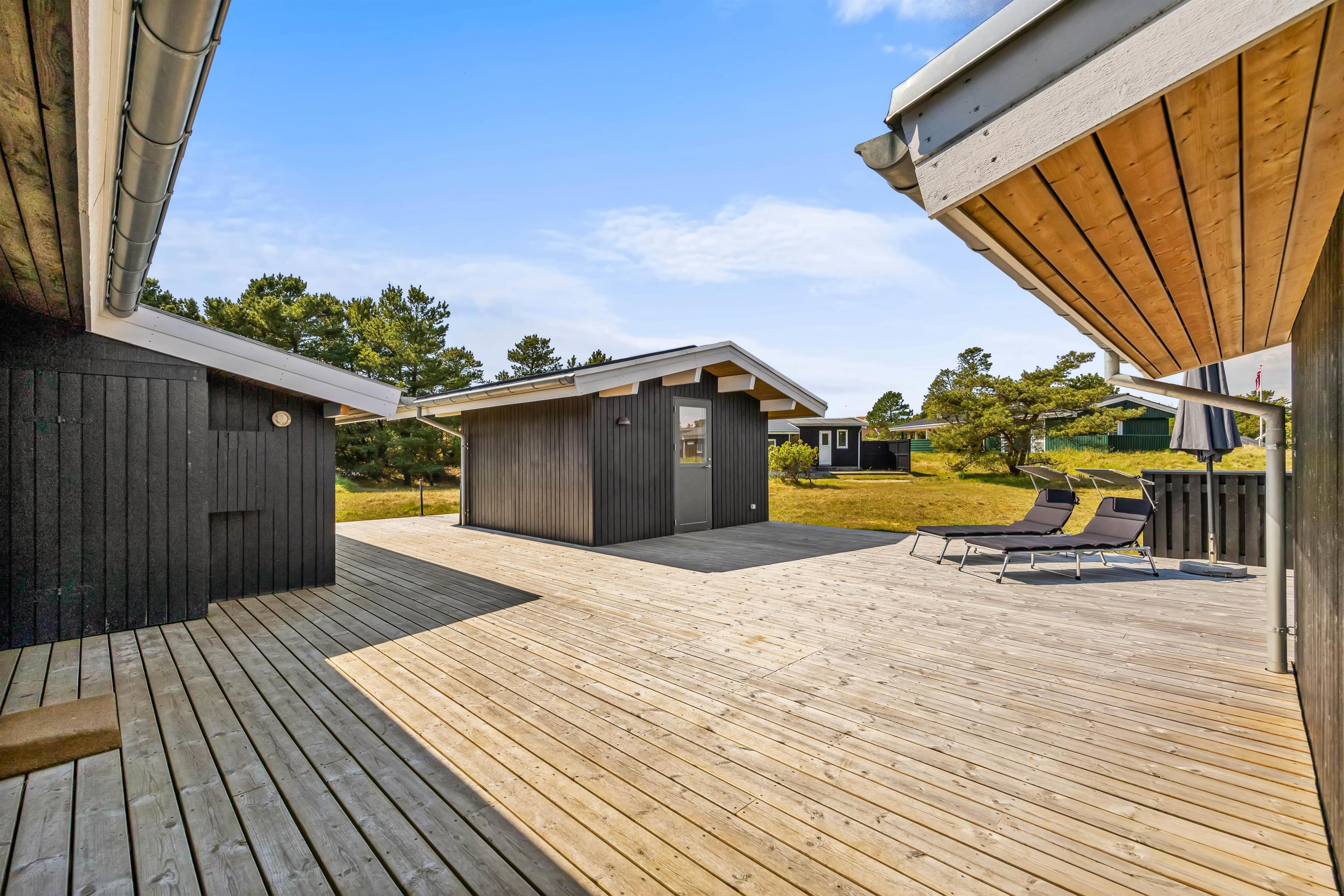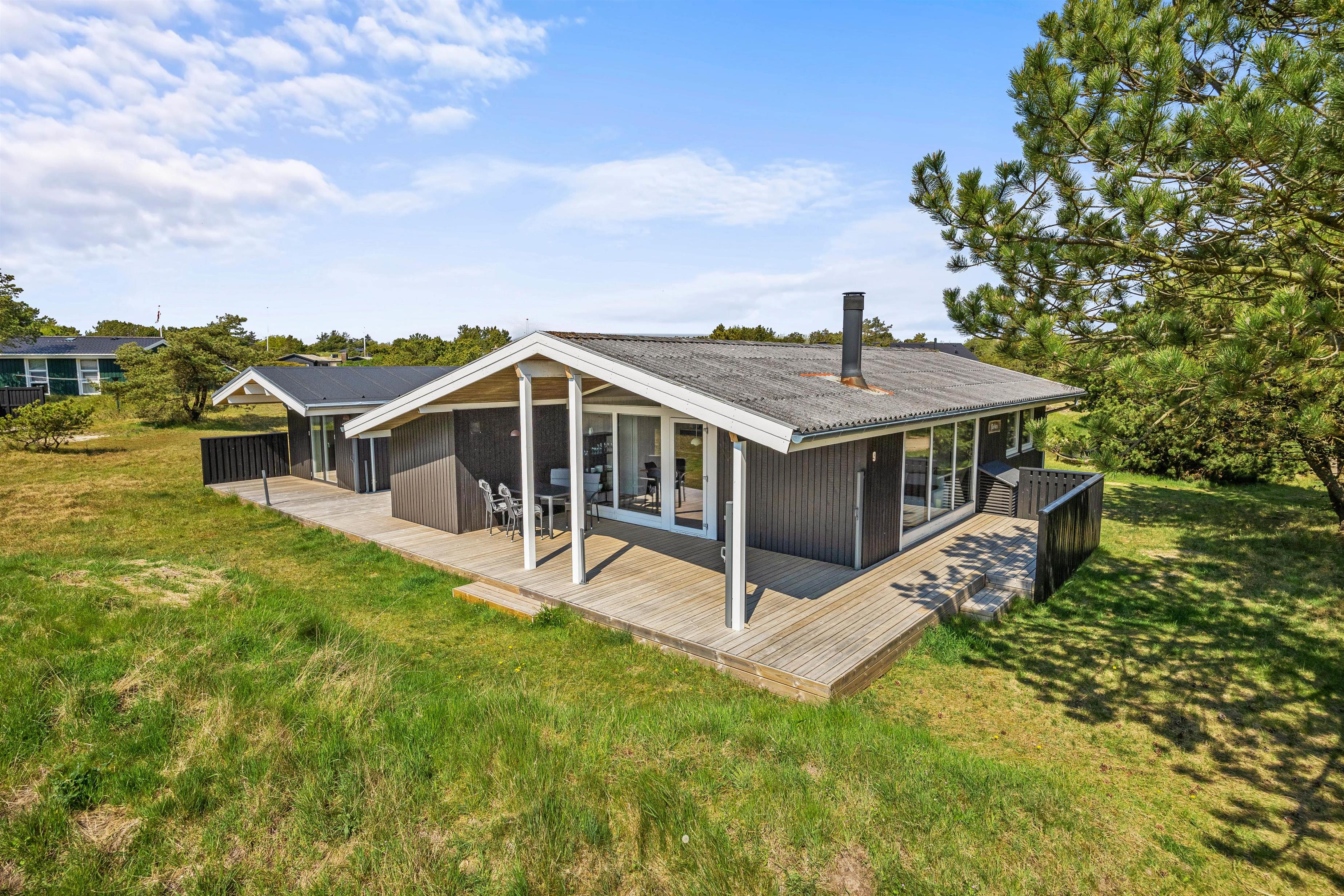 Det åbne grundstykke ligger smukt midt i feriehusområdet, og dine børn og hund kan her lege uhæmmet, alt imens I slapper af i solen med et koldt glas vin.