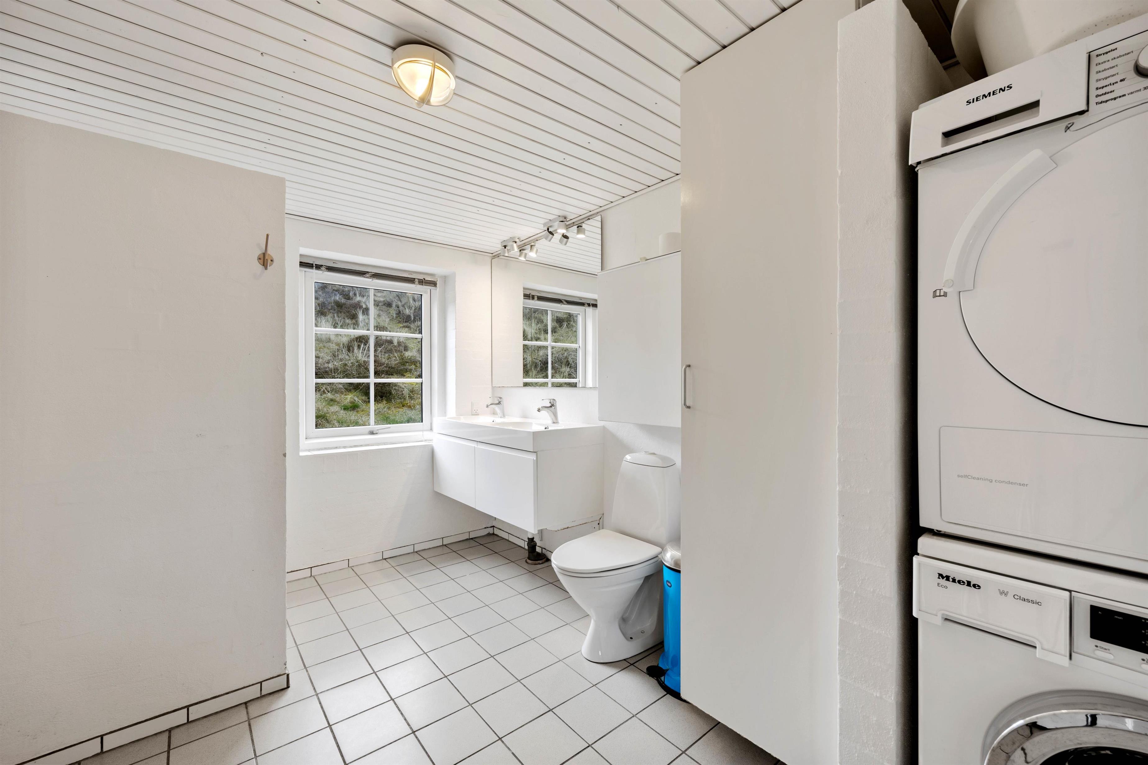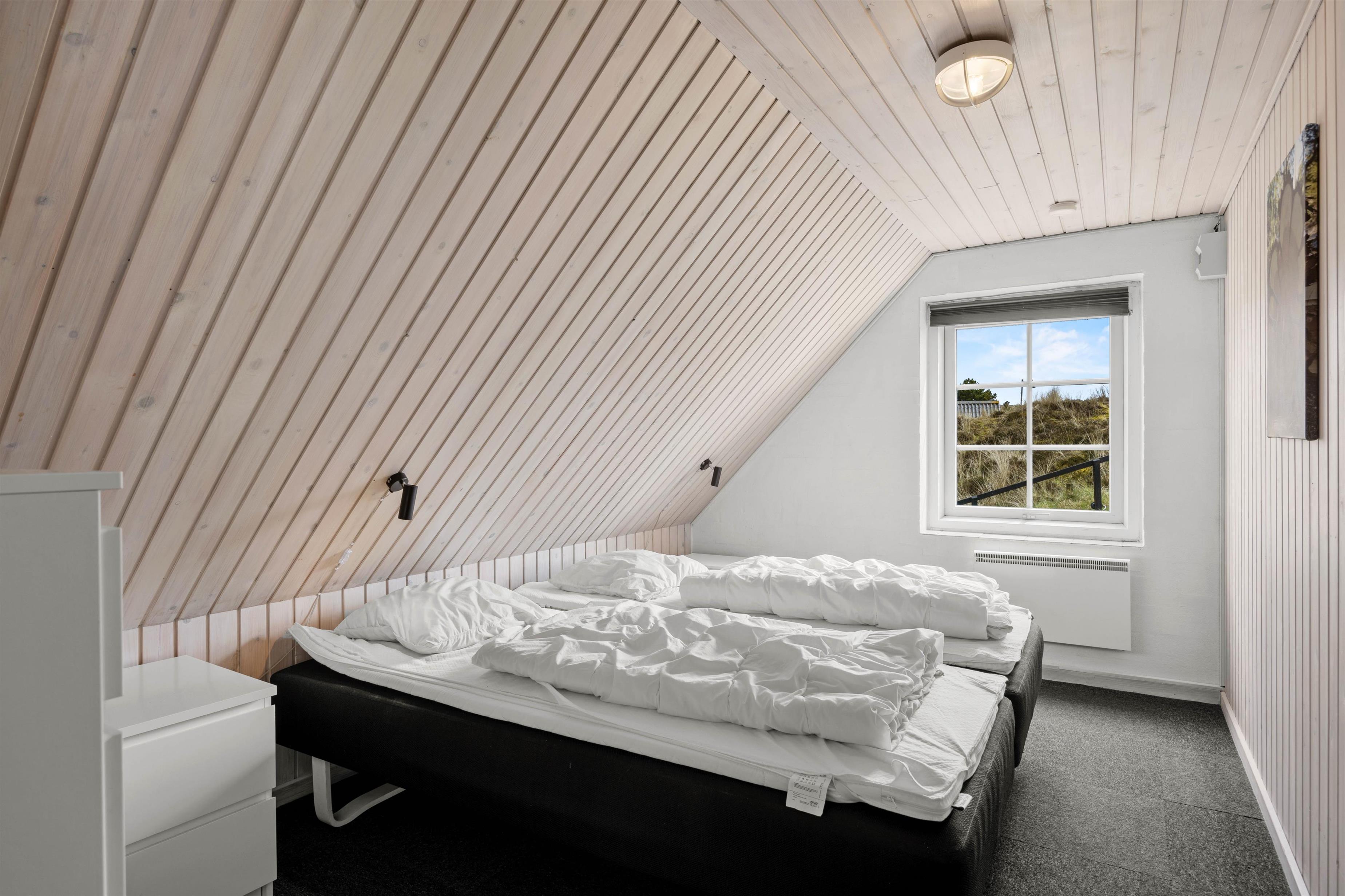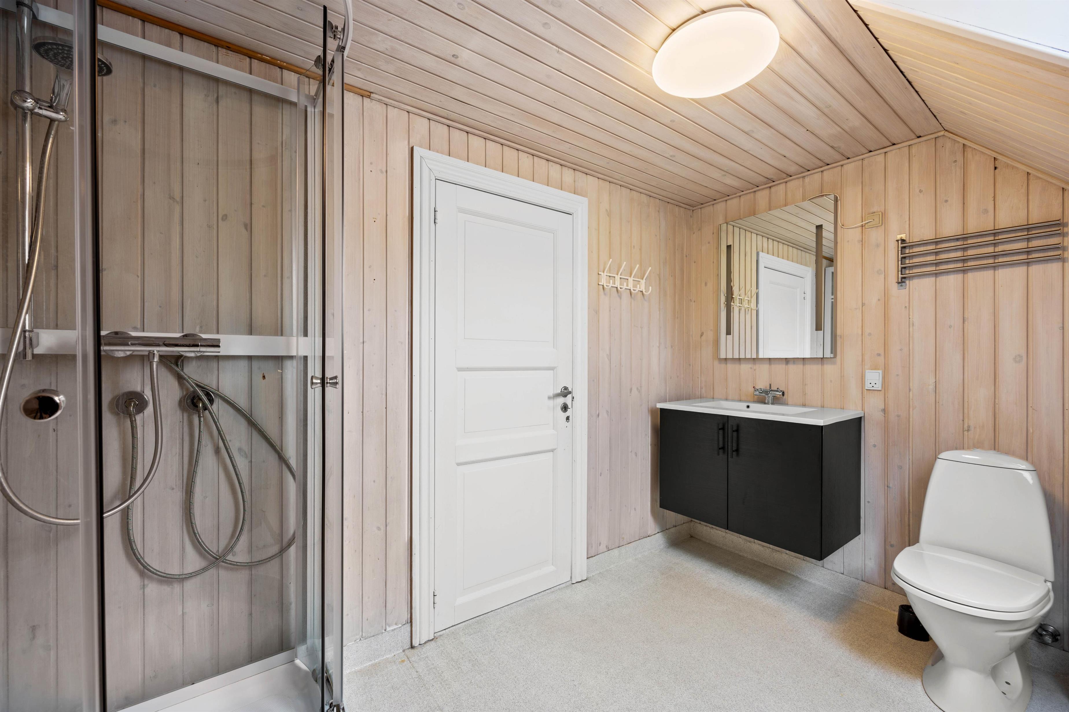 Sommerhuset rummer 2 badeværelser med gulvvarme– ét på hver sin etage. I stueetagen findes 2 soveværelser, mens de resterende 5 er at finde på førstesalen. Alle er udstyret med komfortable dobbeltsenge, der sikrer nattesøvnen.