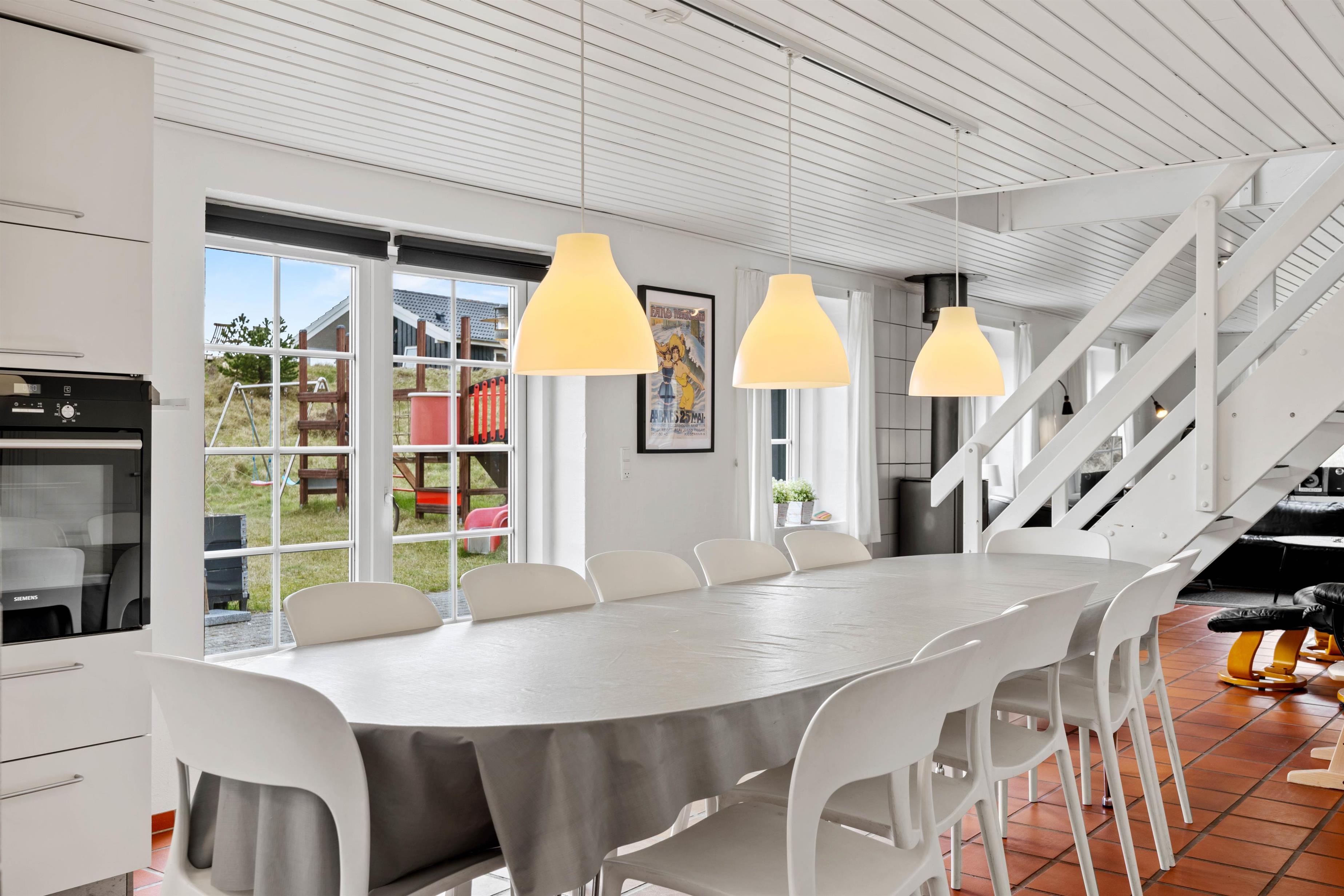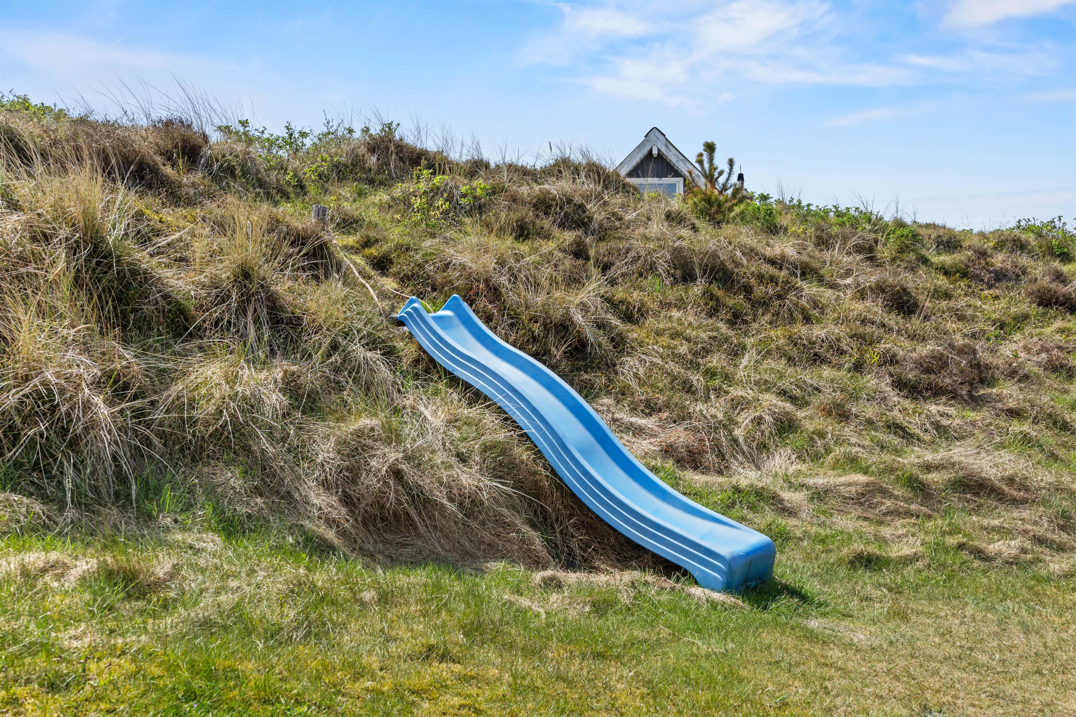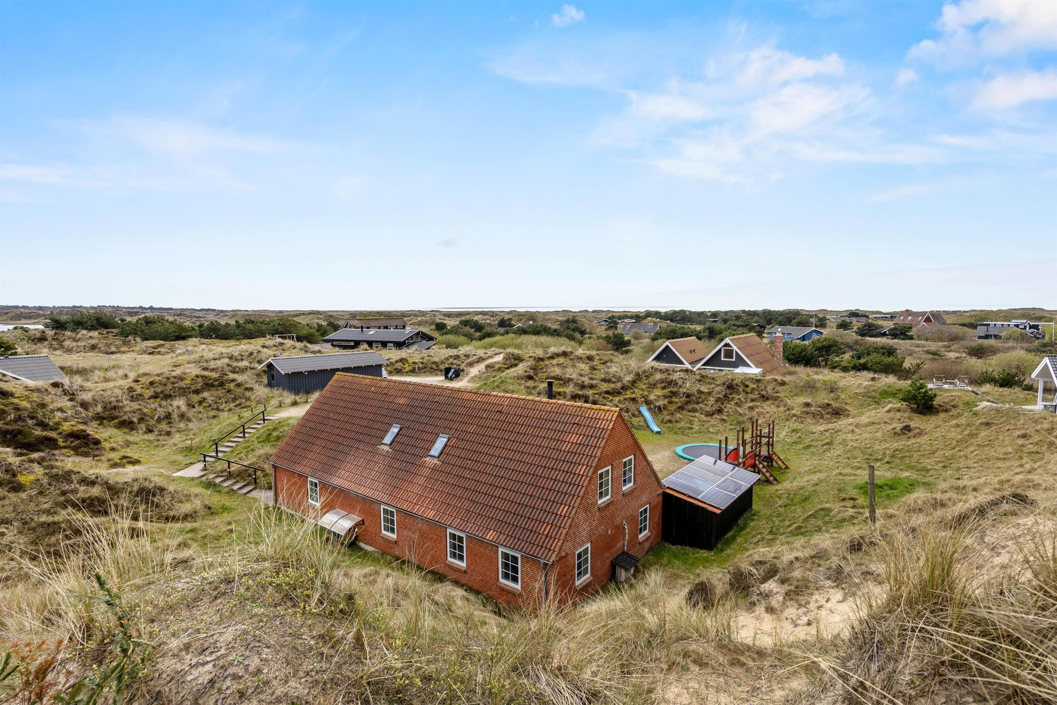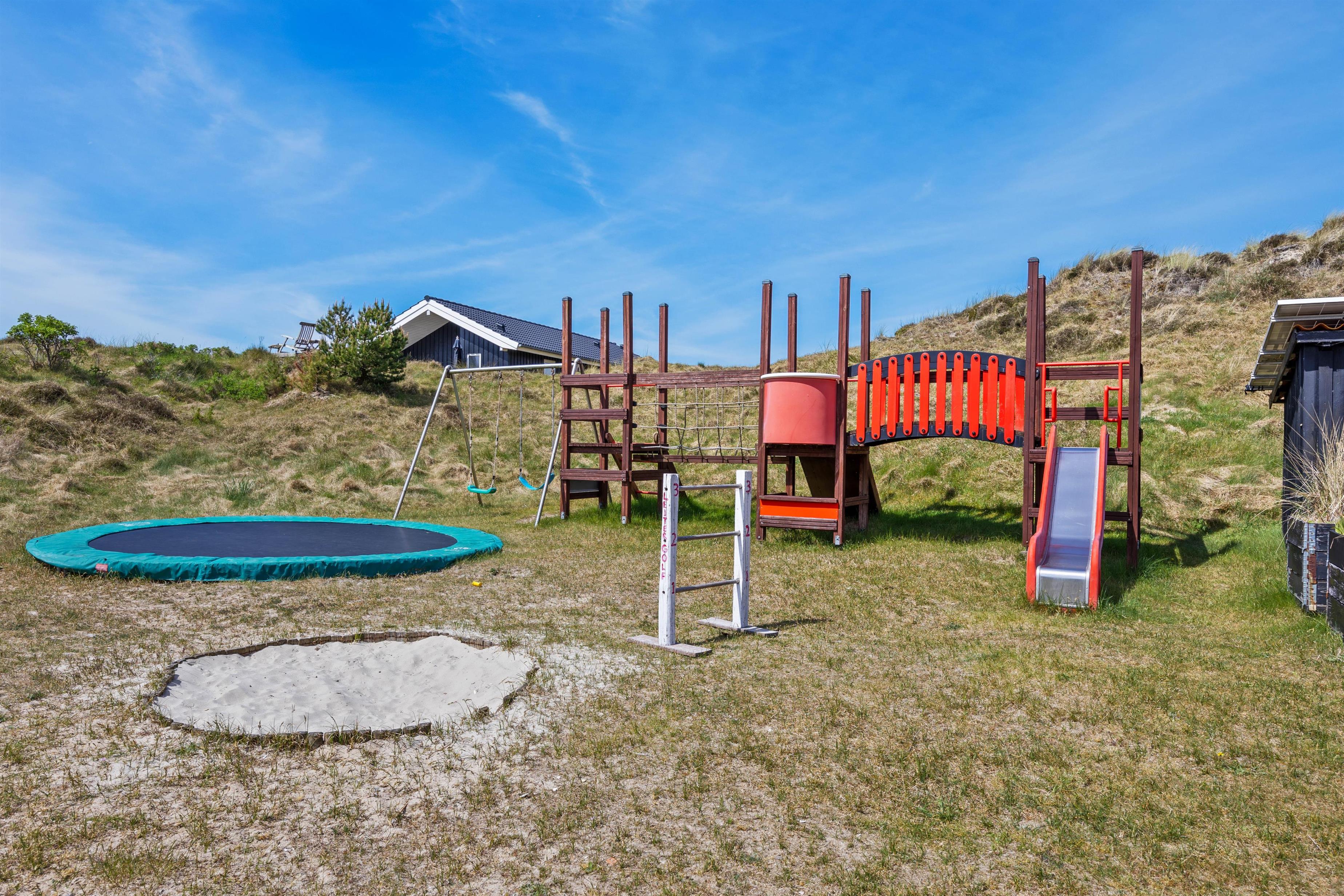 Fra stuen er der direkte adgang til den afskærmede terrasse og have, som er omgivet af det smukke, vilde klitlandskab. Her kan I nyde middagssolen med en god bog, slikke sol og holde nogle dejlige grillaftner. Mens de voksne slapper af med et koldt glas vin, kan ungerne give den gas i haven. Legetårn, rutsjebane, sandkasse, gynger og trampolin – her mangles ikke noget.