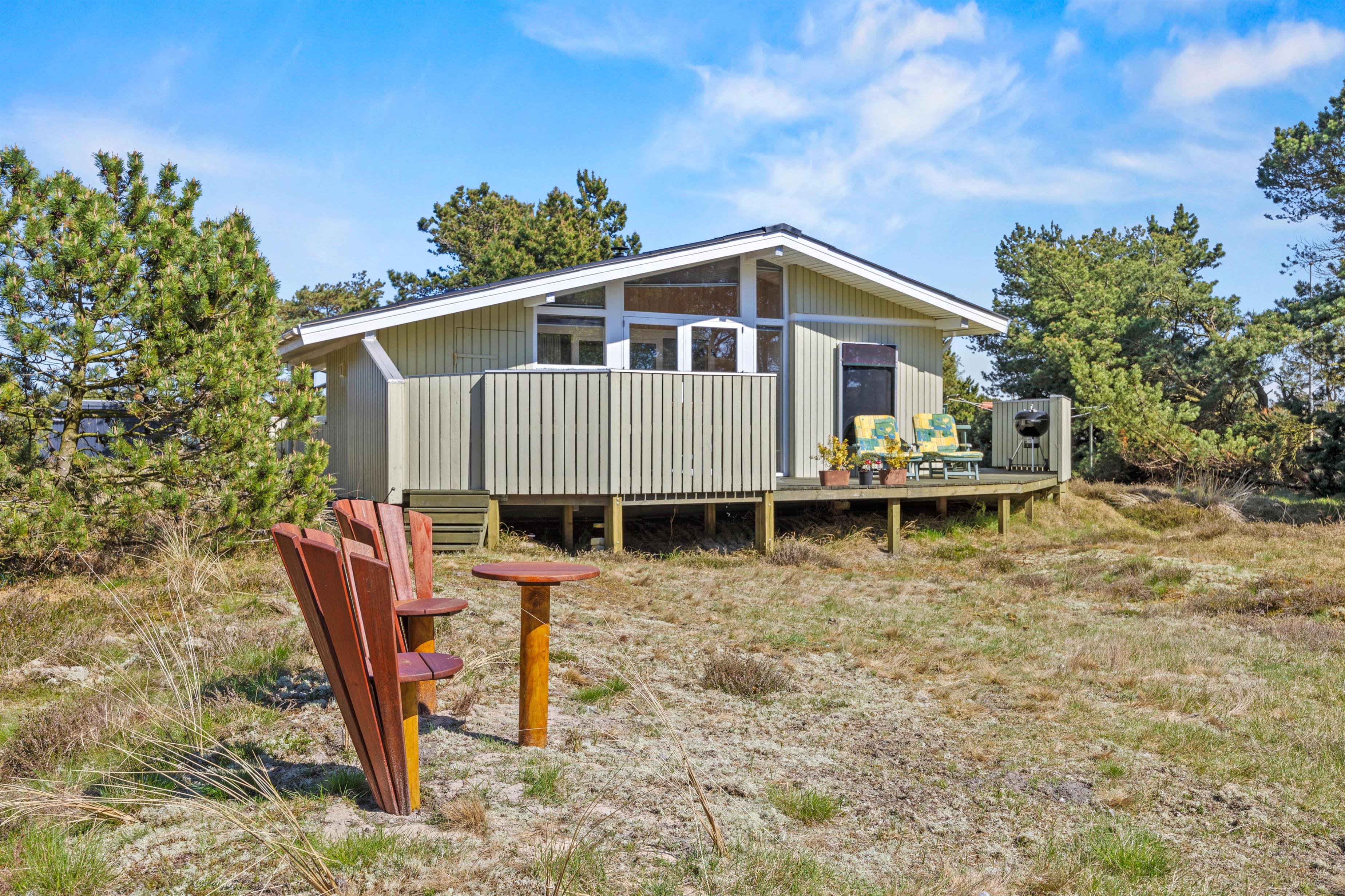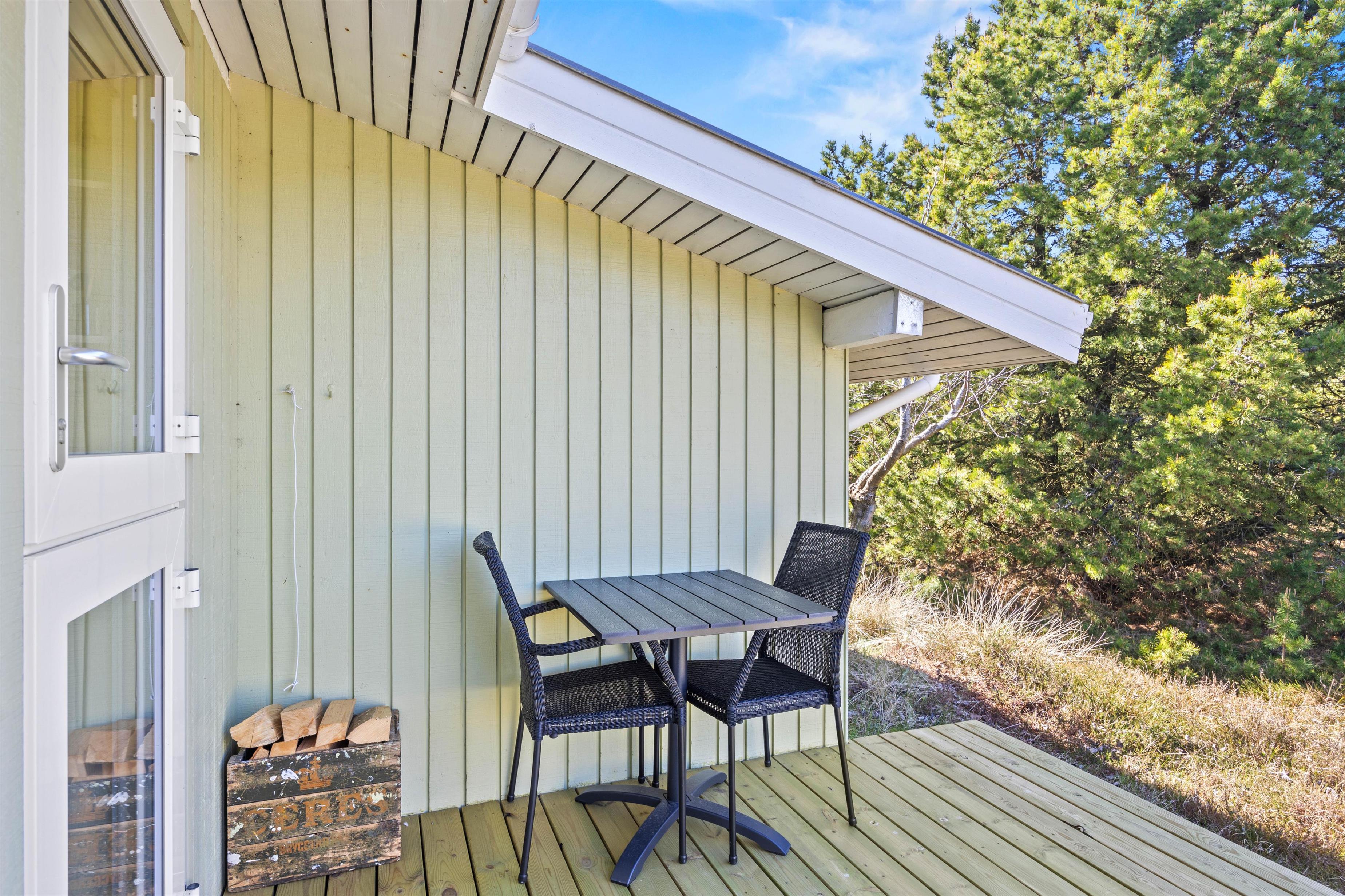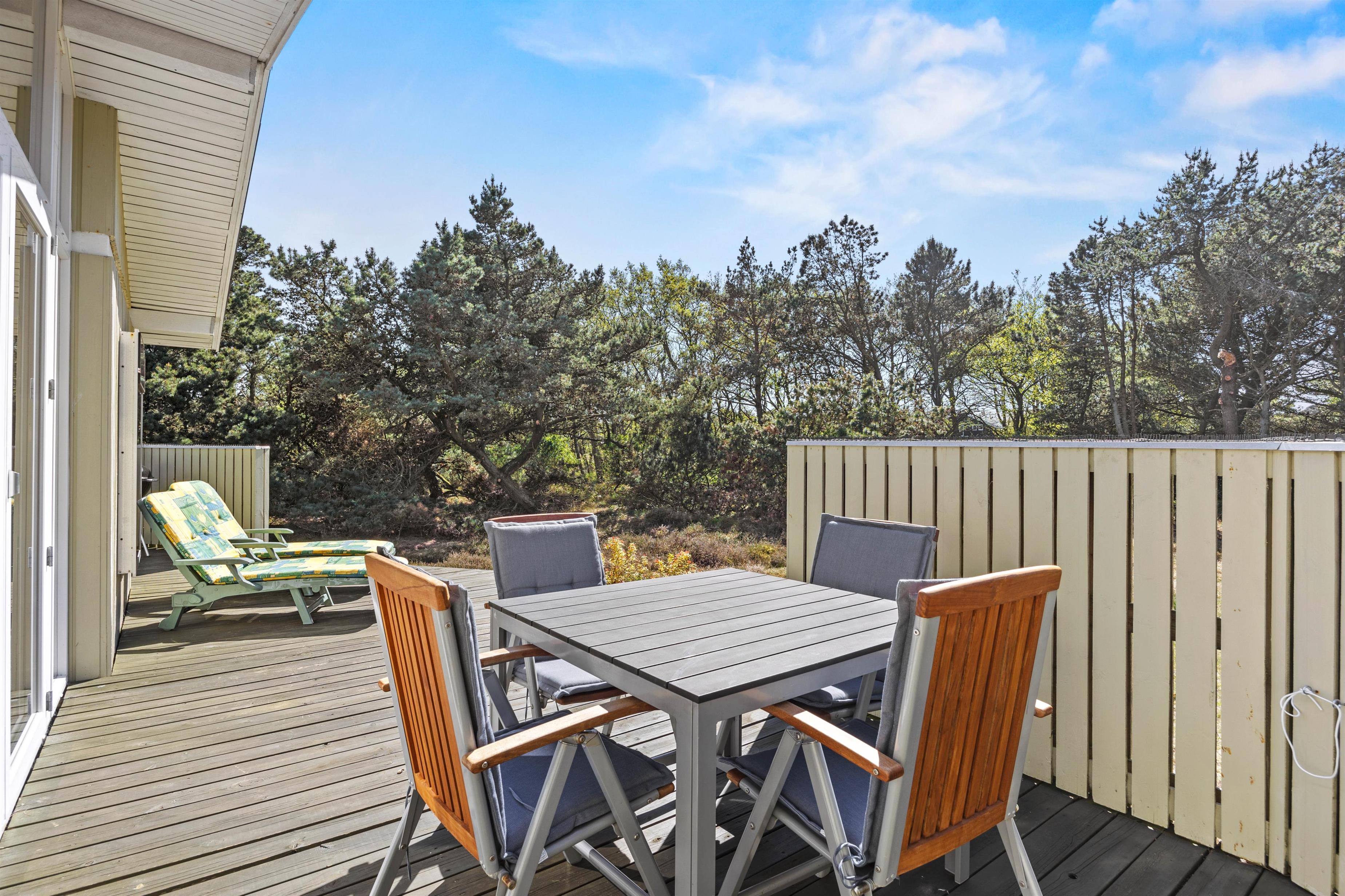Familiens pelsede ven er velkommen og kan blotre sig på den lukkede terrasse og sommerhusets beliggenhed giver jer rig mulighed for skønne gåture i de naturskønne omgivelser, hvor I kan nyde frisk luft. Også på den fine træterrasse kan I nyde den friske luft og ikke mindst solskinstimerne. Her kan I slå benene op og samles til en hyggelig middag, der naturligvis kan tilberedes på husets kulgrill. Havemøblerne står klar til jer.