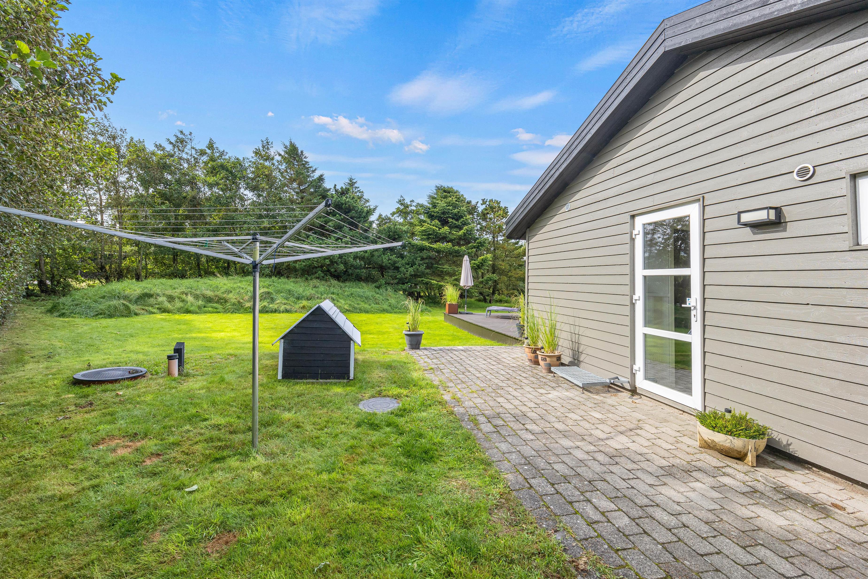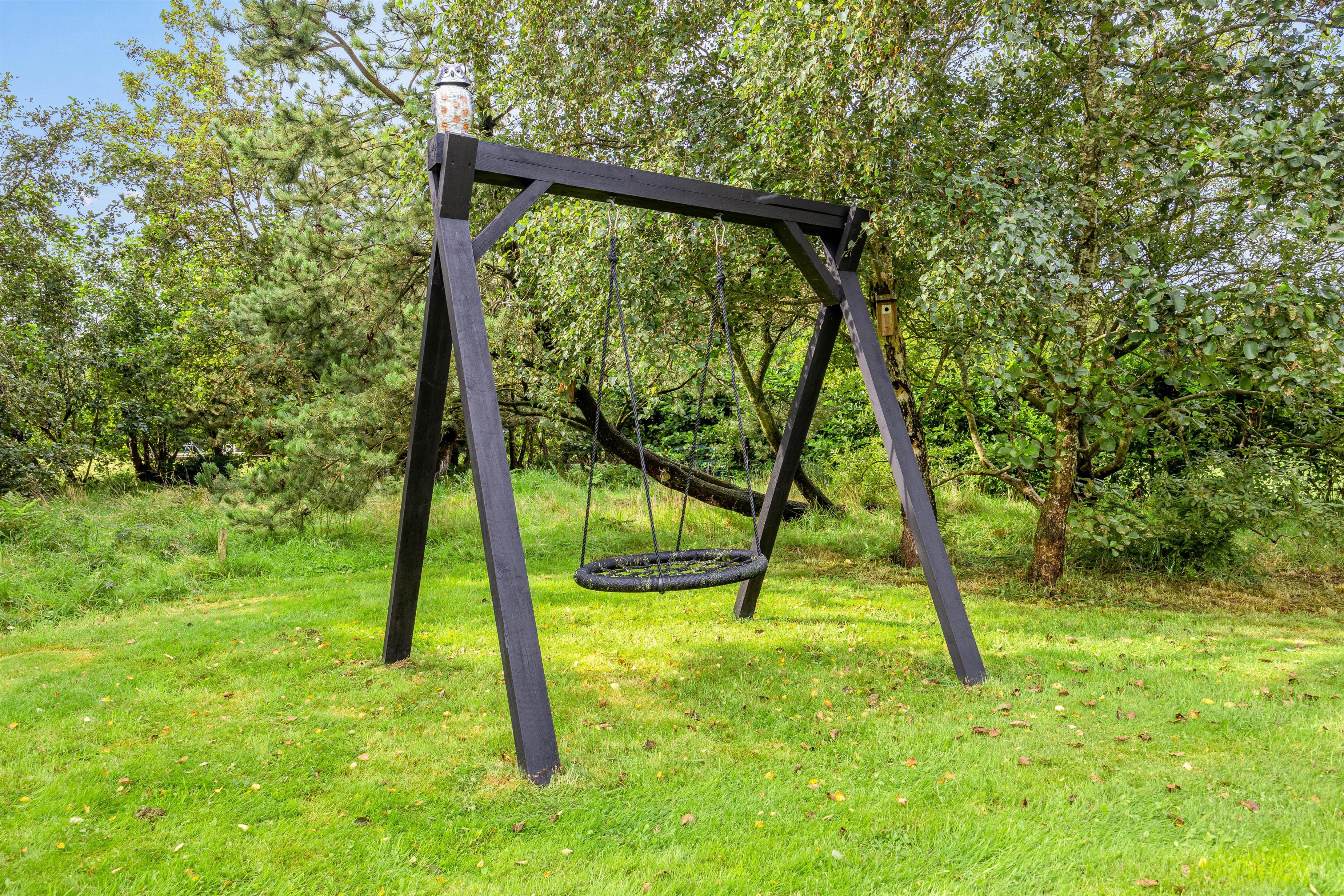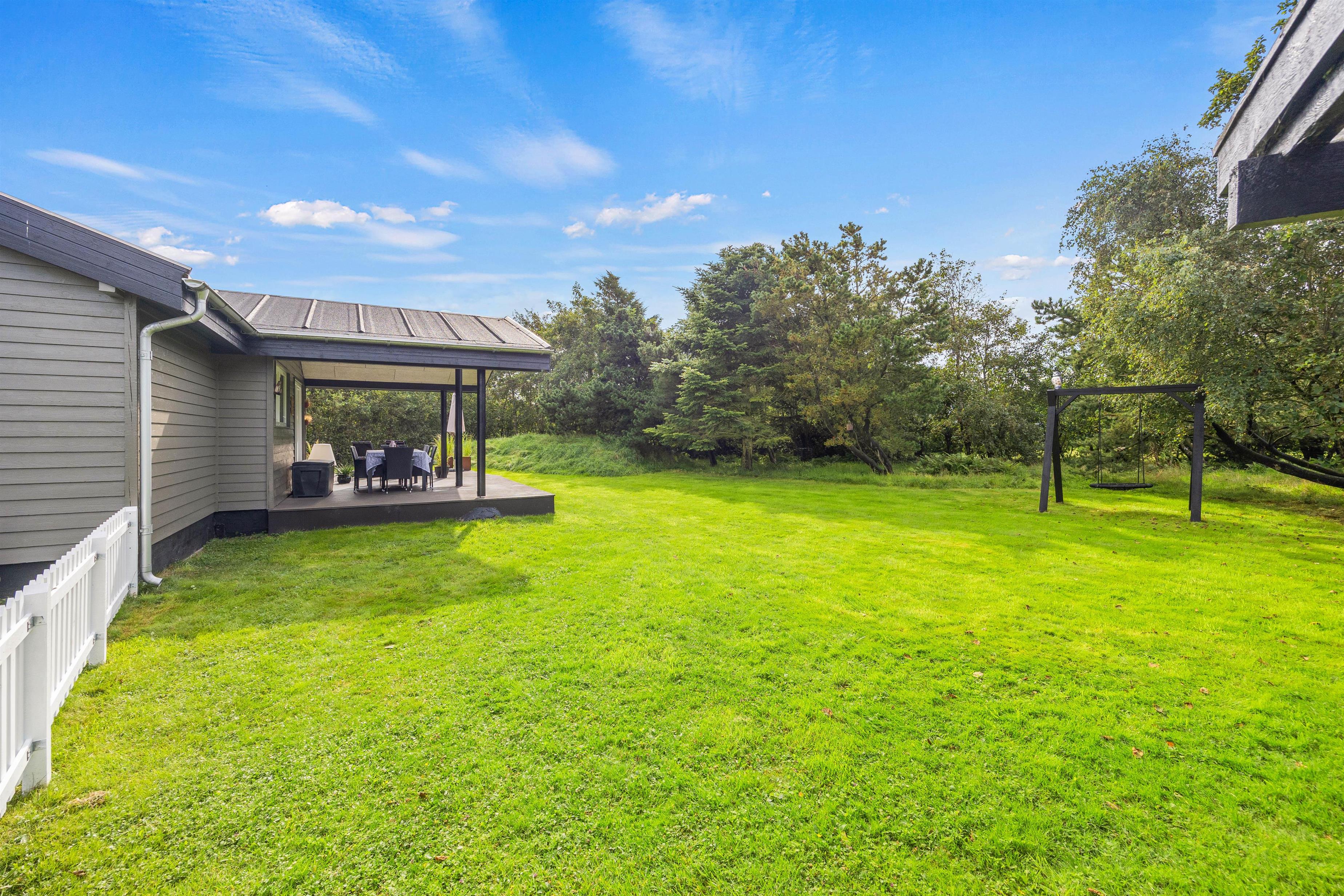 Gør jer det behageligt i de fine havemøbler eller solvogne, tænd op i grillen og nyd duften af grillmad, alt imens familiens yngste og jeres hund leger på den store plænegrund, hvor der også er et gyngestativ. Grunden ligger ugeneret og godt gemt i landskabet.