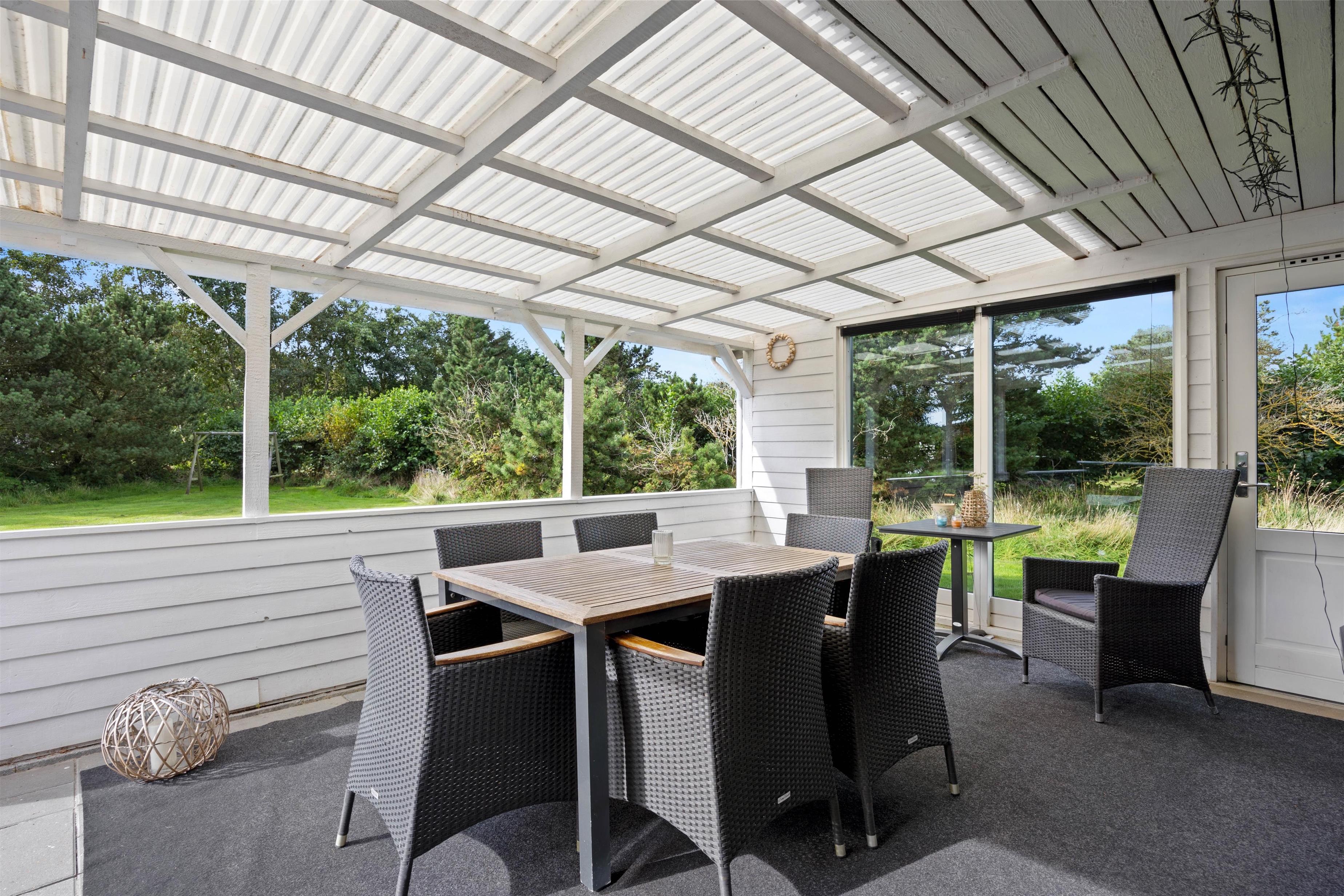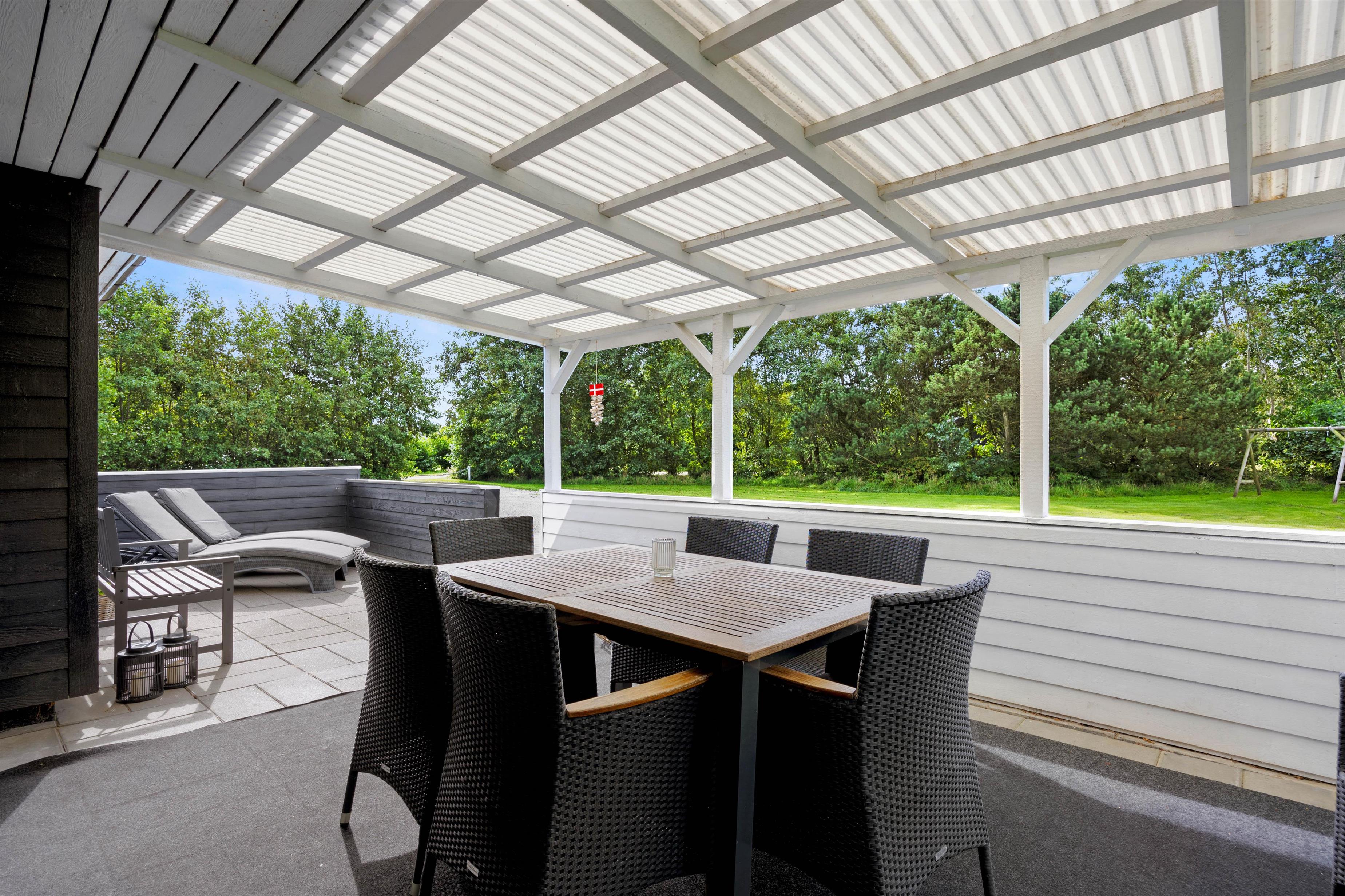 Middagen kan I med fordel nyde på den overdækkede terrasse, der er et højdepunkt for dette feriehus. Uanset vejrets luner, kan I altid finde ly her samt nyde omgivelserne og den vesterhavsluft.