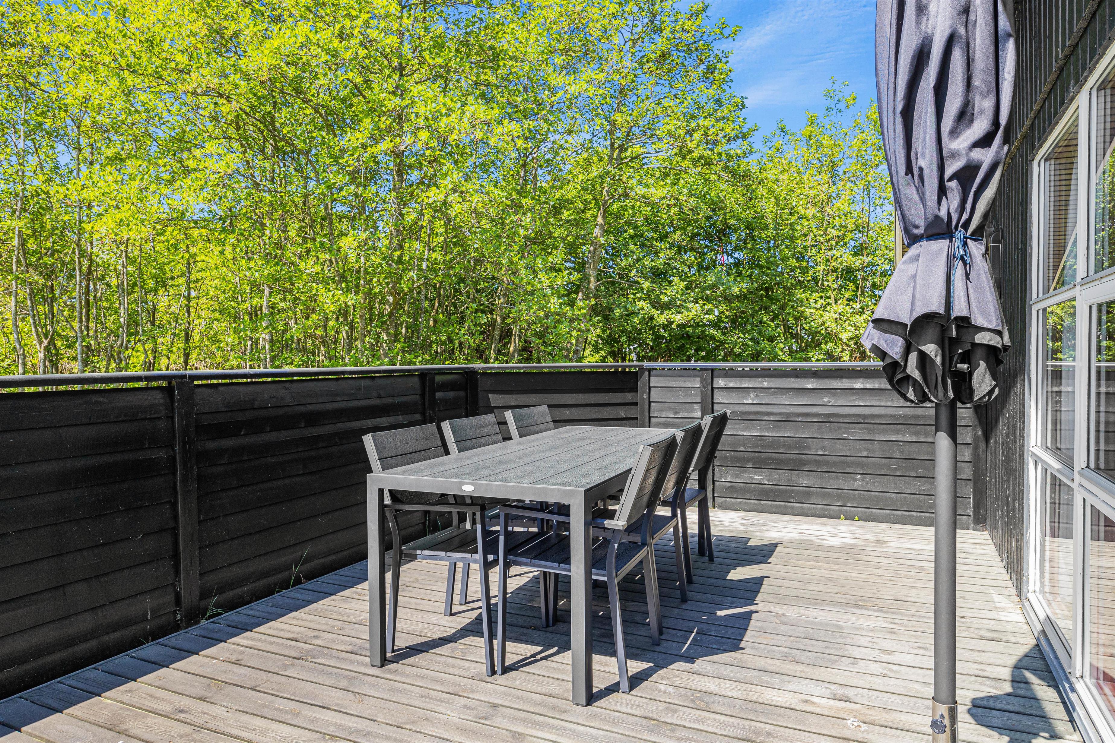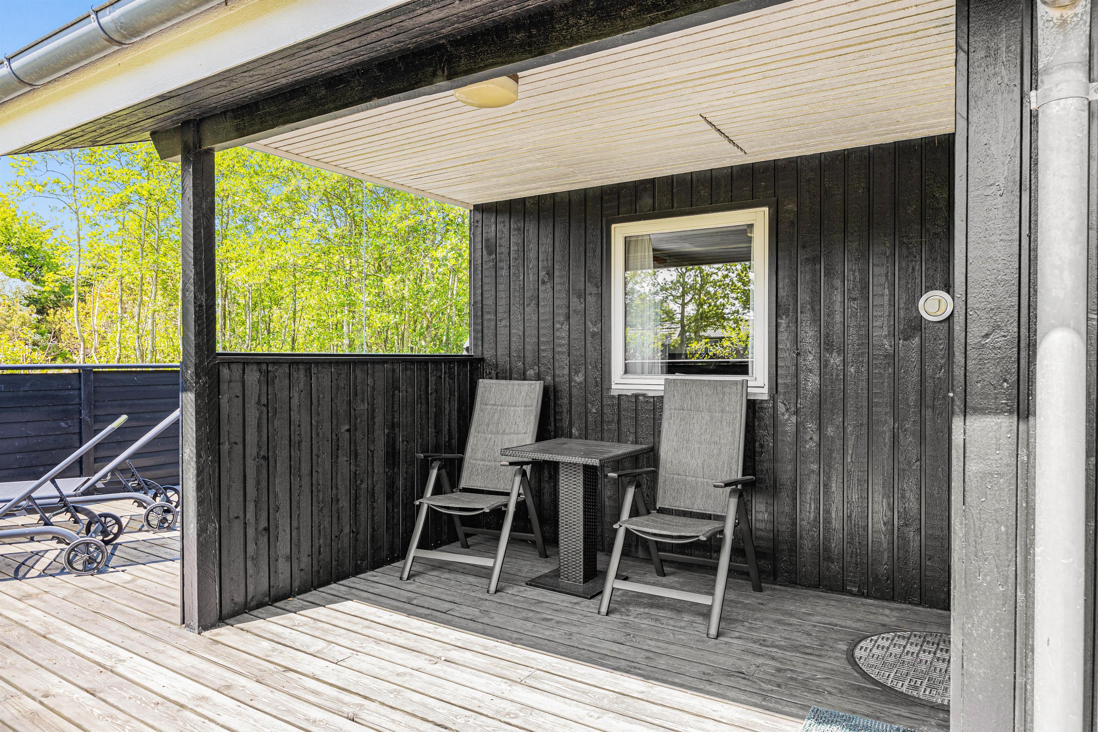 Den store terrasse der strækker sig langs 3 af husets sider, der både er delvist overdækket og afskærmet, indbyder til mange timer i det fri. Her står både solvogne og havemøbler klar til jer, og på den tilhørende grill kan I tilberede lækkerier og spise aftensmaden på terrassen.