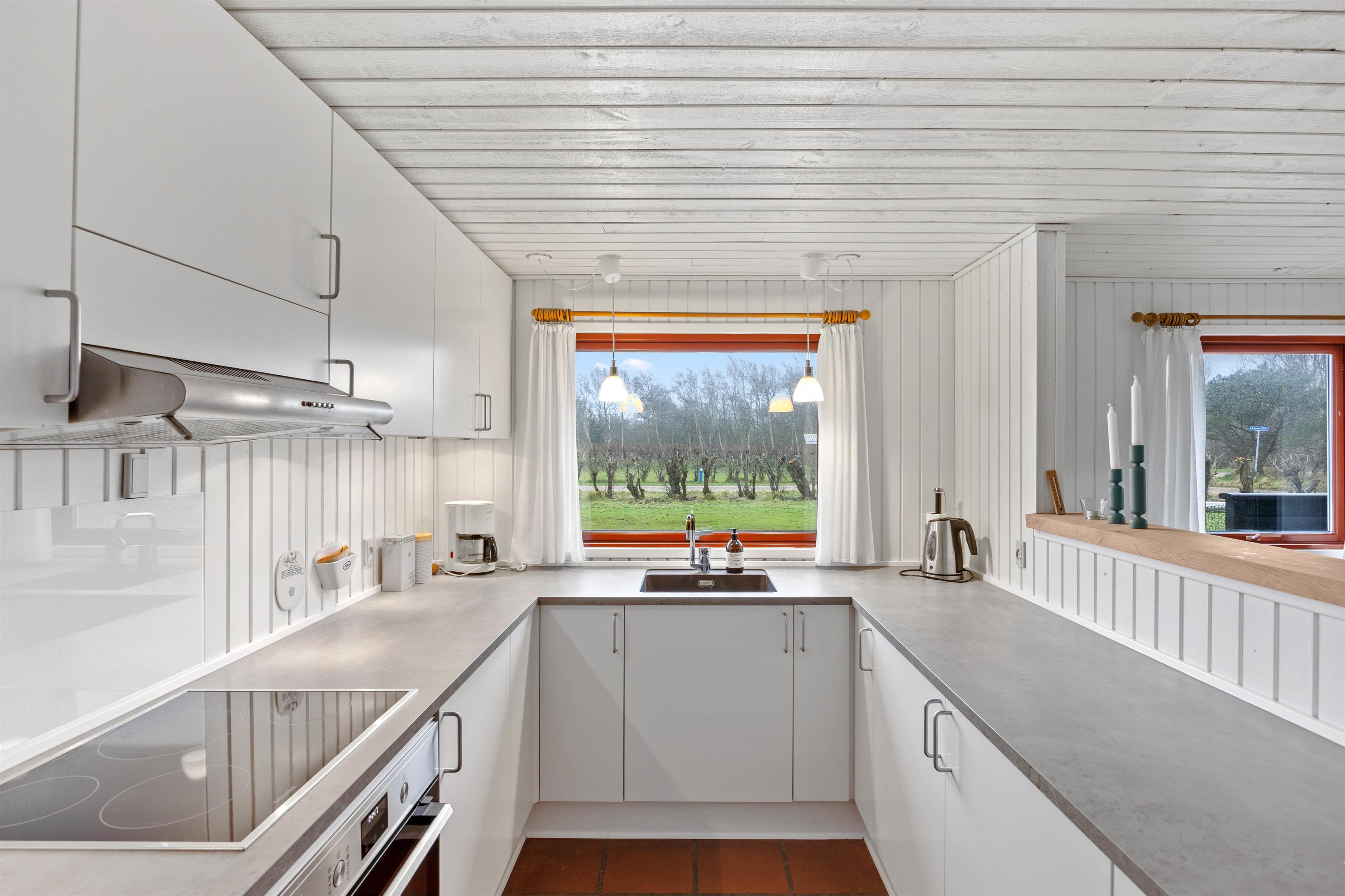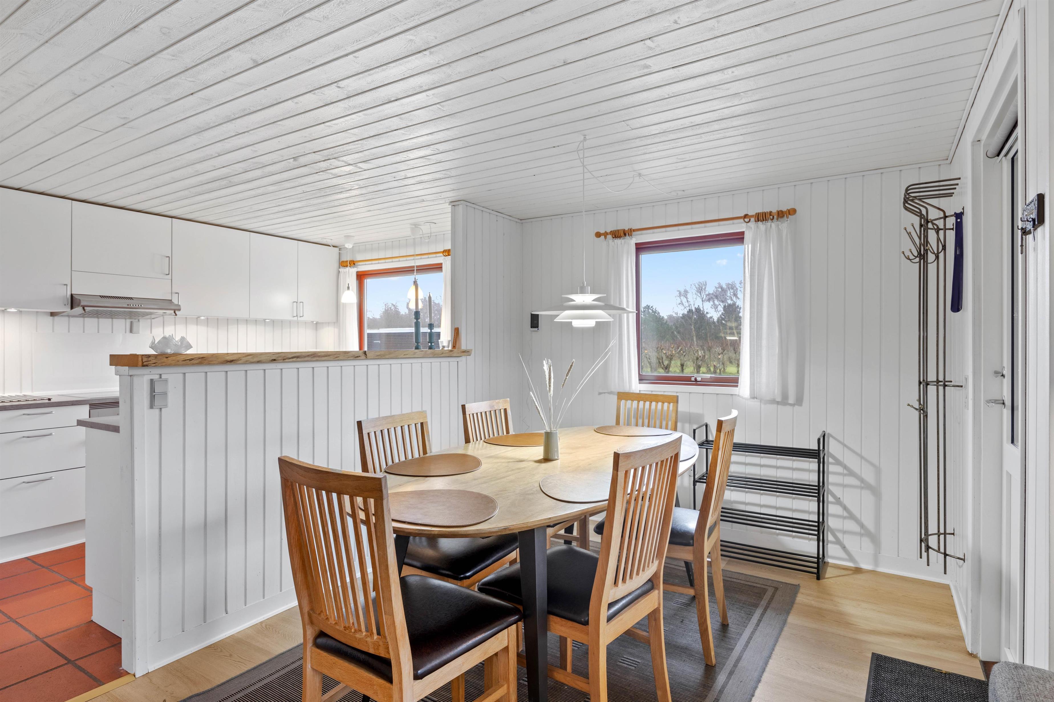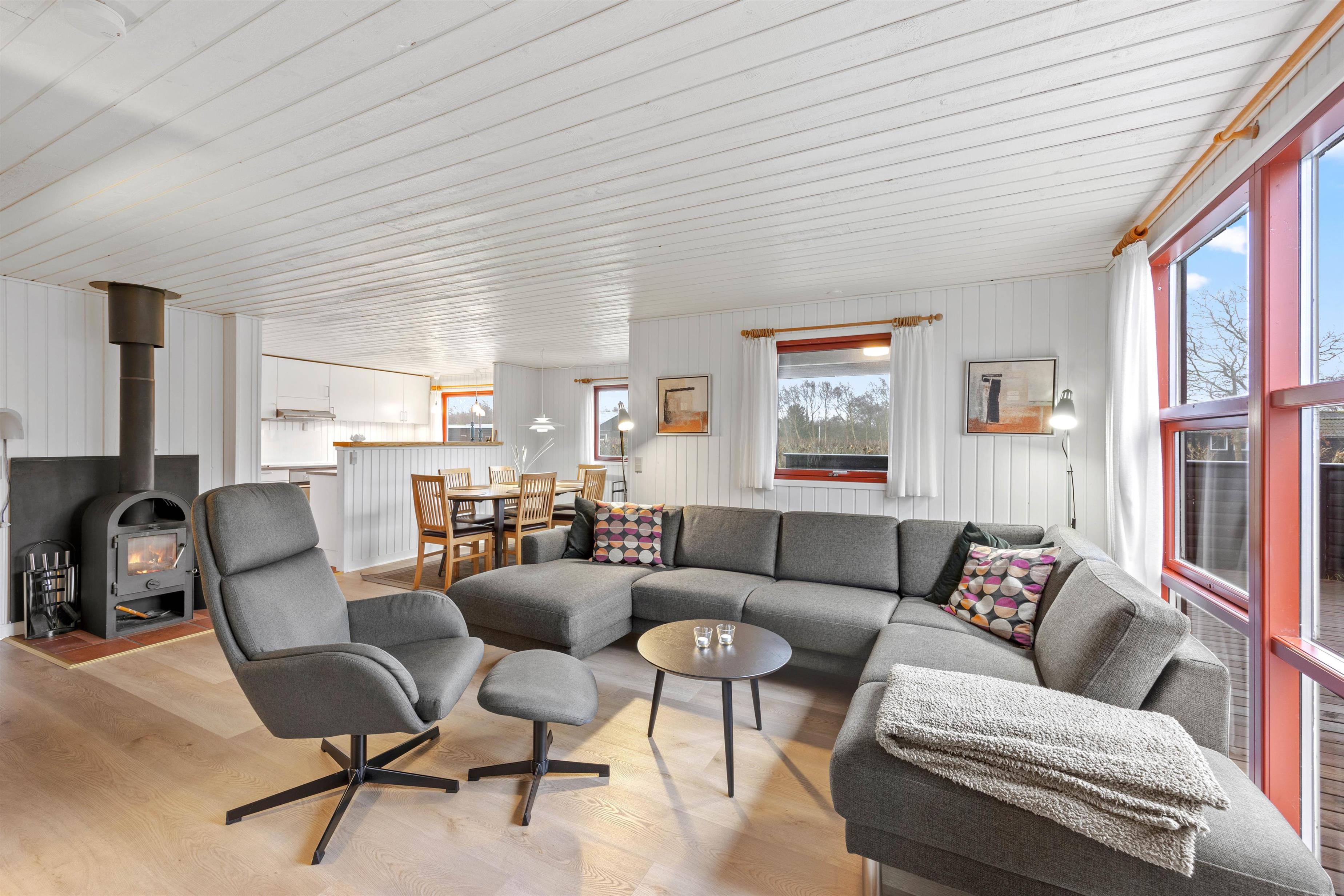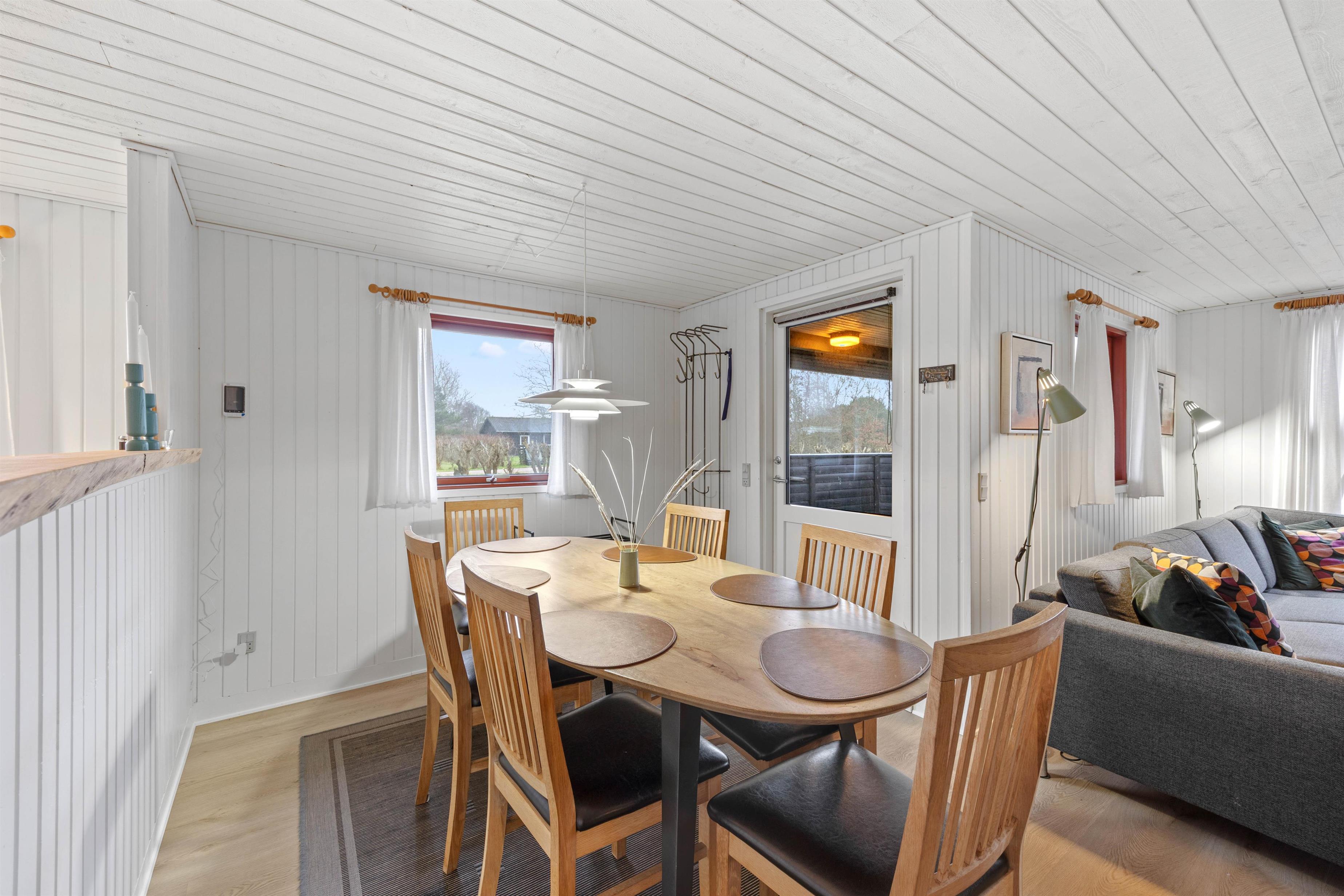Så snart du træder ind ad døren på Larses Toft 22 rammer feriefornemmelsen. Det i 2021 delvist renoverede feriehus er indrettet med hygge og afslapning i mente. Her sørger indretningen for mange hyggelige timer i hinandens samvær, også selvom I foretager jer noget forskelligt. Feriehusets hjerte er nemlig det rummelige køkkenalrum, hvor I har den komfortable sofa, et hyggeligt hjørne til afslapning, det store spisebord perfekt til et slag brætspil og det veludstyrede køkken, hvor familiens kok kan tilberede lækkerier.