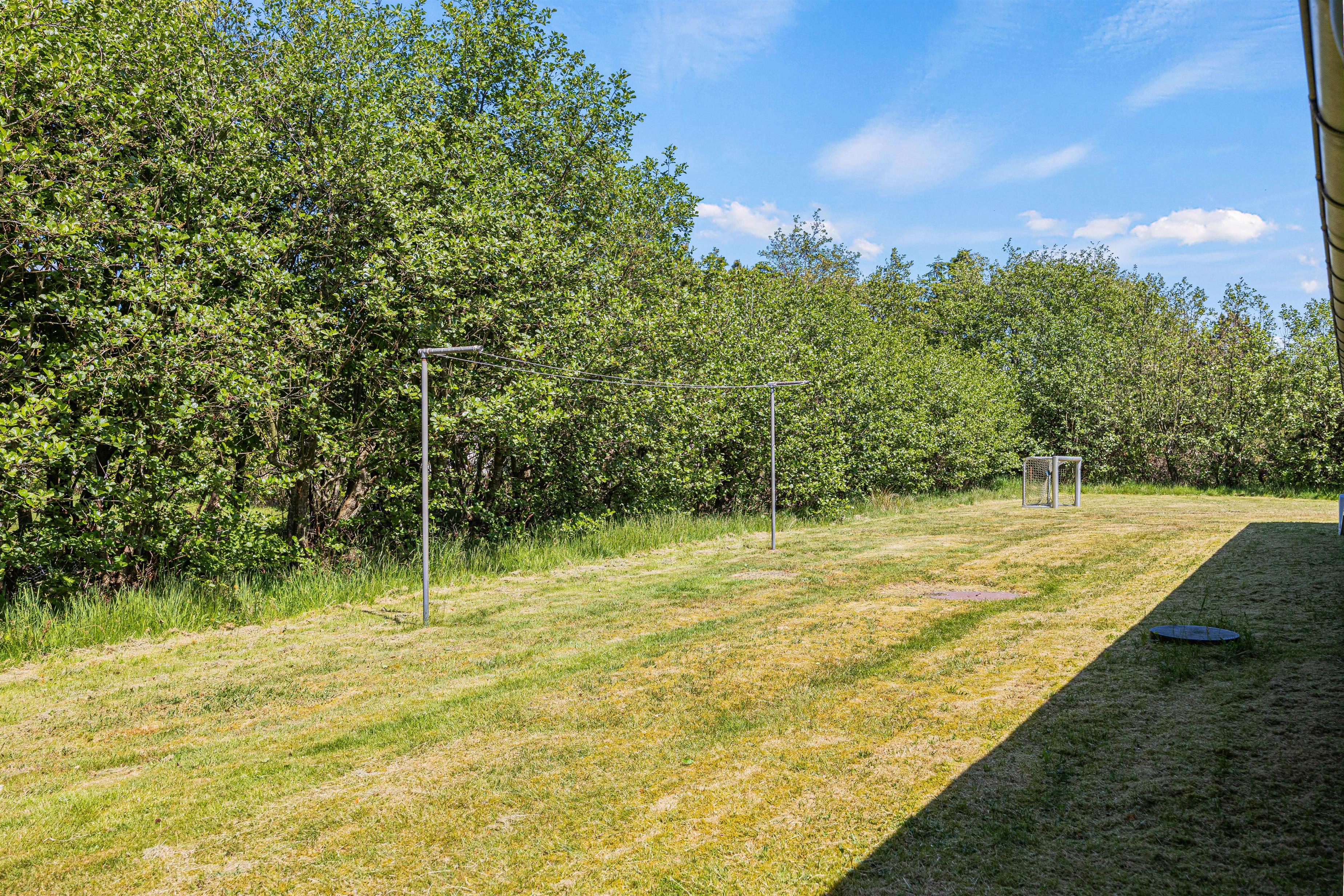 Feriehuset på Larses Toft 22 ligger godt på en stor plænegrund midt i skønne omgivelser. Her er der plads til at børnene kan boltre sig og spille bold i flere timer.