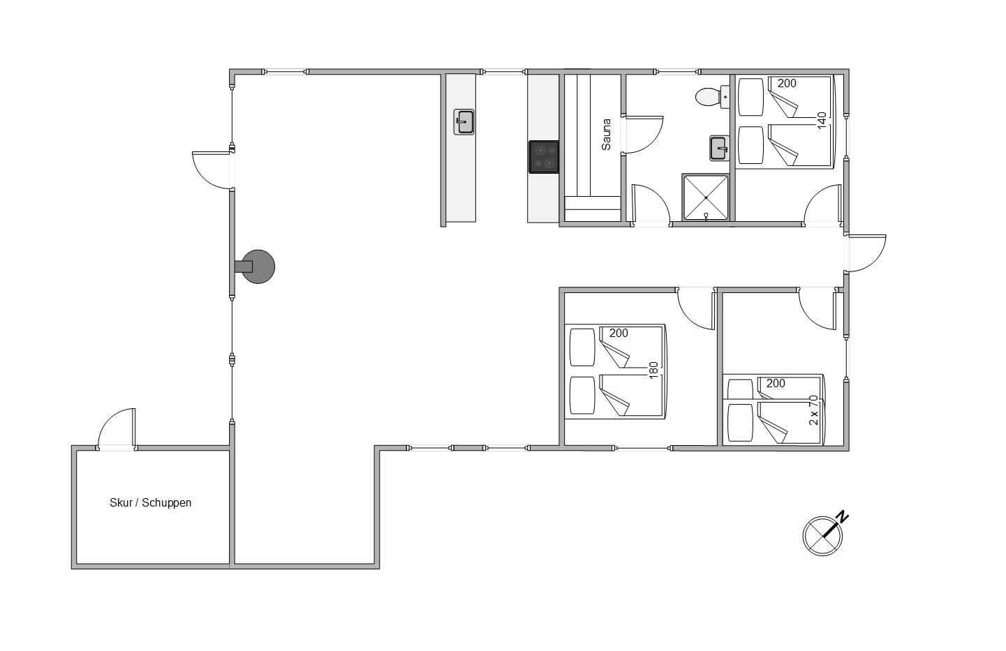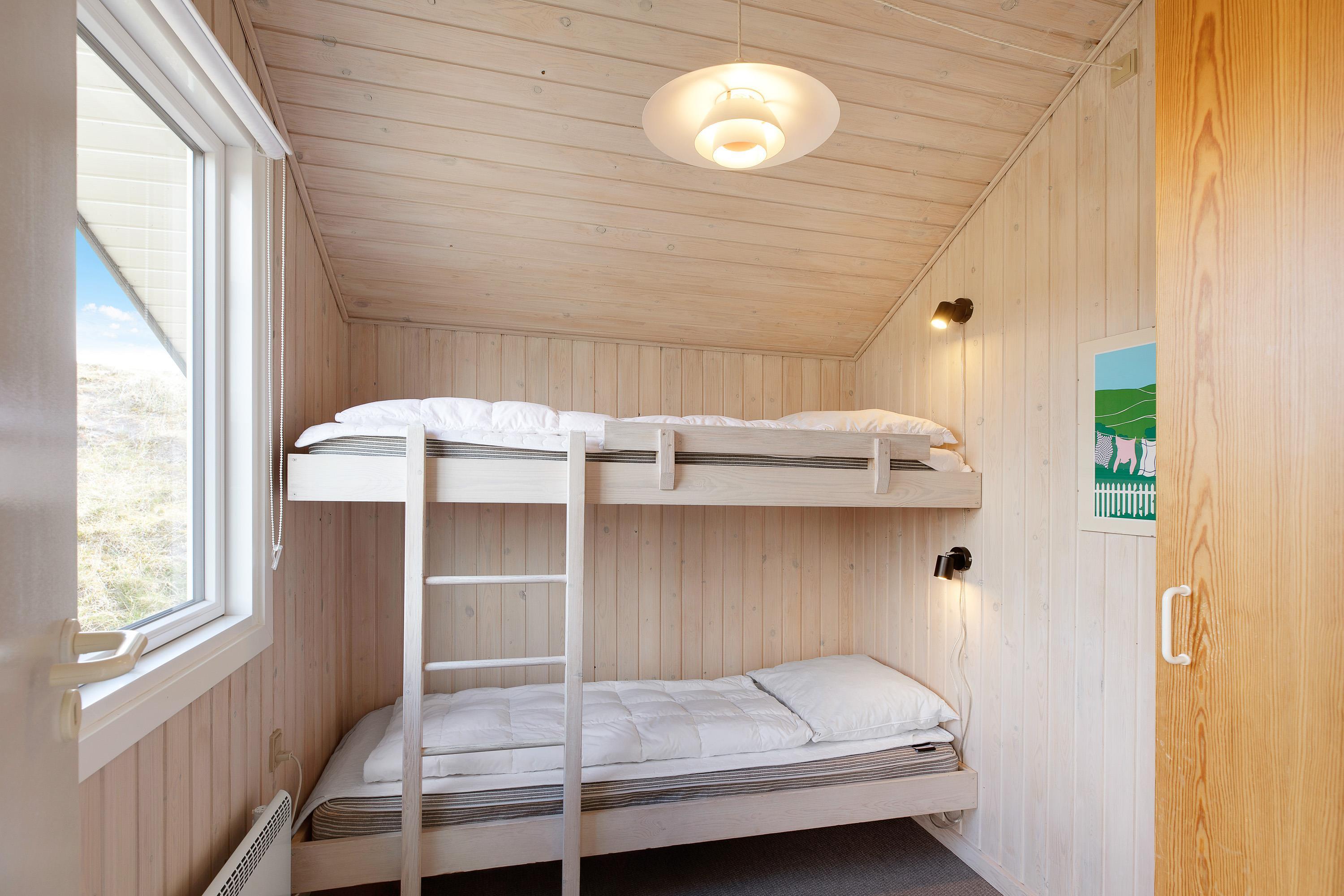 Efter en dejlig feriedag er det tid til at gå til køjs, og her har I 3 gode soveværelser, I kan søge mod. 2 af soveværelserne har en dobbeltseng hver, mens det tredje soveværelse er indrettet med en køjeseng. Derudover rummer sommerhuset 1 badeværelse, der er udstyret med gulvvarme, så ingen skal fryse fødderne fra morgenstunden.