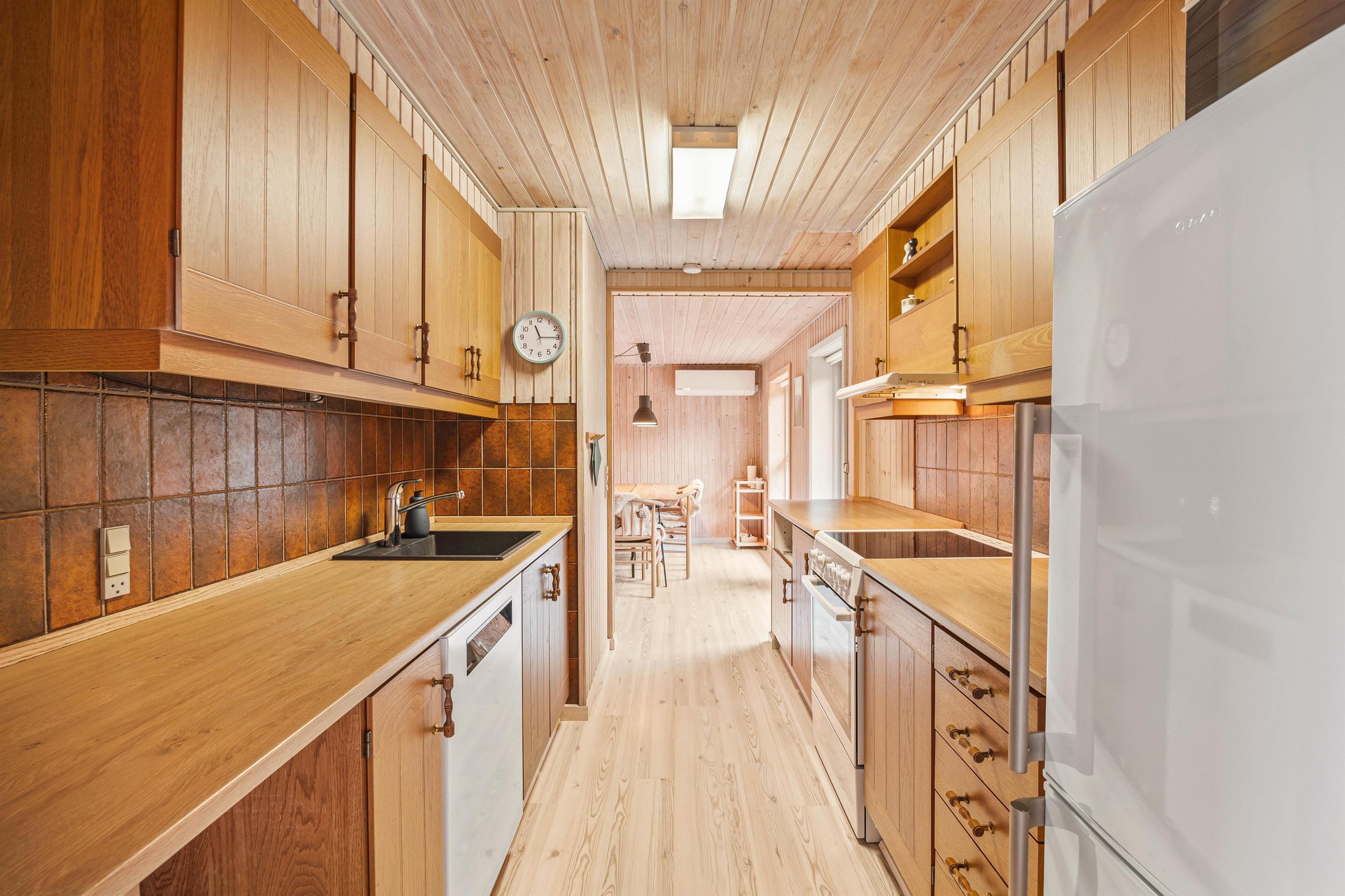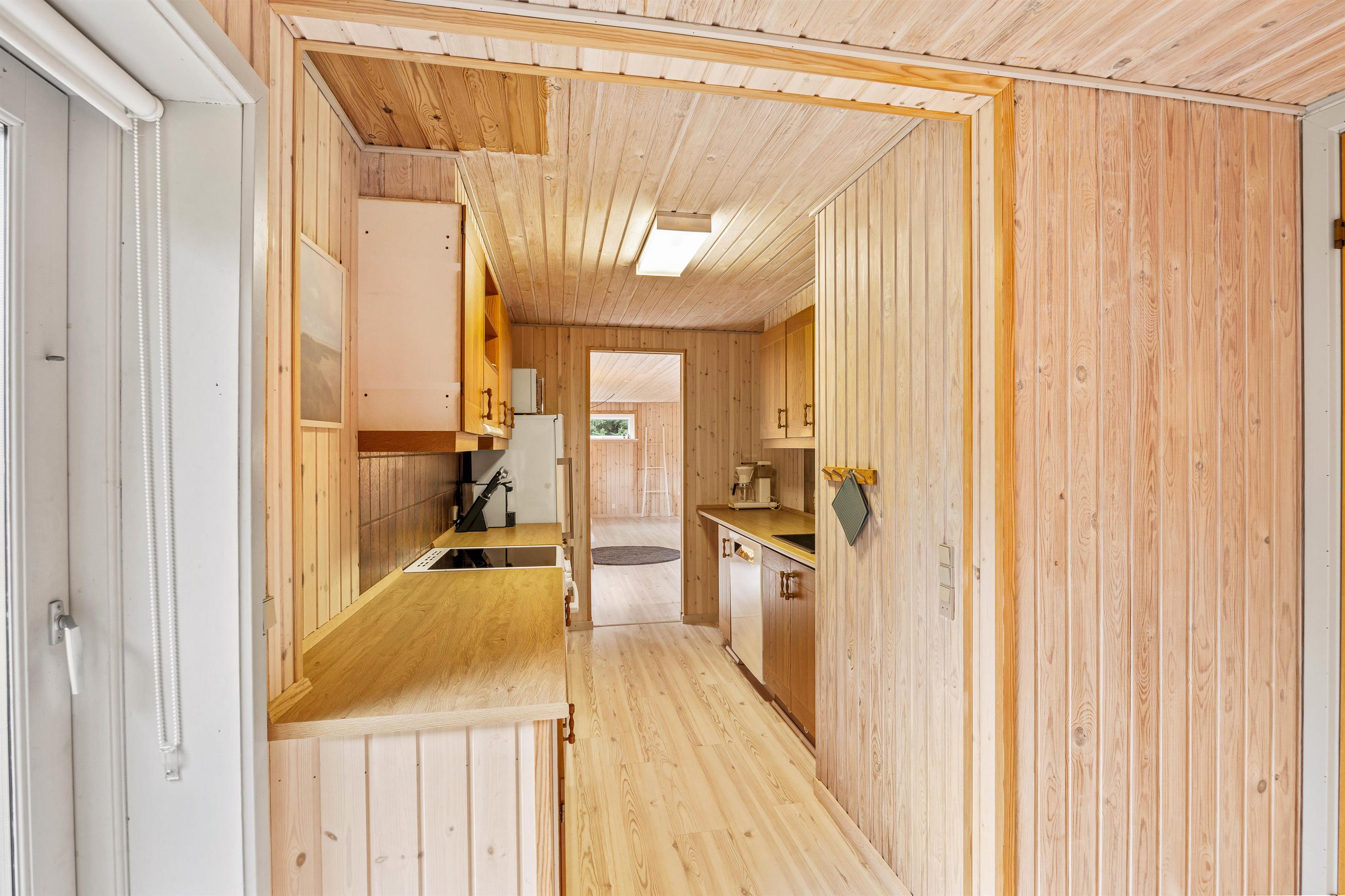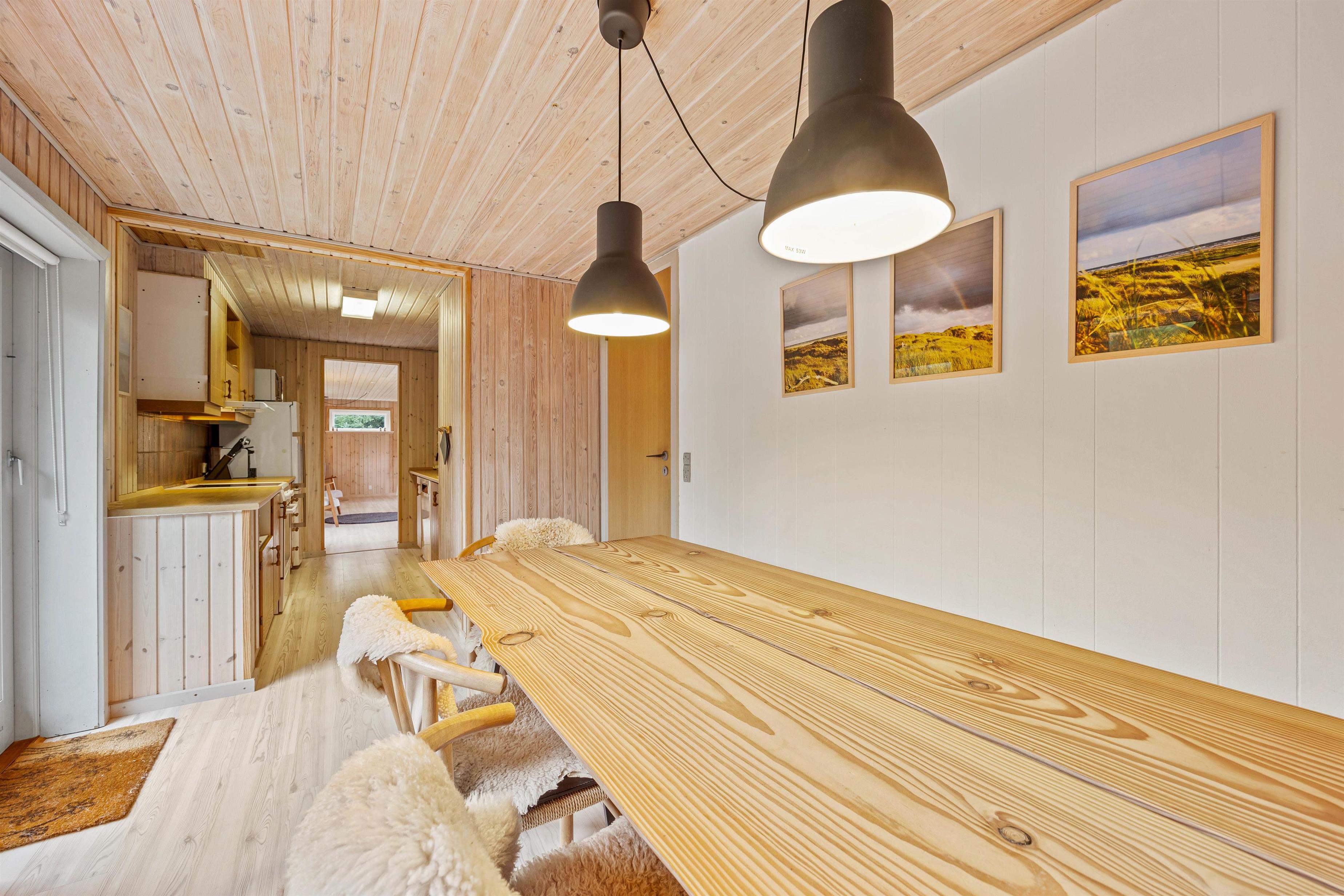 Feriehuset gennemgik i 2020 en delvis renovering, og består af en dejlig lys stue med god plads til hygge i de komfortable møbler, hvor I kan se en film sammen på TV imens brændeovnen runder hyggestemningen af med en god varme og den sagte knitren i baggrunden. Det velfungerende køkken støder op mod stuen, og har udover en opvaskemaskine og en separat 60 liters fryser, en tilhørende spisestue med plads til mange sjove timer med brætspil og samvær.