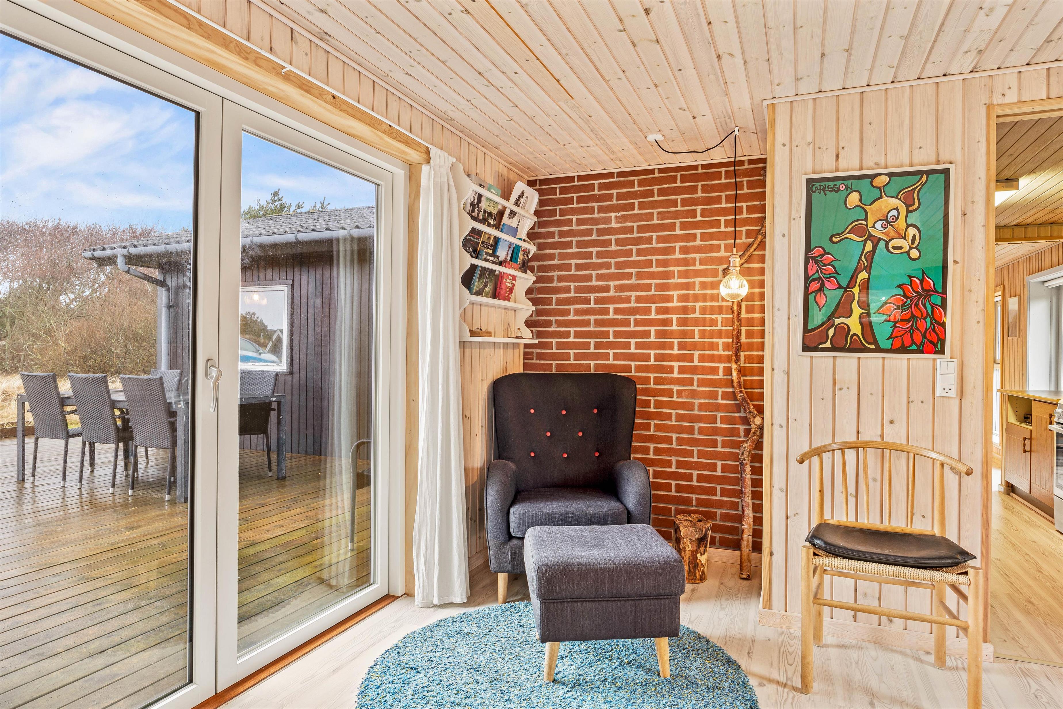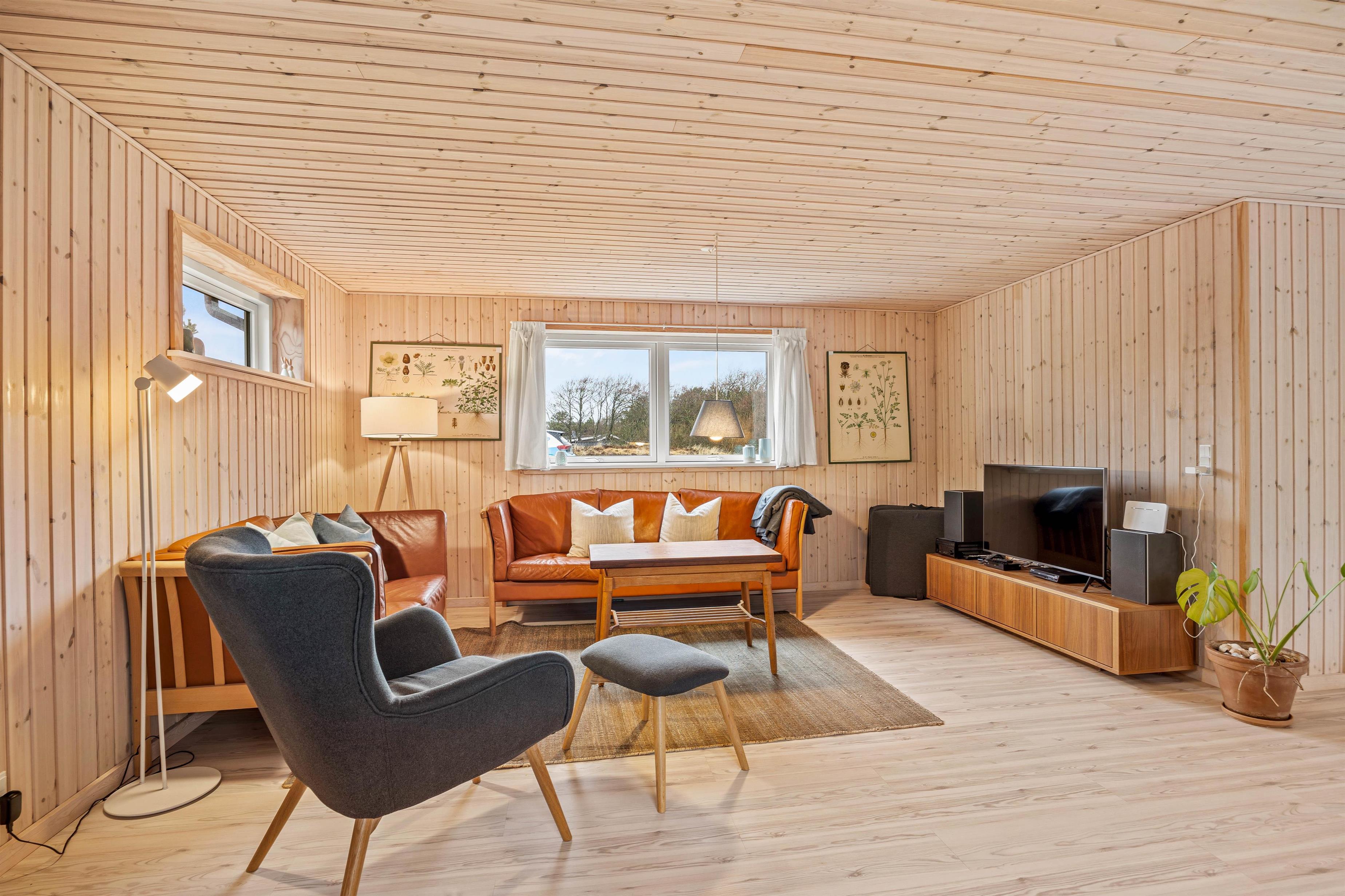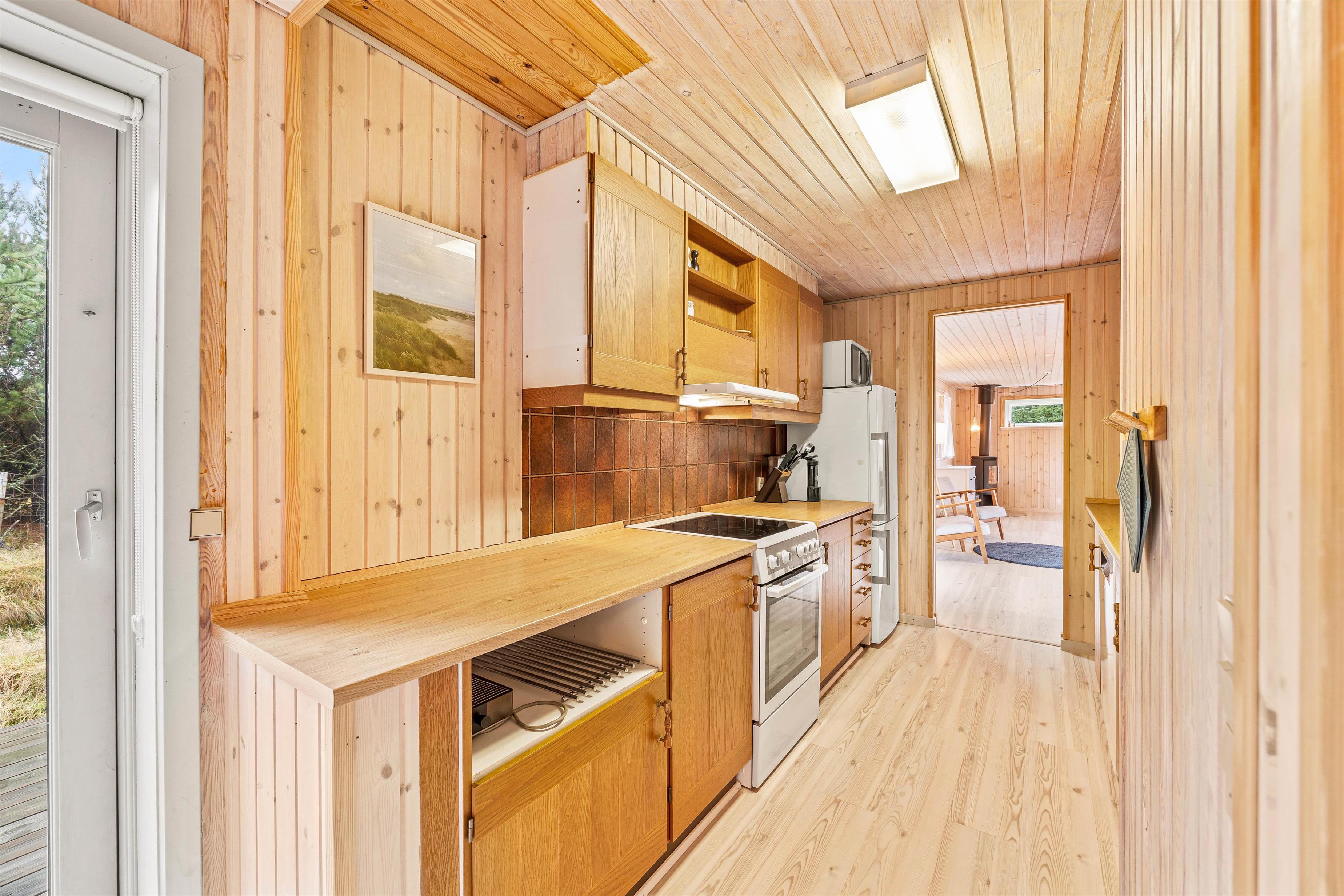 Feriehuset gennemgik i 2020 en delvis renovering, og består af en dejlig lys stue med god plads til hygge i de komfortable møbler, hvor I kan se en film sammen på TV imens brændeovnen runder hyggestemningen af med en god varme og den sagte knitren i baggrunden. Det velfungerende køkken støder op mod stuen, og har udover en opvaskemaskine og en separat 60 liters fryser, en tilhørende spisestue med plads til mange sjove timer med brætspil og samvær.