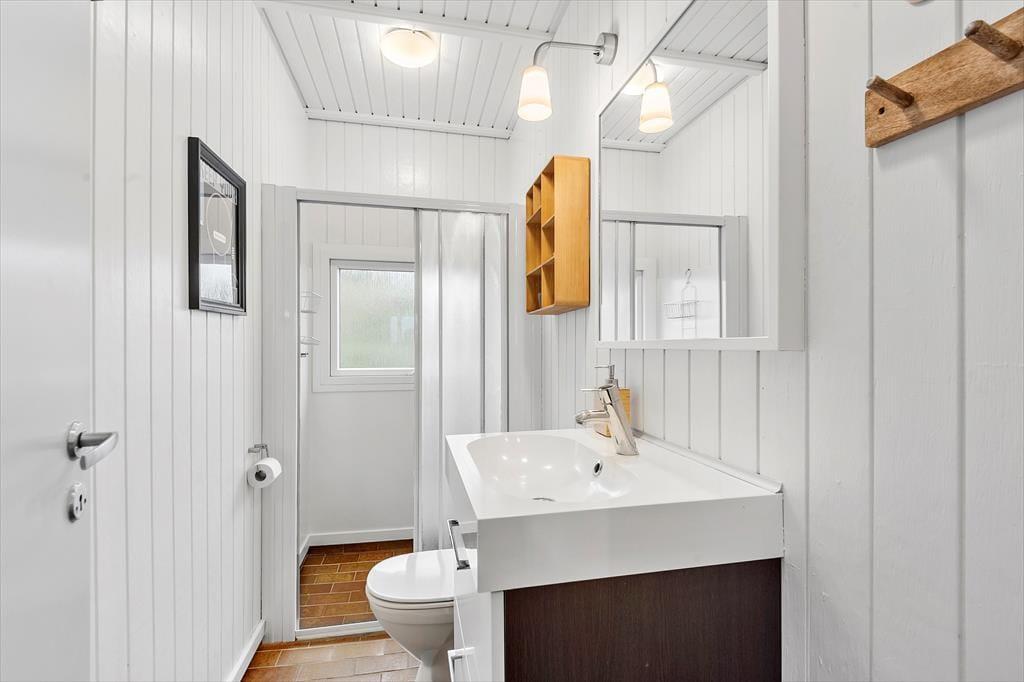 På den vestvendte terrasse kommer udsigten over Rindby virkelig til sin ret – ikke mindst når solen er på vej ned og begynder at farve himlen og sommerhusområdet i orangerøde nuancer. På klitgrunden står der også et bord-bænke-sæt, du kan sætte dig ved, og hvis du går efter læ, sol og mere ugenerede rammer, er den lidt mindre og ret afskærmede terrasse mod syd et godt bud. Havemøbler af god kvalitet sørger for, at du sidder behageligt, og den kort afstand til køkkenet gør det nemt at smutte ind for at hente mere kaffe eller isterninger til de sommerlige forfriskninger.