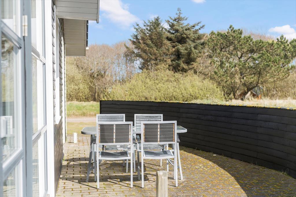 Solbadning, grill og krimilæsning under åben himmel kan nemt blive del af ferieprogrammet, når du holder til her på Strandgårdsvej. Rundt om huset venter der flere dejlige terrasser, så du kan sætte dig lige der, hvor du har lyst. Den vestvendte terrasse skærmes ikke bare af huset, men også af et plankeværk til to sider, så det er en ugeneret oase – selv på dage, hvor der er brise fra havet. Naturgrunden er stor, og ud mod vejen er der god plads til at parkere tæt ved huset.