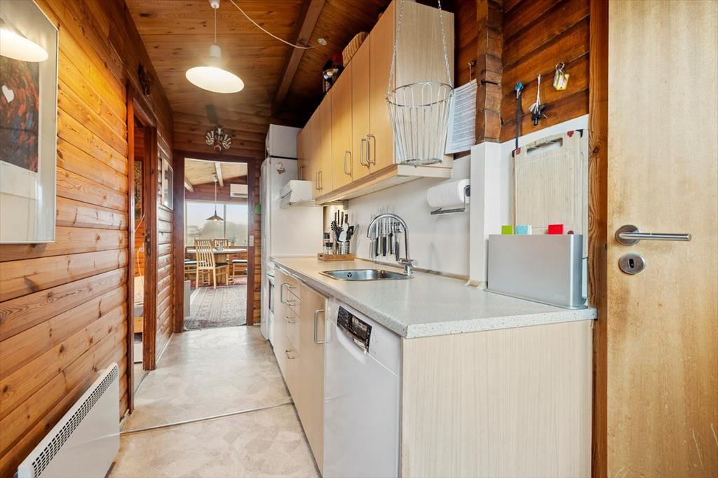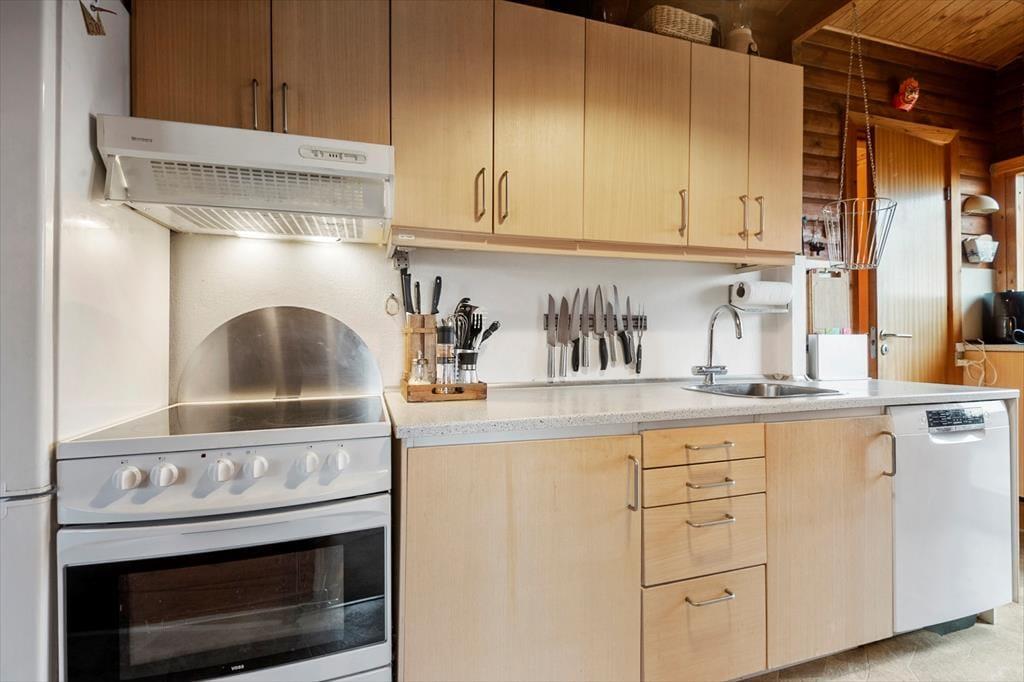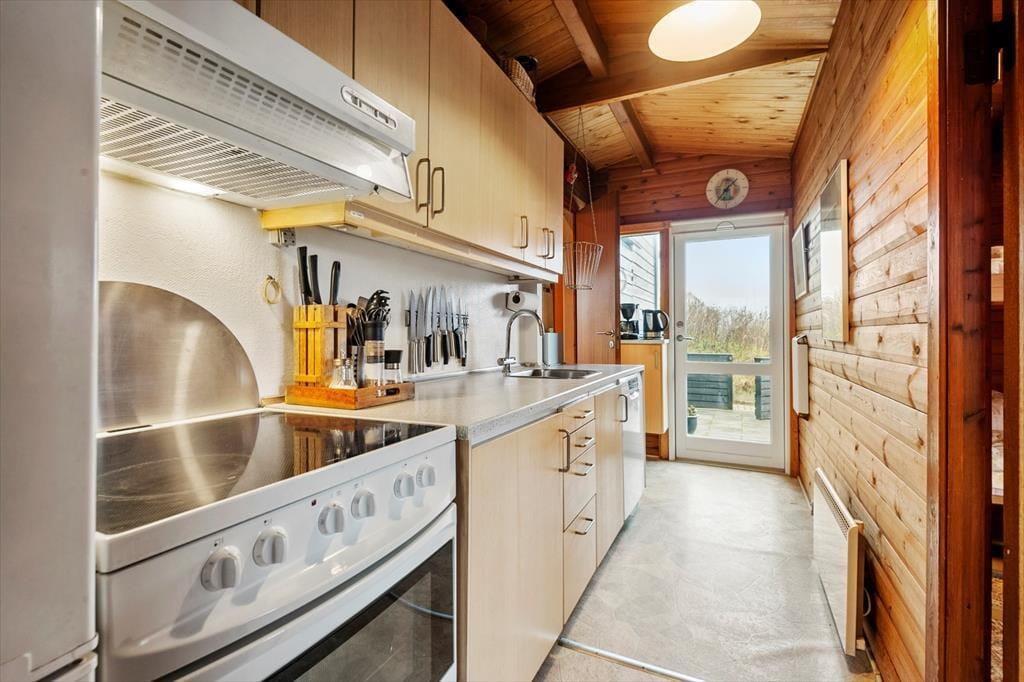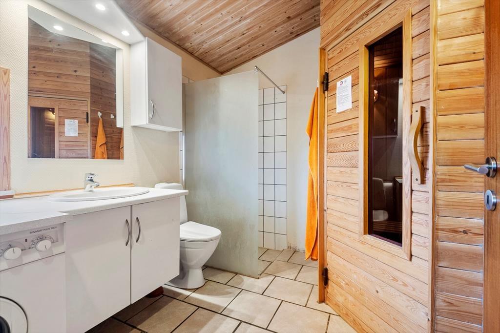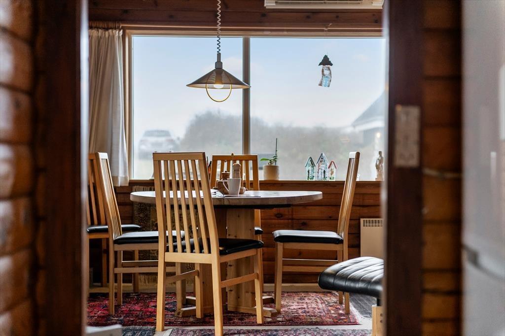 Inde i sommerhuset venter en varm og behagelig atmosfære, hvor man hurtigt falder til og mærker feriestemningen sænke sig. Opholdsrummet fungerer som et naturligt samlingspunkt, hvor der er plads til fælles måltider, små hverdagsglæder og hyggelige stunder efter en dag ude i naturen. Huset indbyder til ro, afslapning og simpel feriehygge – måske med en god bog, et brætspil eller en kop kaffe i sofaen. Når dagen har budt på vind i håret og sand mellem tæerne, er det ekstra skønt at nyde varmen i saunaen og lade kroppen falde helt til ro. Her er rammerne perfekte til en ferie, hvor man kommer ned i gear.
