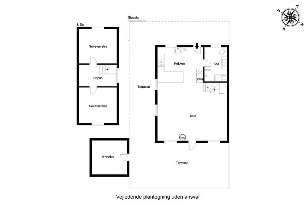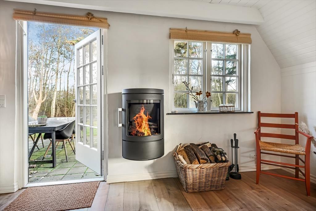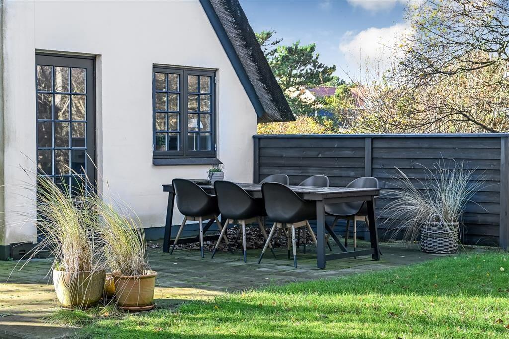 Bag huset finder du en dejlig, ugeneret terrasse, der nærmest fungerer som et privat frirum under åben himmel. Her kan du slå dig ned med en god bog, lade solen varme ansigtet eller nyde et måltid, mens fuglene kvidrer omkring dig. Den afskærmede placering gør det let at finde læ og ro, og stemningen er ideel til både stille stunder og hyggelige aftener i godt selskab. Forestil dig duften af nybrygget kaffe en tidlig morgen eller et glas vin i skumringen, mens dagen langsomt går på hæld. Haven omkring huset bidrager til den fredfyldte oplevelse og giver dig følelsen af at være tæt på naturen – uden at give afkald på komforten.
