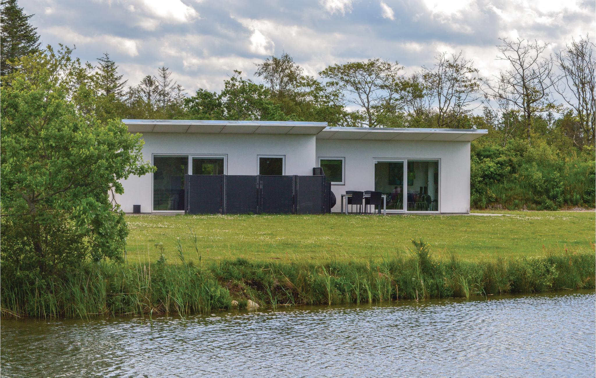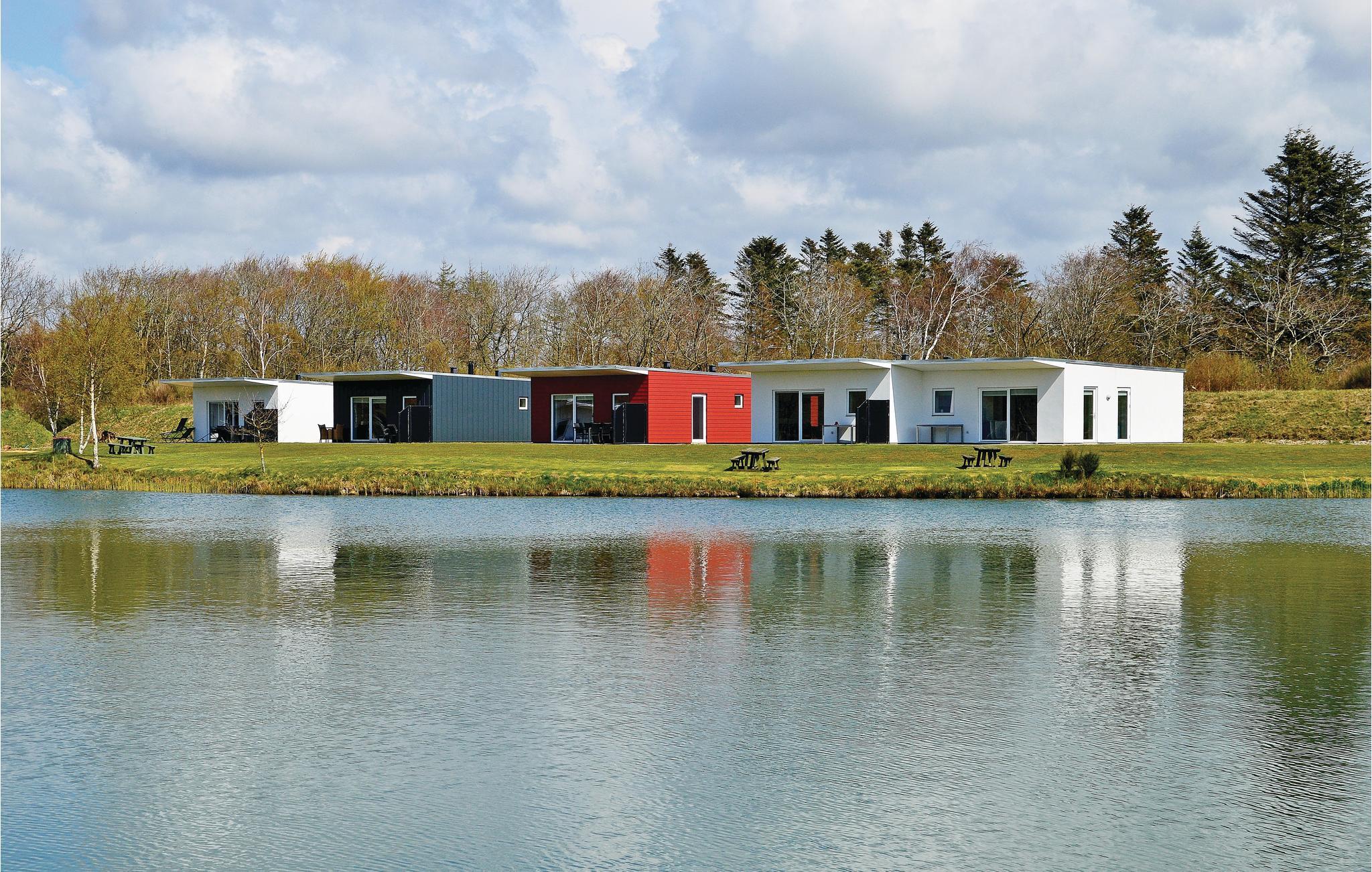 Dette hyggelige sommerhus ligger i Naturpark Vest i Hee med udsigt over en smuk fiskesø, der ligger lige ude foran terrassen.