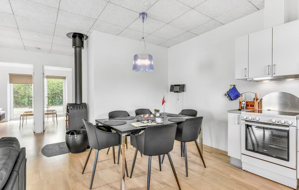 Huset er indrettet med 3 soveværelser samt badeværelse med bruser. Køkken og stue ligger i åben forbindelse med udgang til terrassen. Her findes både Apple-tv, Chromecast og Netflix, så I kommer ikke til at mangle underholdning om aftenen.