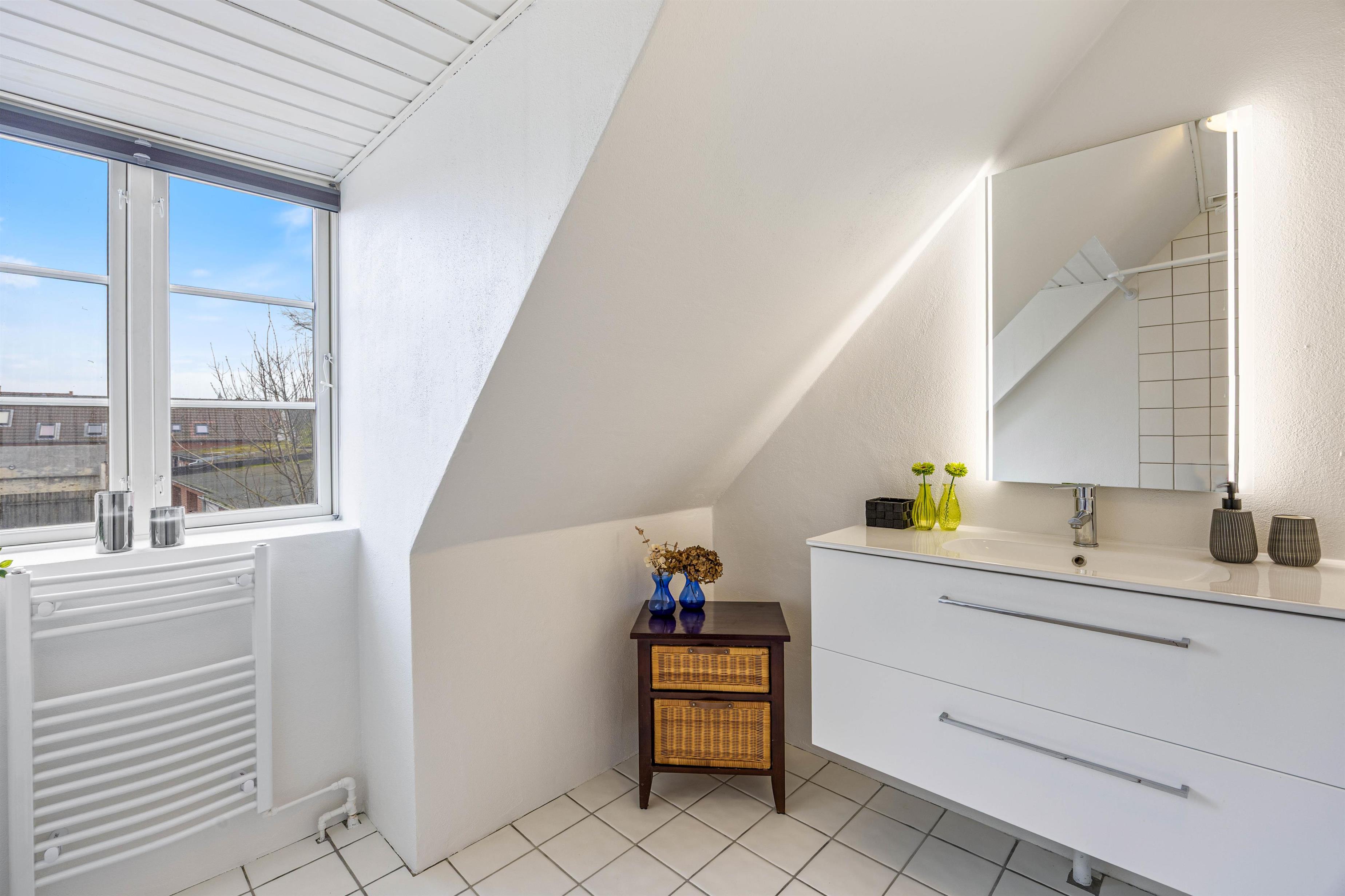 På 1. sal ligger to soveværelser med dobbeltsenge. Det er ideelt hvis I ønsker lidt privatliv eller blot vil slappe af efter en dag med oplevelser. Badeværelset ligger også på første sal, mens der i stueetagen er et gæstetoilet. Både badeværelset og gæstetoilettet sørger for at der ikke er kø om morgenen og derudover er de udstyret med gulvvarme, som sikrer varme fødder året rundt.
