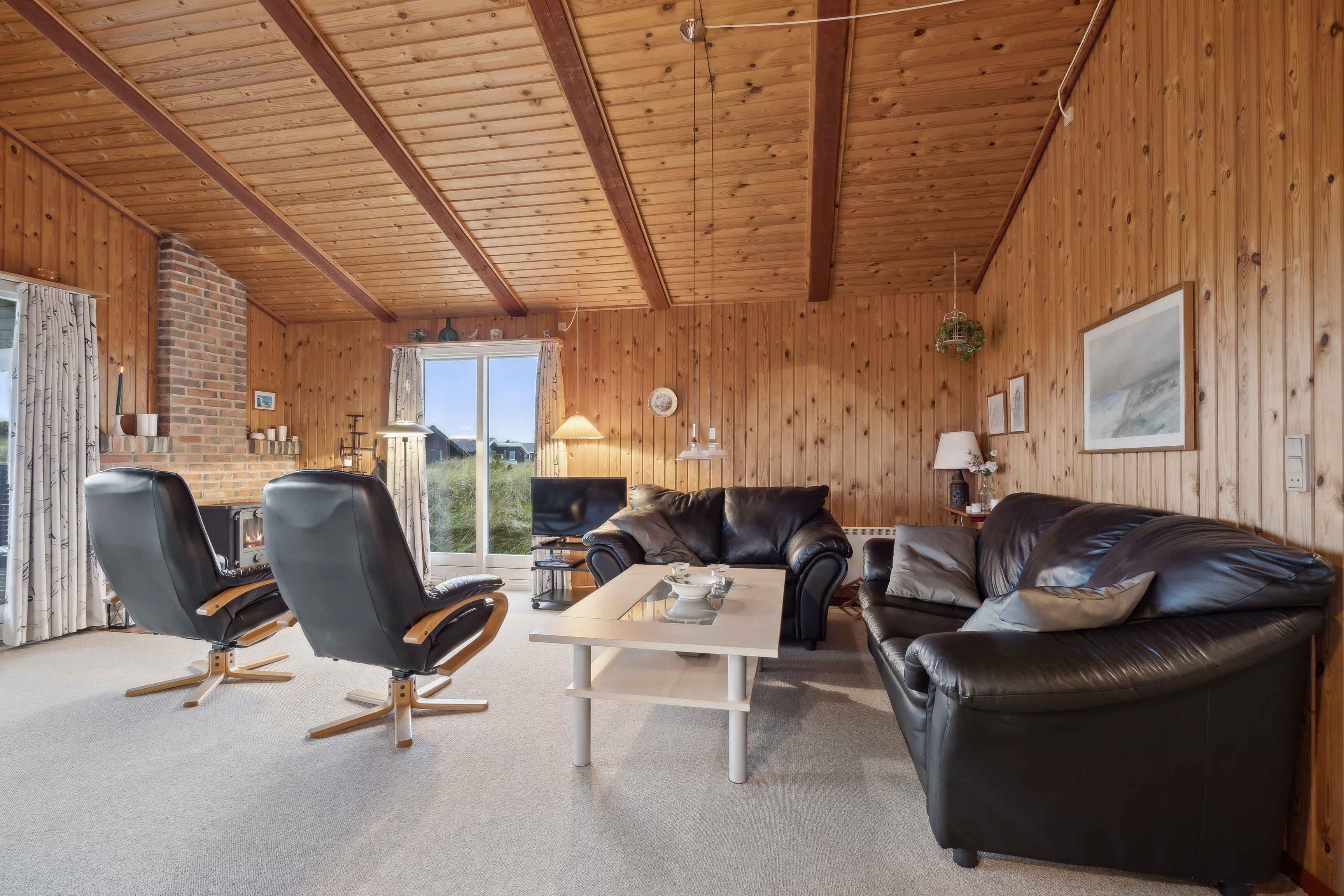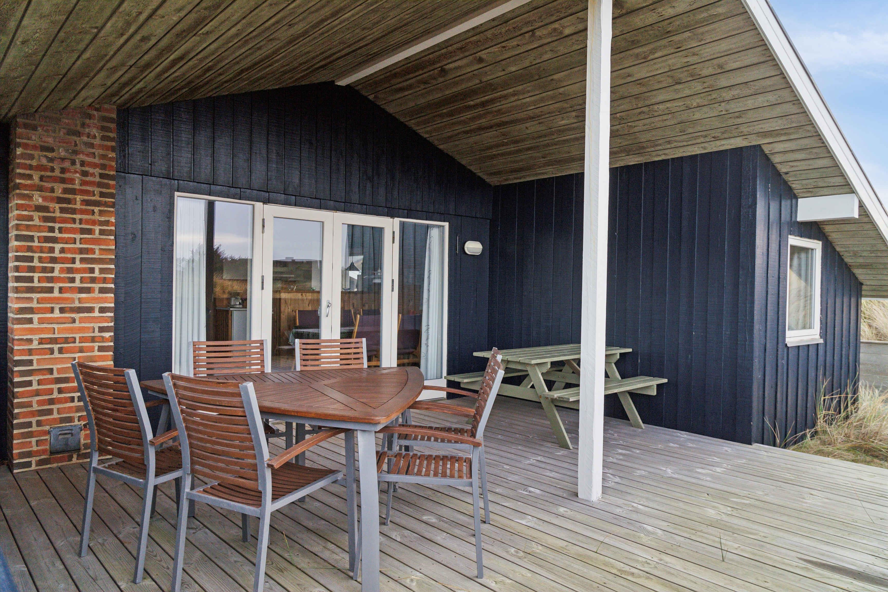 Hyggeligt sommerhus i Ringkøbing nær strand, klitter og aktiviteter med stor terrasse og sauna.