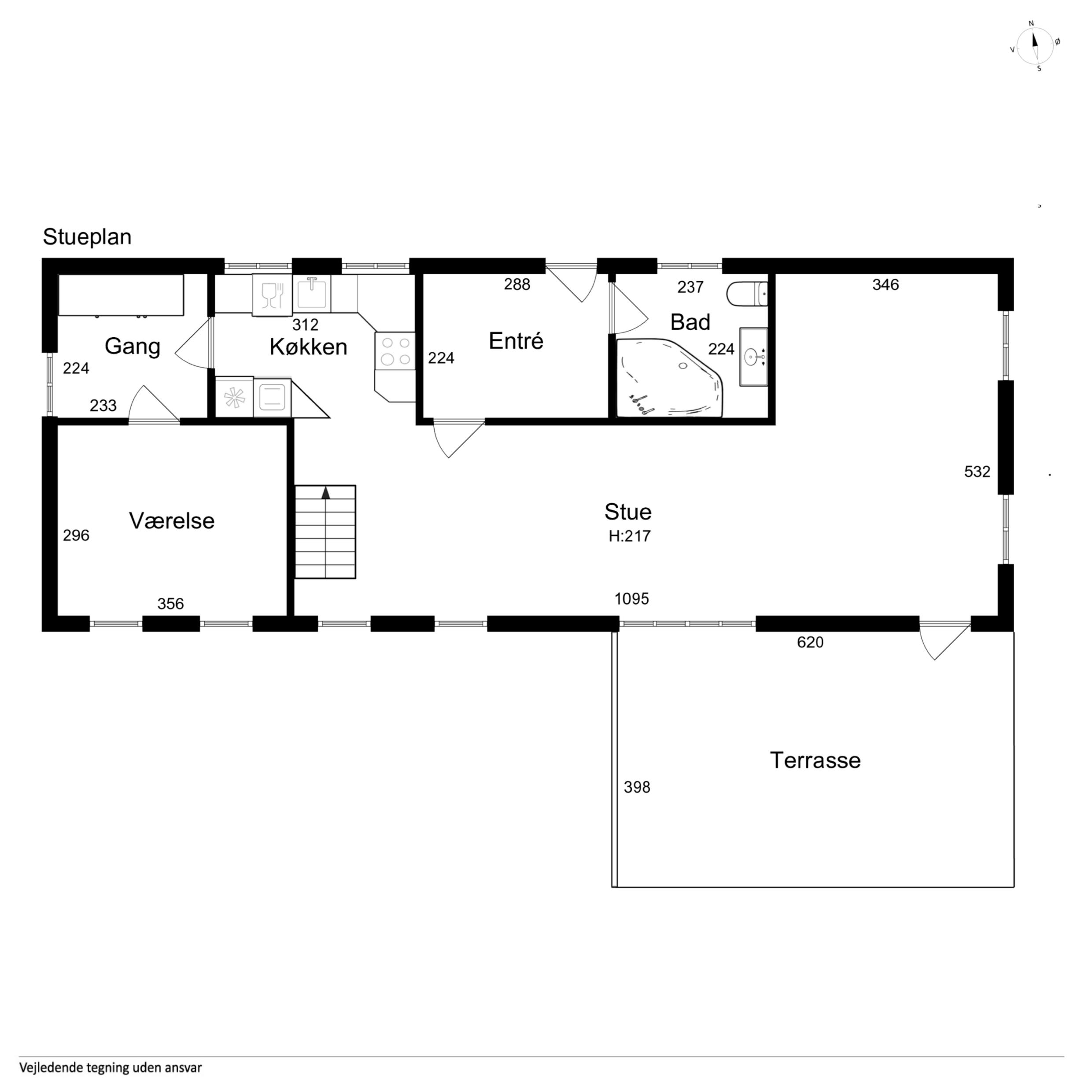 98 m² sommerhus med 3 soveværelser, 6 sengepladser, åbent køkken/alrum, lys stue med store vinduer, fint badeværelse, terrasse, nær strand, fjord, golf og naturstier.