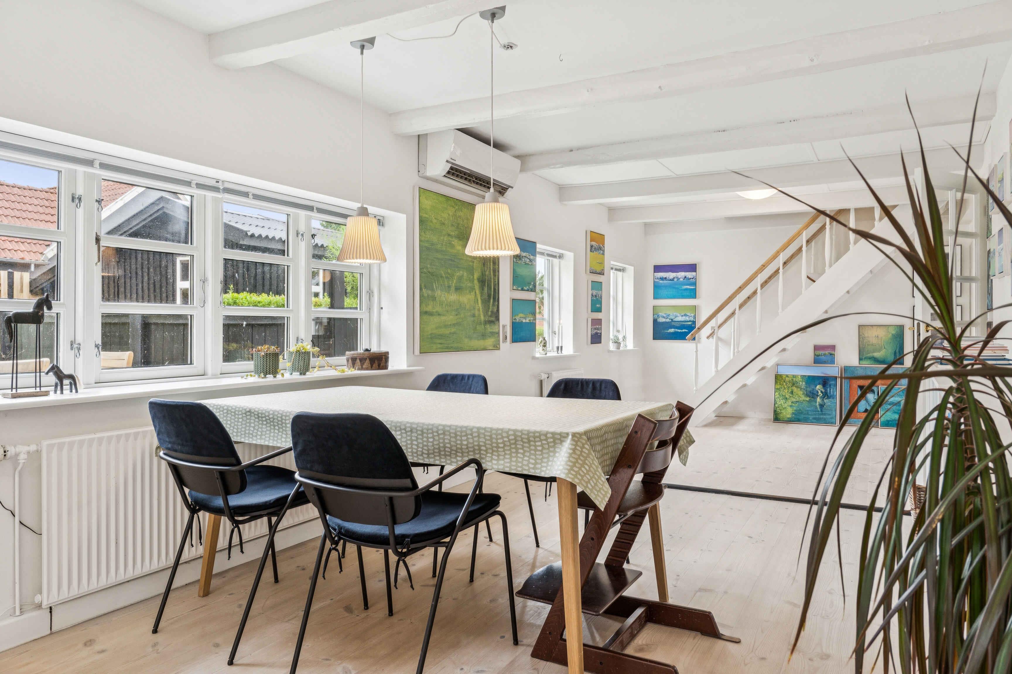 Dejligt sommerhus med plads til liv og ro. De lyse fællesrum fordeler sig over 98 kvadratmeter med et åbent køkken og et indbydende opholdsområde. Store vinduespartier skaber forbindelse til naturen, og terrassen forlænger sommerdage, mens I nyder frisk luft. Omgivelserne byder på Vesterhavets brede sandstrande, rolige fjordvande og fine klitlandskaber. Cykel- og vandrestier inviterer til opdagelser, mens windsurfing og kitesurfing lokker eventyrslystne. Nogle af Danmarks bedste golfbaner ligger i nærheden, og surfskoler tilbyder instruktion til både begyndere og øvede. Fjordsejlads og fuglekiggeri lokker naturelskere tæt på de karakteristiske marskarealer. Den charmerende købstad byder på brostensbelagte gader, hyggelige caféer og specialbutikker med lokalt håndværk. Markedsdage i havnen præsenterer friske råvarer, mens restauranter serverer lokale specialiteter. Kunstgallerier og små museer ligger inden for kort afstand, og events som musikfestivaler trækker gæster fra nær og fjern. Sommerhuset rummer tre hyggelige soveværelser med plads til seks personer. Den funktionelle planløsning sikrer privatliv og fleksibilitet for familier eller venner. Et veludstyret badeværelse og et ekstra gæstetoilet supplerer komforten, mens opbevaringspladsen holder orden på ferieturen. Obs, udlejes ikke til erhversmæssigt brug.