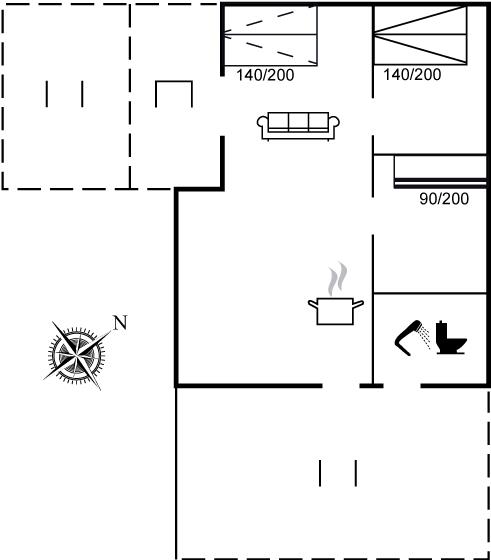 Der er i alt 2 soveværelser. Sovepladserne fordeler sig på: 2 sovepladser i dobbeltseng. 2 sovepladser i køjeseng. 2 sovepladser i sovesofa (dobbelt).2 af disse sovepladser befinder sig i stuen.