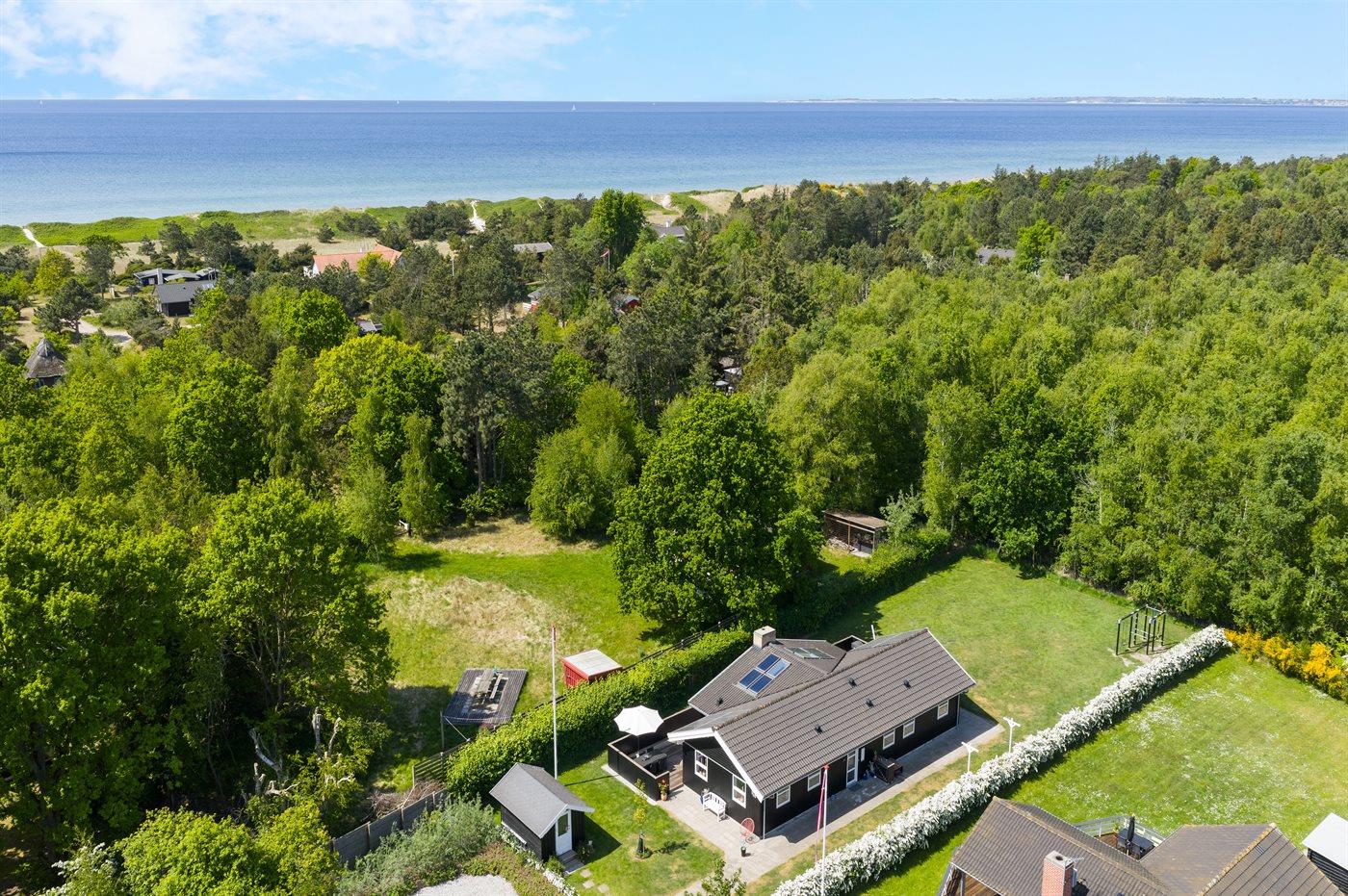 Ferieboligen er beliggende på en 1200 m² stor havegrund. Der er 280 m til havet. Nærmeste forretning er beliggende i en afstand af 3200 m. Til ferieboligen hører åbent terrasseareal. Gynge. Grill til rådighed. Parkering ved ferieboligen.