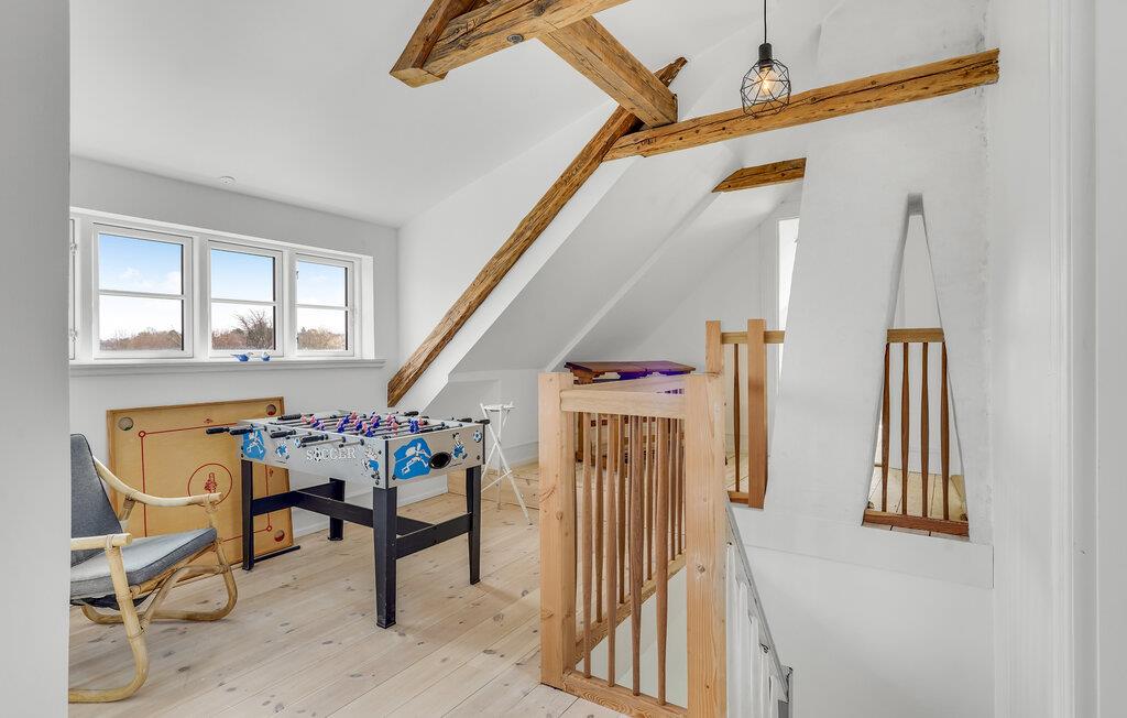 Velkommen til Langeland og denne dejlige plet, hvor alt ånder fred og idyl. I Nyby ligger dette dejlige feriehus, som er fordelt over to etager og består af hyggelige, åbne fællesarealer og en indretning, der er elegant og personlig. Giv jer god tid til at sammensætte aftenens menu efter en lang dag på farten, og sæt jer senere til rette med brætspil rundt om spisebordet. På en kold dag sørger brændeovnen for ekstra stemning og varme. Der er legeredskaber til børnene i haven og en overdækket terrasse, hvor I kan tænde bål i alle årets måneder. Sæt jer med en kop kaffe i solen, mens børnene løber og leger.