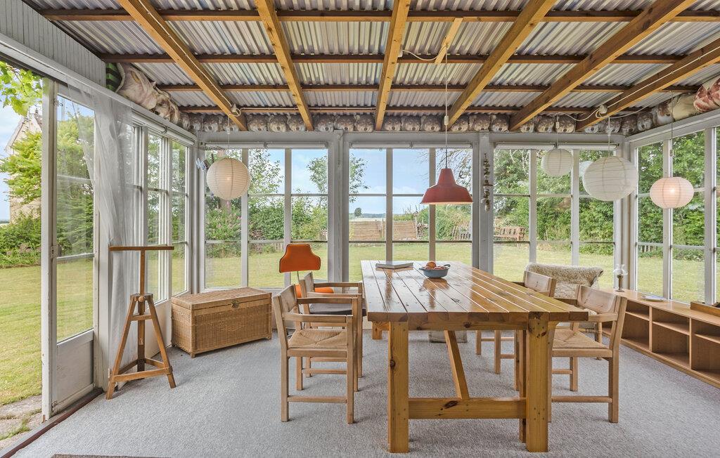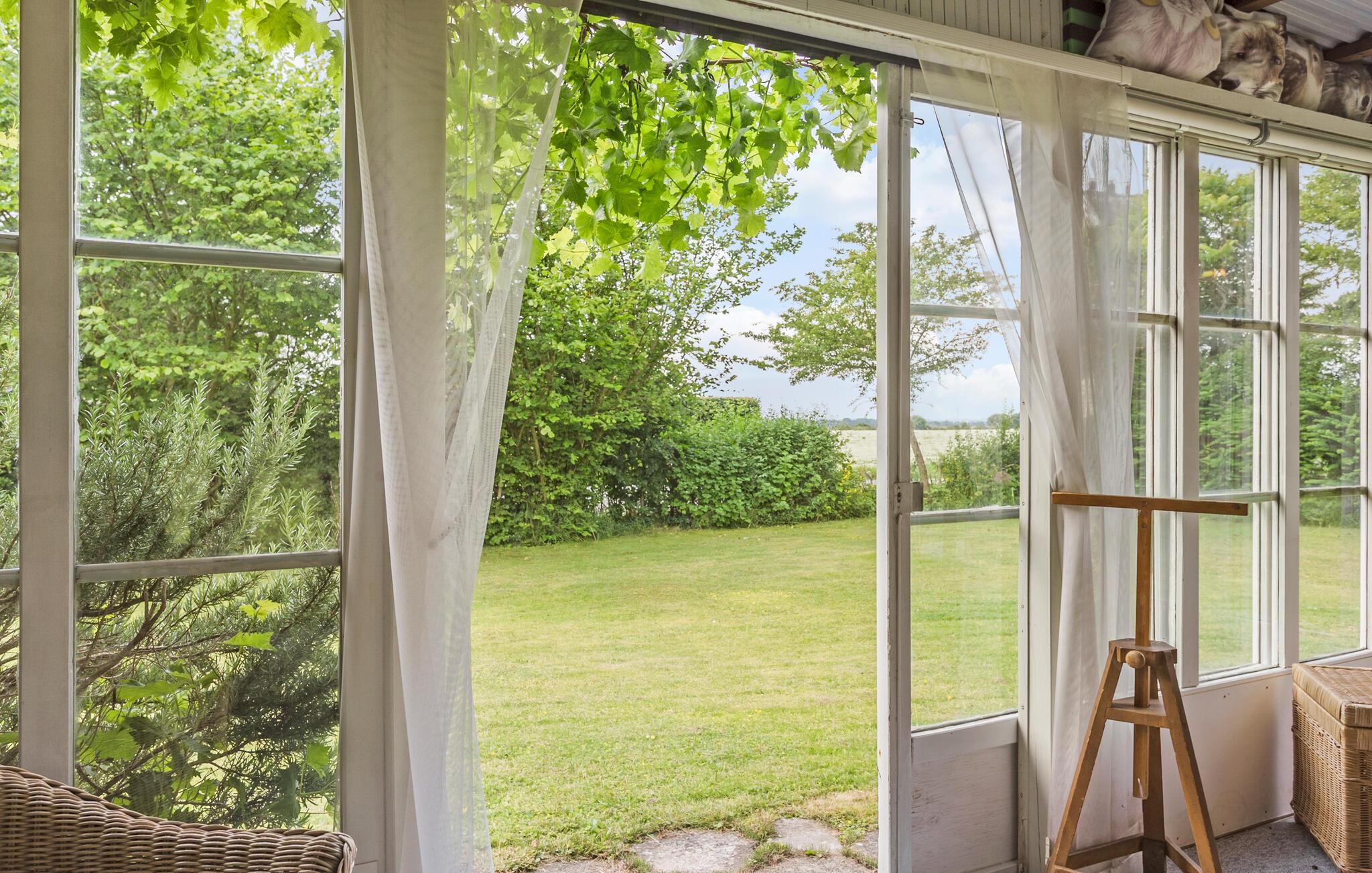 Start jeres morgener i udestuen med morgenmaden og kaffen på bordet. De store vinduespartier sikrer jer en vidunderlig udsigt over den store have. Herude kan I også slappe af, eller tænde op i grillen til dagens store middag.