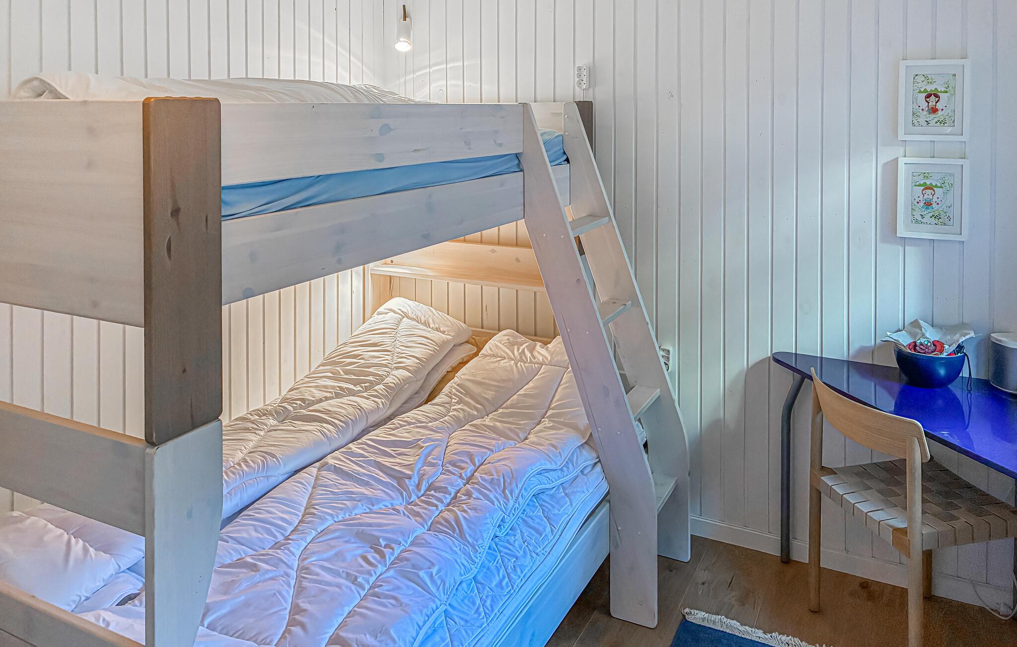 Mærk den hyggelige atmosfære i dette smukke hus med lyse træelementer og omhyggeligt udvalgte møbler. Find jer til rette i de komfortable sofaer, læn jer tilbage og læs i en af ??lænestolene, tilbered et lækkert måltid i det moderne køkken og nyd en afslappet morgenmad ved det rustikke træspisebord.