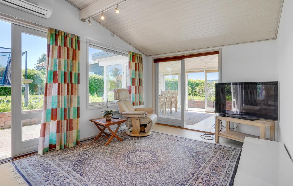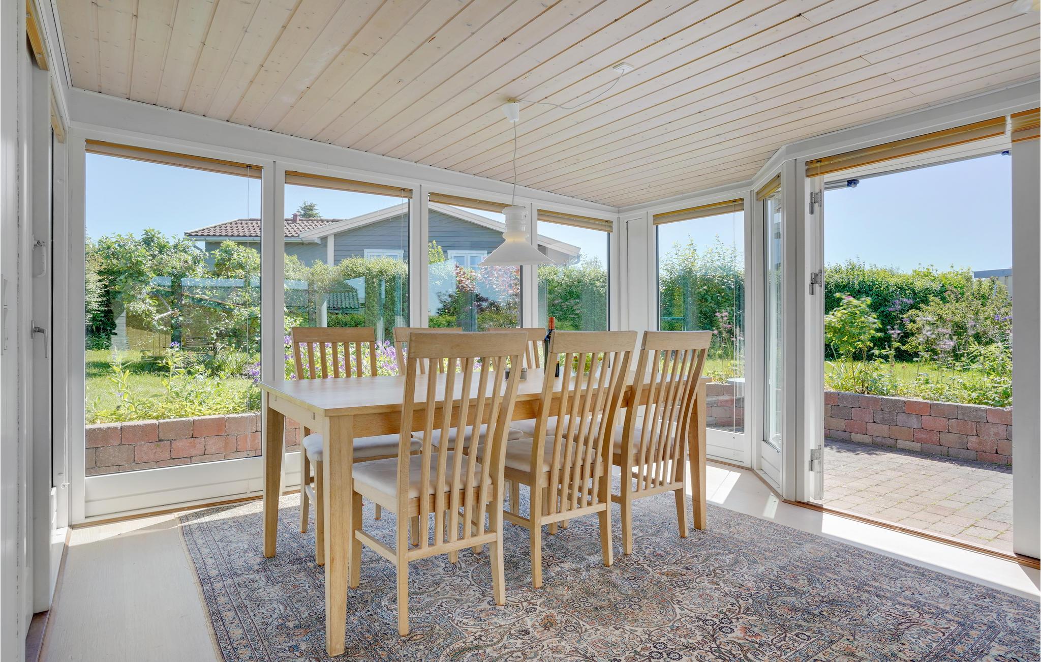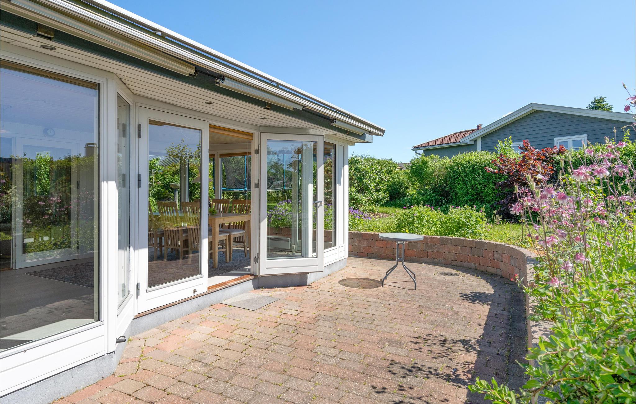 Når vejret er godt, kan I slappe af på husets åbne terrasse og samles til en grillmiddag, mens børnene hopper på trampolinen og løber i haven. Der er også et fællesareal, I kan benytte.