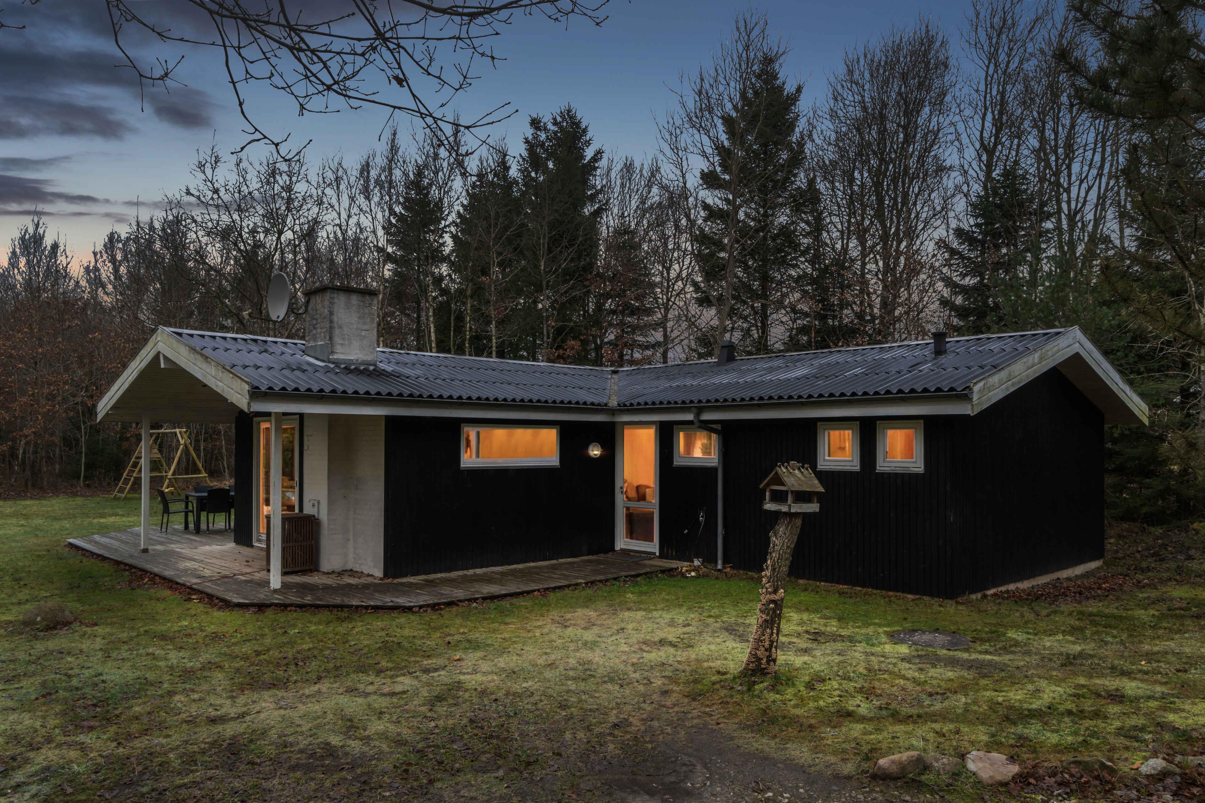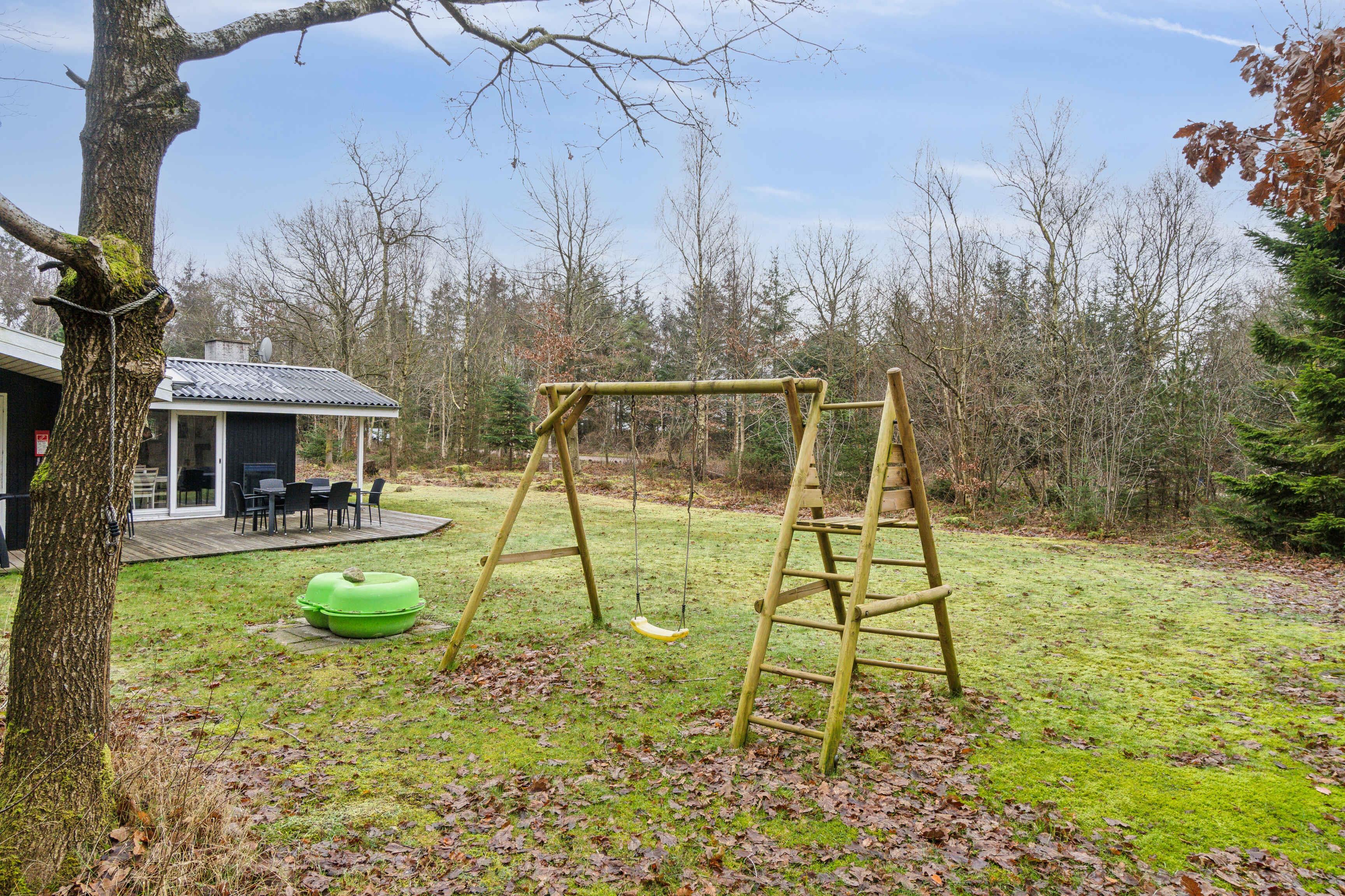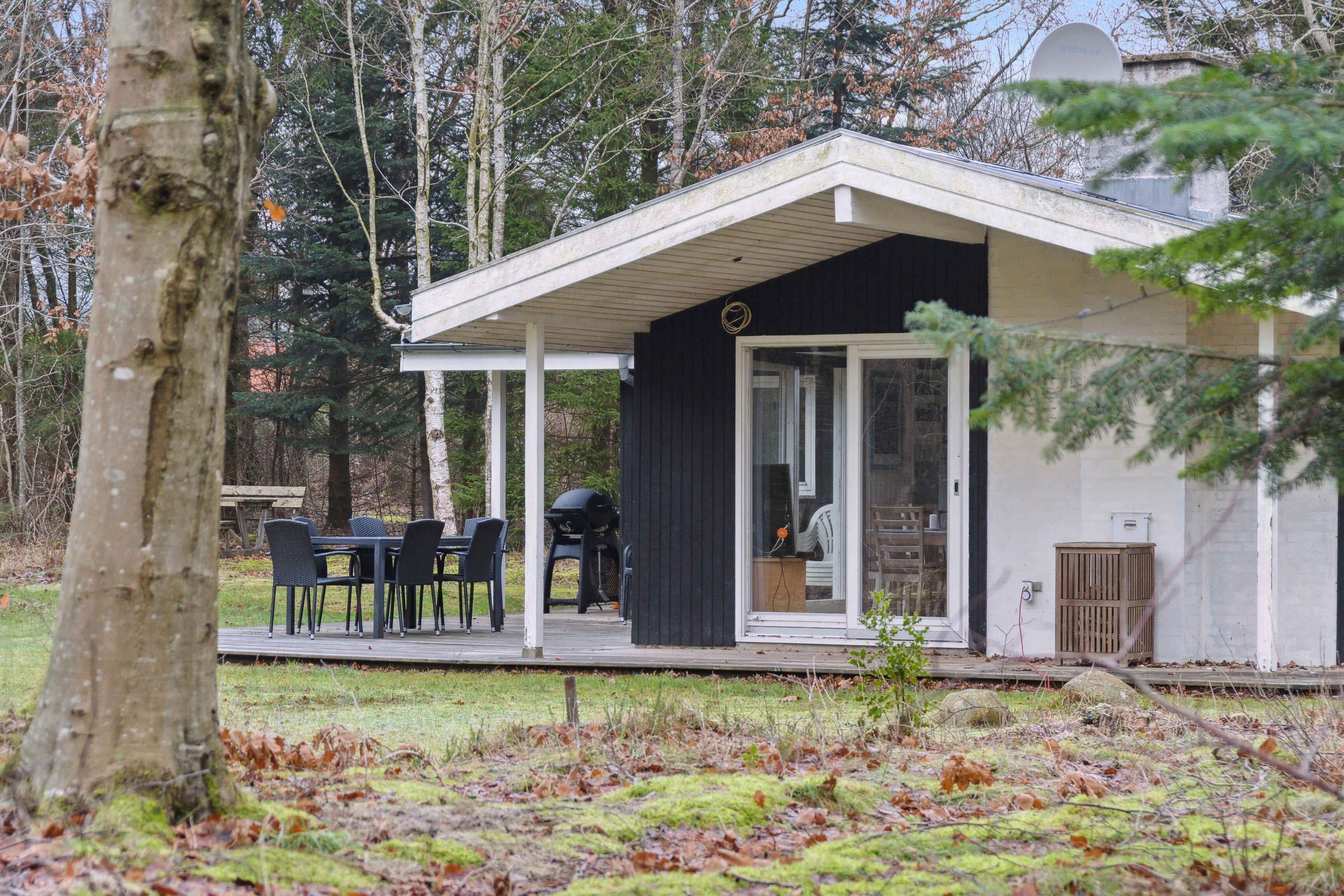 Hyggeligt sommerhus ved Limfjorden med stor naturgrund, terrasser og nærhed til strand og legeplads.