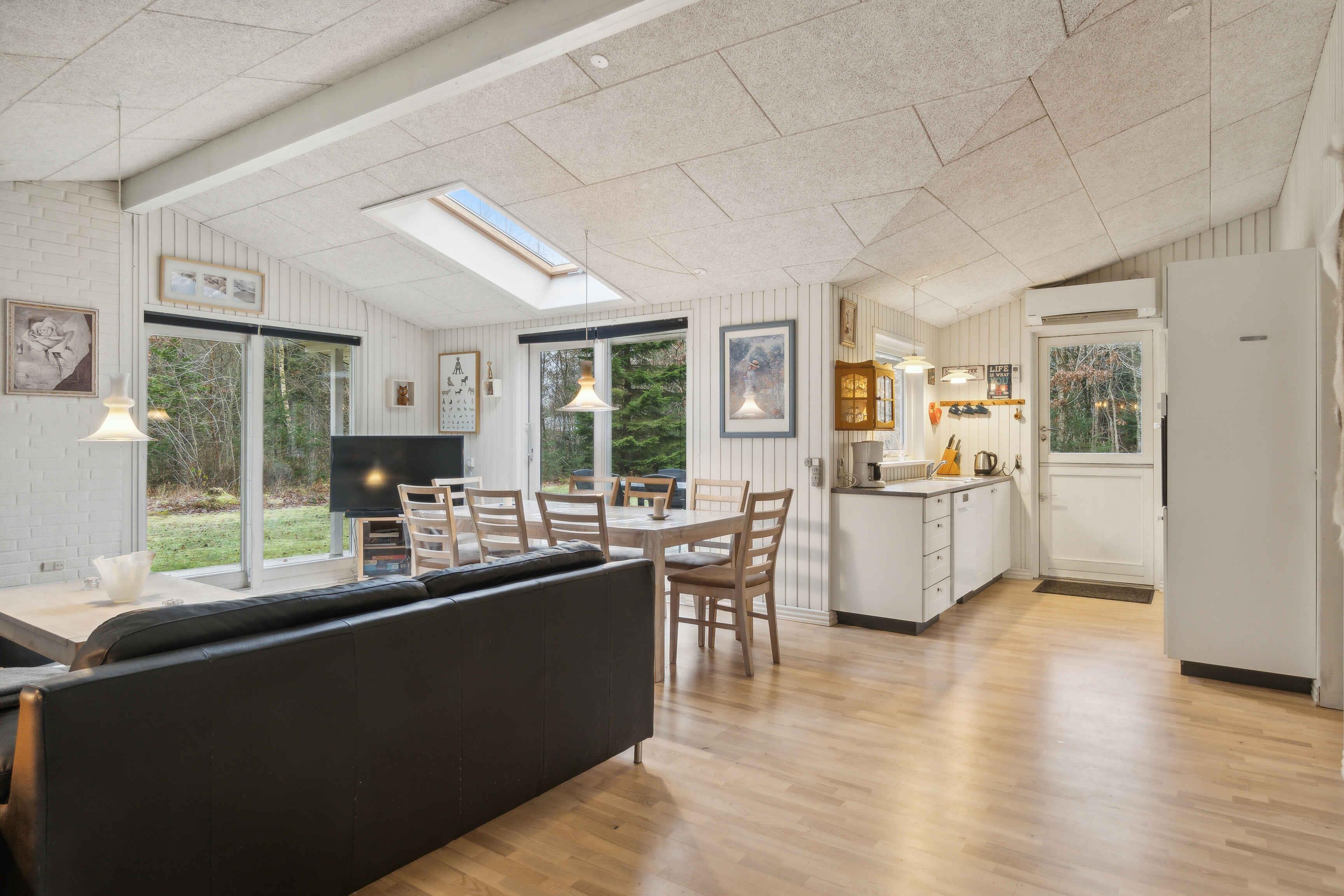 Dette charmerende og rummelige sommerhus byder på en fantastisk mulighed for at nyde naturen og afslapning i smukke omgivelser. Huset ligger på en stor naturgrund på 3500 m2, der omfatter en stor græsplæne og en skov, perfekt til både børn og voksne, der elsker udendørs aktiviteter. Med både åben og overdækket terrasser er der rig mulighed for at nyde de lange sommerdage og lune aftener uanset vejret. Sommerhuset er ideelt placeret tæt på vandet, og kun 800 meter fra stranden kan I hurtigt tage en forfriskende dukkert eller en afslappende gåtur langs kysten. For de aktive familiemedlemmer er der en stor fælles legeplads med boldbaner lige i nærheden, hvor børnene kan lege og spille fodbold. Indendørs finder I moderne bekvemmeligheder som en effektiv luft/luft varmepumpe og solenergi, hvilket gør huset både økonomisk og miljøvenligt. Den hyggelige brændeovn skaber en dejlig atmosfære og varme på kølige aftener. Sommerhuset har plads til 8 personer, hvilket gør det ideelt til både små og store familier eller vennegrupper, der ønsker at tilbringe kvalitetstid sammen. Dette sommerhus er det perfekte valg for dem, der ønsker at kombinere komfort med naturskønne omgivelser og et væld af aktivitetsmuligheder.
