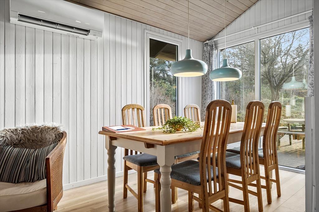 Sommerhuset ligger på en stor naturgrund, der skaber fred og privatliv takket være hybenbuskene og de høje træer, som skærmer af mod naboer og forbipasserende. Her er der plads til, at børnene kan lege og udforske, mens de voksne slapper af i en liggestol eller nyder måltider på terrassen. Når aftenen falder på, kan I grille og se solen gå ned over landskabet. Med kun 600 meter til Vesterhavet kan du starte dagen med en forfriskende dukkert eller afslutte den med en rolig gåtur langs kysten, mens den salte havluft fylder dine sanser med ro og velvære.