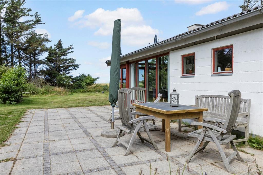Der er lagt op til en rigtig god ferie på Bævervej 22 i Rubjerg. Dette sommerhus ligger roligt placeret lige ud til et fredet areal, og lige meget om I slapper af i udestuen, spiller petanque eller soler jer på terrassen, har I et dejligt kig til den fri natur.