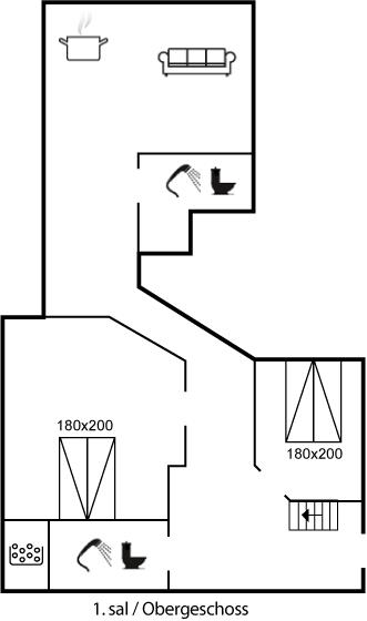Der er i alt 2 soveværelser. Sovepladserne fordeler sig på: 4 sovepladser i dobbeltsenge. 2 sovepladser i enkeltsenge. 2 af disse sovepladser befinder sig på husets hems. Derudover er der 1 stk. barneseng.