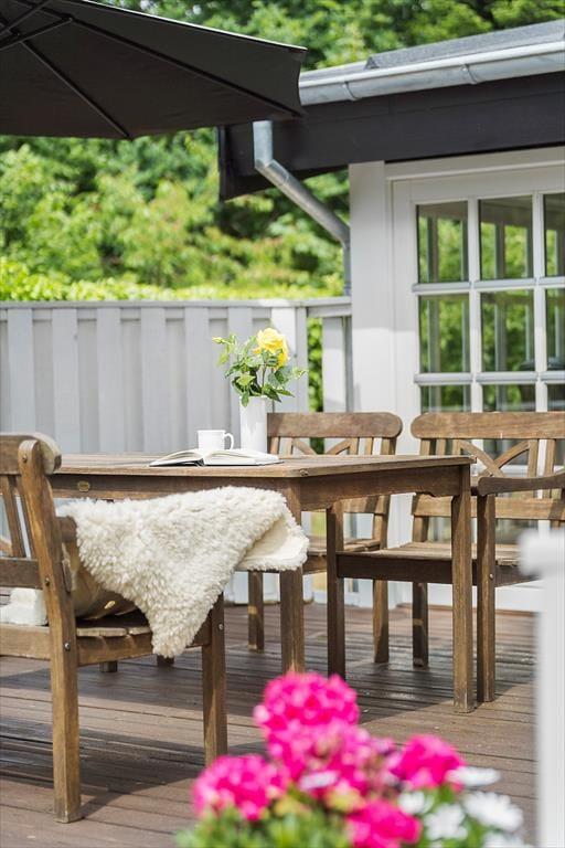 Udenfor kan I nyde den flotte, velholdte have og ikke mindst de to helt fantastiske terrasser, hvor I kan nyde både morgen og aftensolen. Derudover kan I også glæde jer over en overdækket terrasse, der forlænger sommeraftenerne til langt ud på aftenen. I den skønne have er der også masser af plads til leg og afslapning.