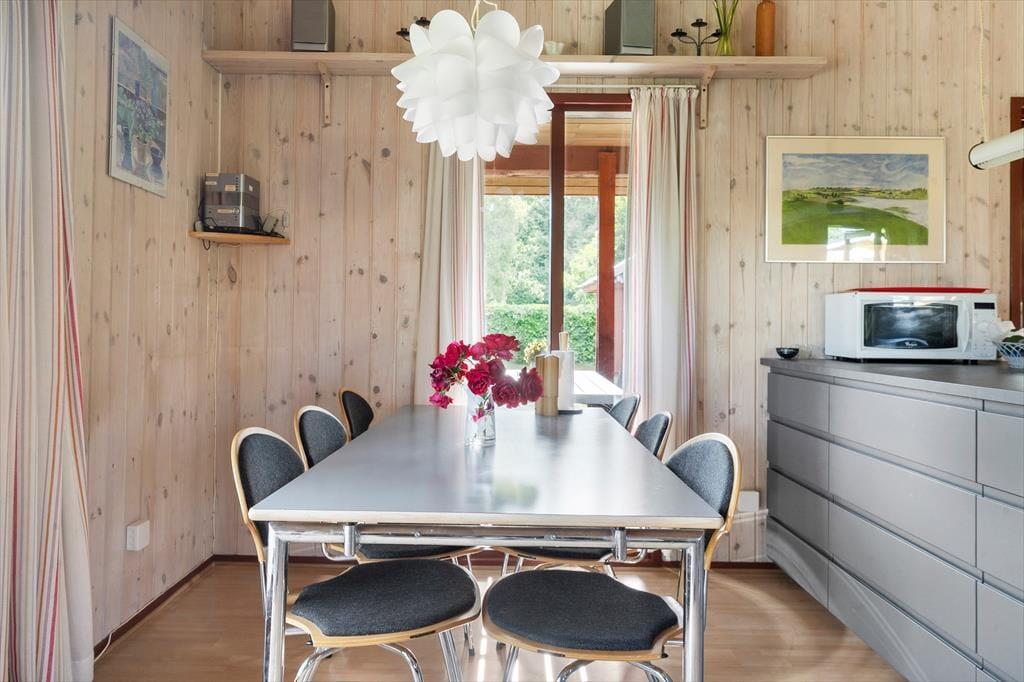 I dette hyggelige træsommerhus ved Saksild Strand bliver du mødt af en lys og venlig atmosfære, hvor der er god plads til hele familien. Stuen ligger i åben forbindelse med køkkenet, så der er mulighed for at være sammen, uanset om nogen laver mad, spiller spil eller slapper af. Det er et hus, der indbyder til nærvær og samvær, og hvor du hurtigt vil føle dig hjemme. Her kan du nyde roen efter en dag på stranden, eller samle familien til hyggelige måltider og lange aftener i stuen.