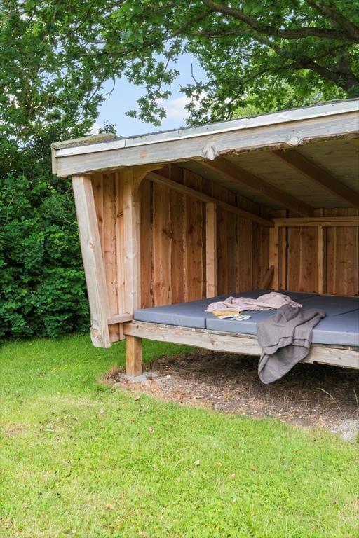 Der er mulighed for hygge og overnatning i det shelter der er i haven.