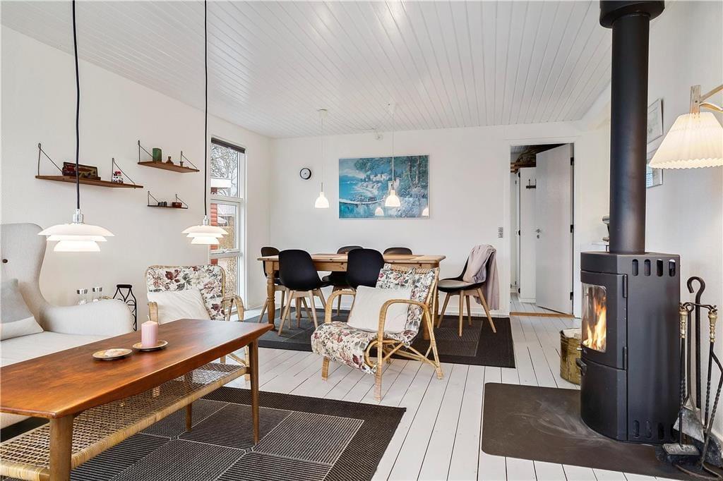 Stuen oser af hygge og nærvær, og så indeholder den også et spiseområde, hvor familien kan samles om de daglige måltider. I stuen er der mulighed for, at I som familie kan hygge foran brændeovnen eller Tv’et.