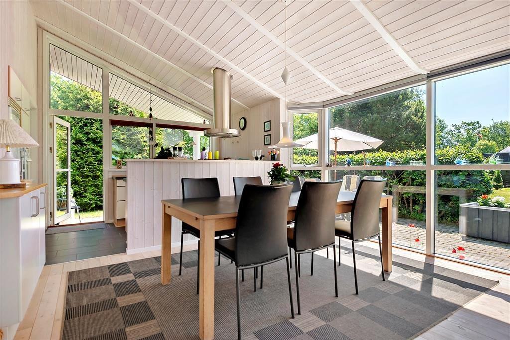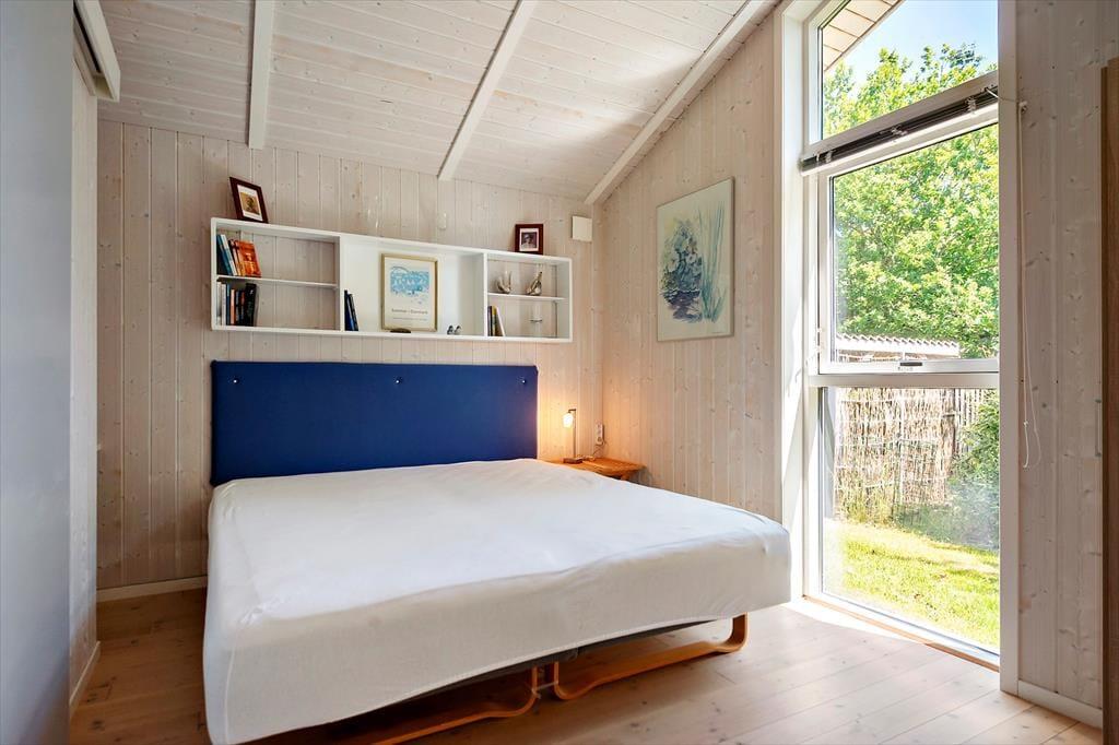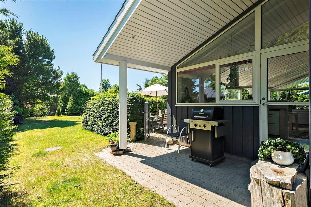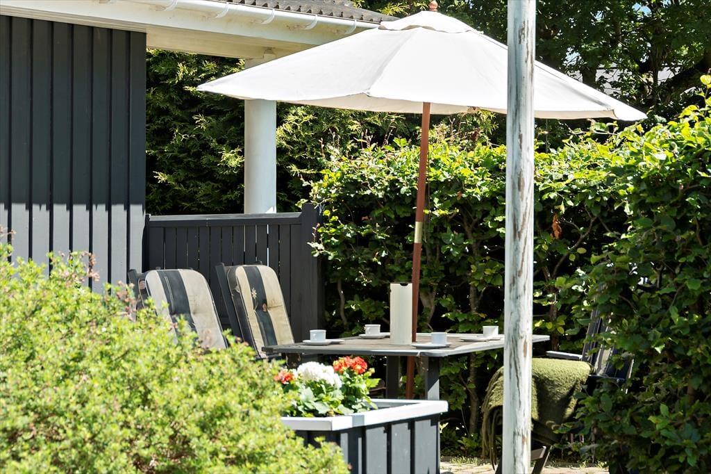 Sommerhusets have er som skabt til det stille udeliv – et fredeligt sted, hvor du kan finde ro mellem træerne og lade tankerne drive afsted. Her er plads til at brede sig ud med tæpper på græsset, tage skoene af og mærke underlaget, som stadig er lunt fra solen. På terrassen kan du tilberede aftensmaden i det fri, mens vinden rasler sagte i løvet, og duften af grill breder sig i haven. Måltiderne spises i det fri, ofte med lidt sand mellem tæerne og salt i håret, og bagefter trækker dagen ud med kortspil, lidt vin i glasset og fuglesang som baggrund. Når du har lyst til en dukkert, er stranden aldrig langt væk. Du følger blot den lille vej gennem området, og snart står du med fødderne i sandet og havet foran dig – klart, forfriskende og åbent.