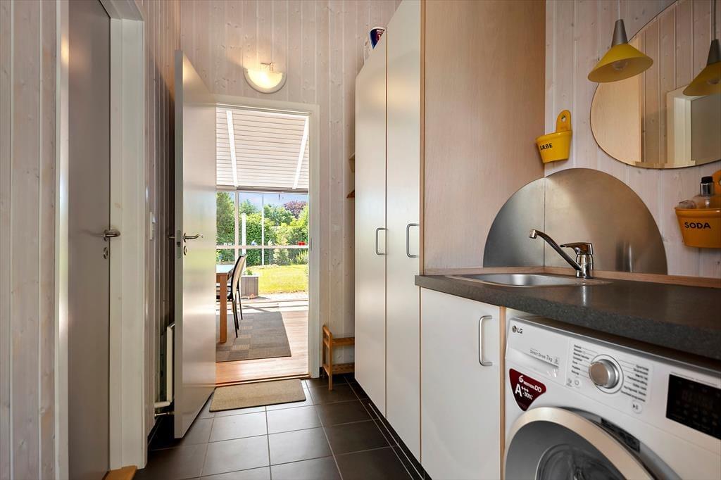 Indenfor venter en lys og indbydende atmosfære, der kalder på afslapning og hyggeligt samvær. Det åbne opholdsrum er sommerhusets hjerte – et sted, hvor dagen begynder med duften af friskbrygget kaffe og morgenmad ved langbordet, mens solen titter ind gennem vinduerne. Her samles I om måltiderne, lægger puslespil på bordet, læser højt fra en bog eller falder hen i samtaler, der får lov til at vare lidt længere end derhjemme. Sofaen byder sig til, når I vender hjem efter en dag ved stranden, og køkkenet er en naturlig del af rummet – ikke bare til madlavning, men som en del af selve ferielivet. Alt er gennemført uden at være prangende, og stemningen er præget af nærhed, varme og den ro, der kun findes i et ægte sommerhus.
