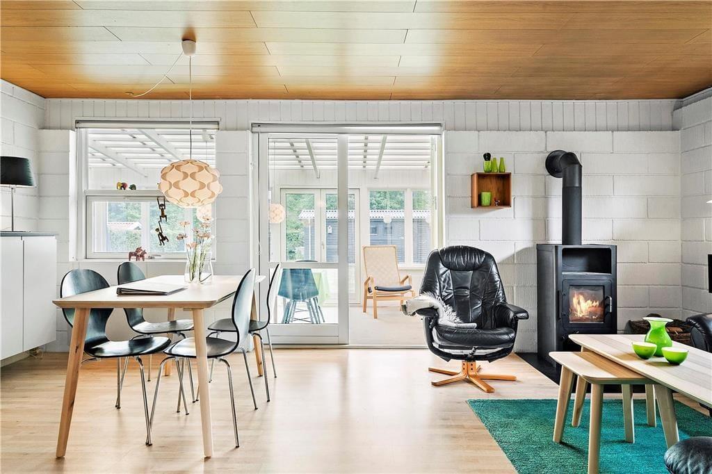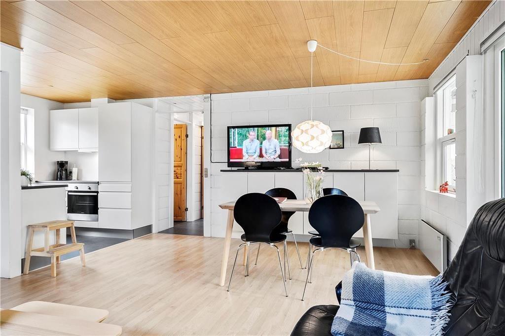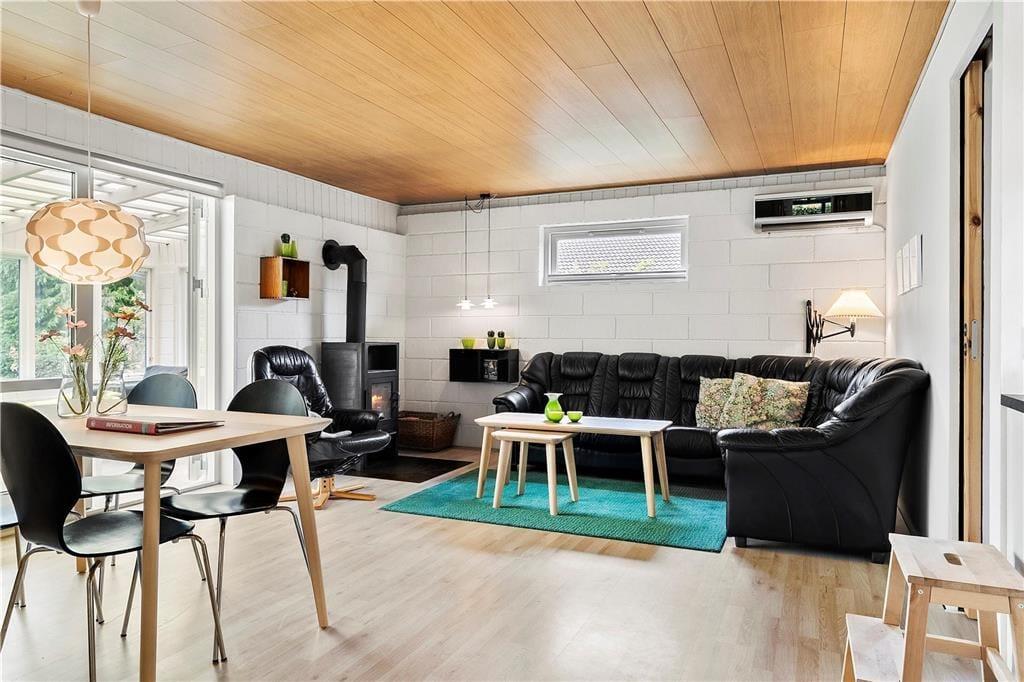 Sommerhuset er løbende renoveret siden 2012 og har stor dejlig opholdsstue med nye gulve og med brændeovn i forbindelse med helt nyt køkken. Mod sydvest går man ud i den store udestue ud mod haven. Her er masser af lys og man vil helt sikkert opholde sig her i mange timer ved måltider og tid til hygge med spil med familien.