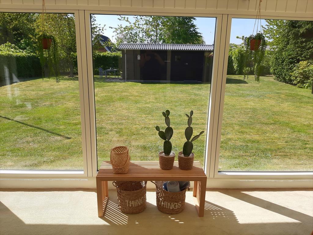 Flere hyggekroge i den store delvis lukkede have. Desuden dejlig overdækket terrasse i den tidligere carport. God plads til udfoldelse med bl.a. bålplads og fodboldmål.