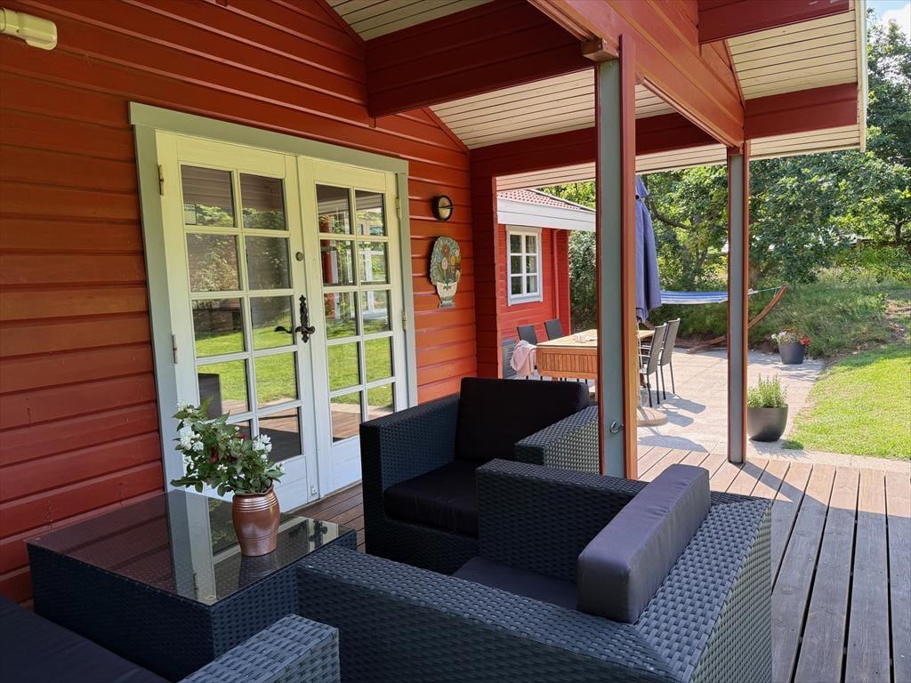 Når solen skinner, og duften af grill blander sig med lyden af blade i vinden, er det oplagt at rykke livet ud under åben himmel. Sommerhusets store naturgrund giver masser af plads til leg, afslapning og små stunder med fuglesang i baggrunden. Du finder både åbne og overdækkede terrasser, hvor du kan finde læ og nyde solen fra morgen til aften. Her er det nemt at finde sit yndlingsspot – måske med en god bog, måske med et koldt glas hvidvin. Og med kun en kort gåtur til stranden er det lige så nemt at tage et håndklæde over skulderen og gå mod havet for en dukkert, et spil strandtennis eller bare en pause med tæerne i sandet. Livet leves i det fri – i det tempo, du har lyst til.