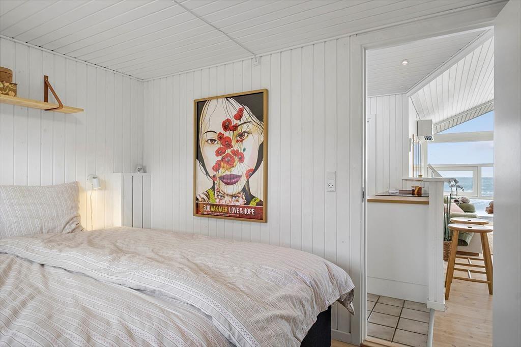 Når du bor i første række til havet, bliver udelivet en naturlig forlængelse af ferien. Den store terrasse åbner sig direkte mod panorama udsigten og giver plads til både rolige morgener og lange aftener. Her kan du nyde kaffen, mens havet vågner, og samle jer omkring gasgrillen, når dagen går på hæld. Havets bevægelse, lyset og den friske luft skaber en stemning, der indbyder til at blive siddende lidt længere. Stranden ligger lige foran sommerhuset og gør det let at tage en spontan dukkert, gå en tur langs vandkanten eller bare nyde følelsen af sand mellem tæern