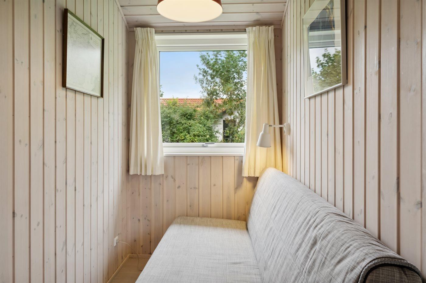 Der er i alt 2 soveværelser. Sovepladserne fordeler sig på: 2 sovepladser i enkeltsenge. 2 sovepladser i sovesofa (dobbelt). 2 sovepladser i alkove. 2 af disse sovepladser befinder sig i stuen. Derudover er der 2 stk. barnesenge.