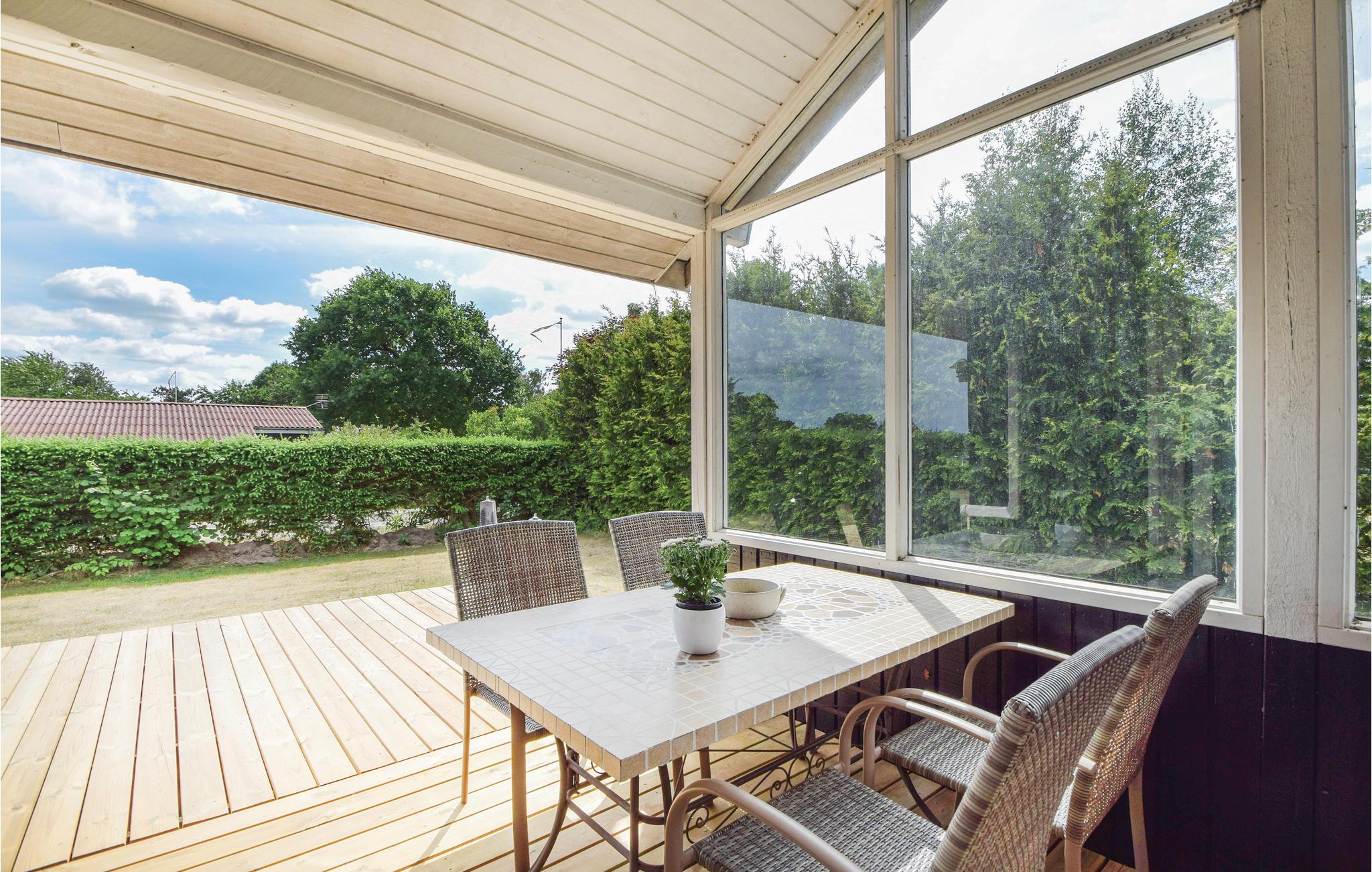 Flot og velbeliggende feriehus, der ligger på en stille sommerhusvej på en aflukket have-/naturgrund med buske og træer. Huset er indbydende og pænt møbleret og fremtræder lyst og venligt overalt. Den funktionelle køkkenafdeling ligger i åben forbindelse med stuen og herfra har I udgang til en skøn solgård og terrassen. Huset ligger centralt for udflugter til mange attraktioner i Østjylland. Storbylivet kan I opleve ved at tage en tur til Aarhus.