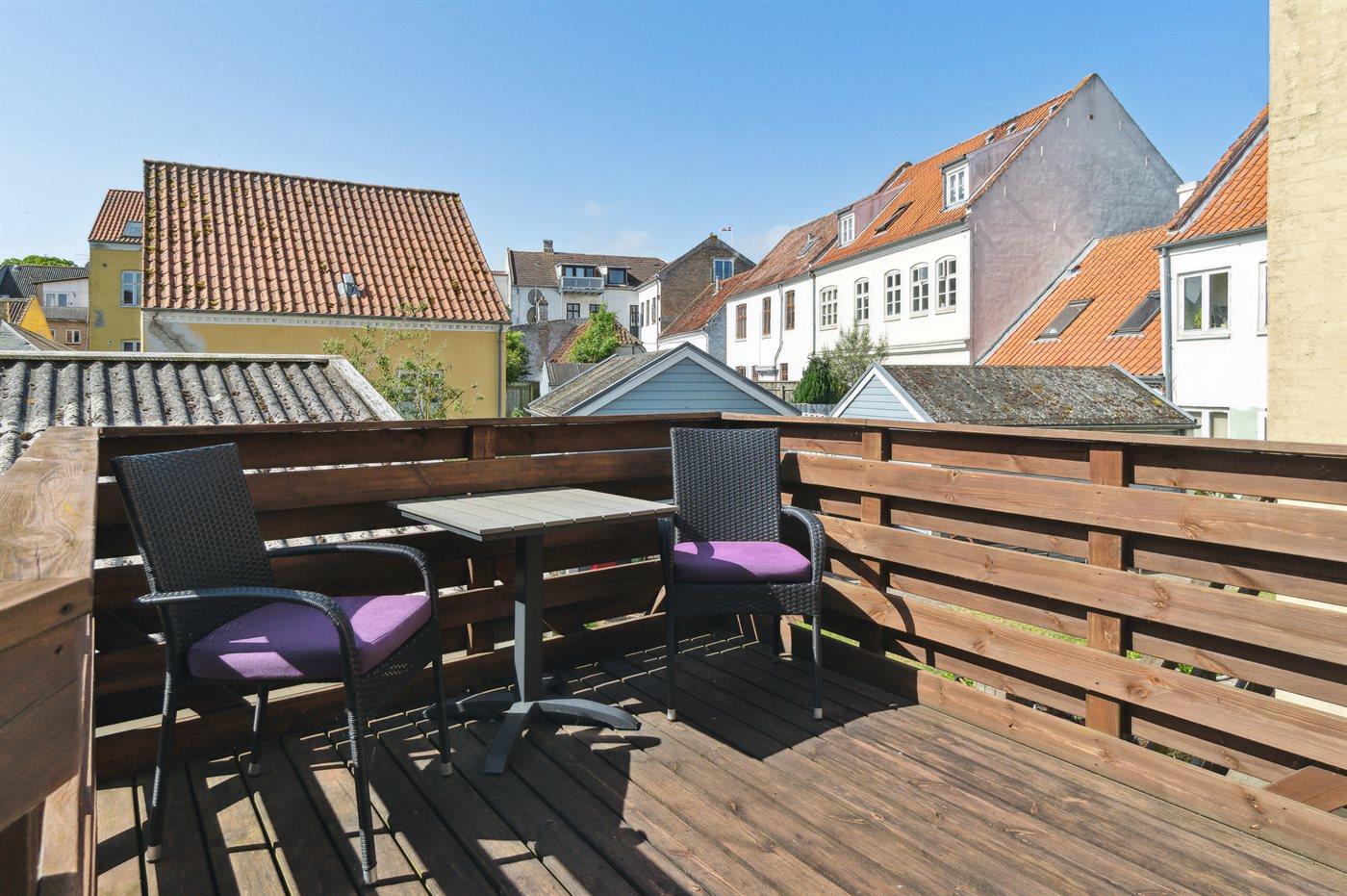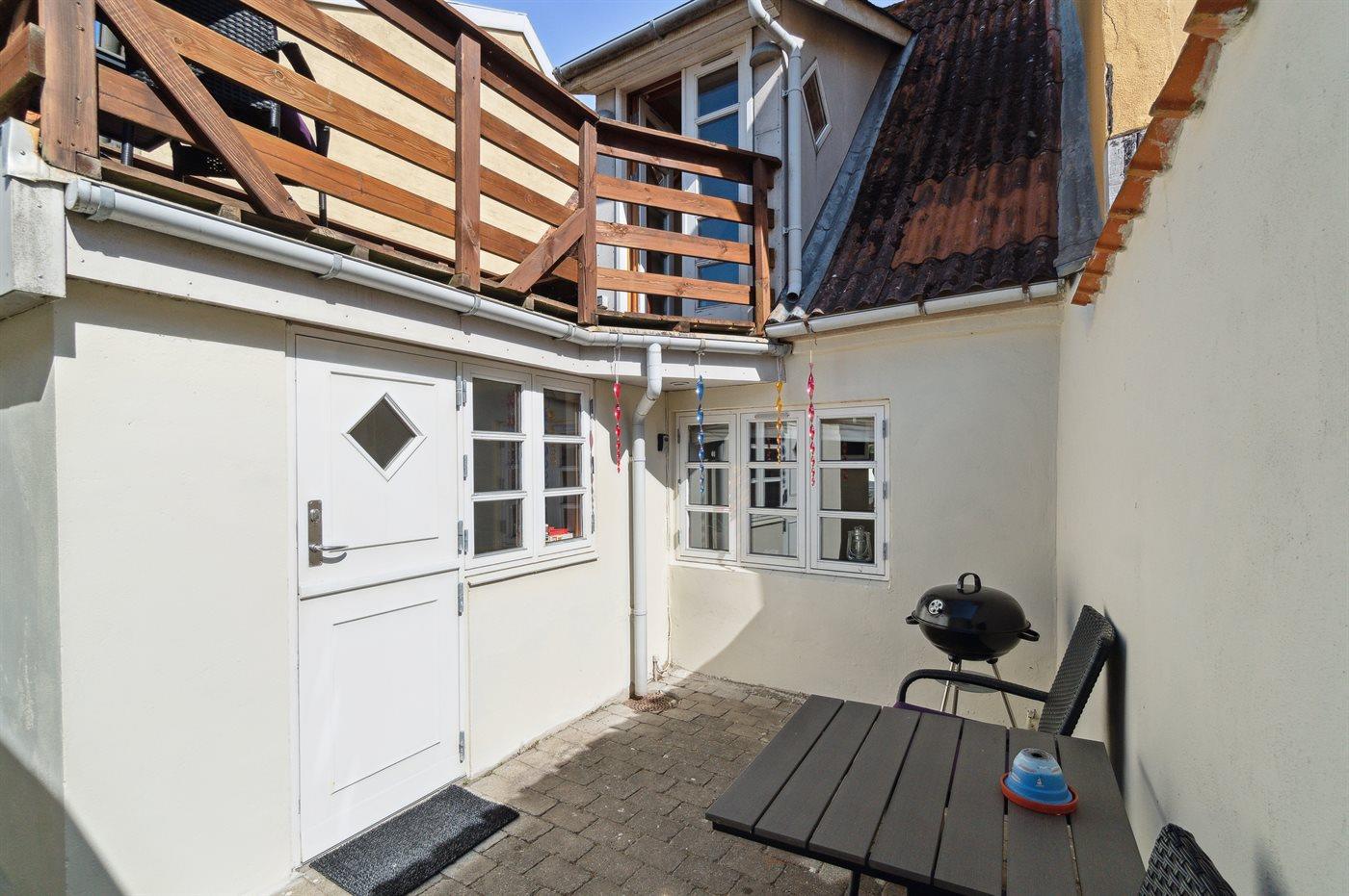Huset er nydeligt renoveret og har en lille, hyggelig lukket gårdhave bag huset. Fra husets soveværelse på 1. sal er der udgang til en dejlig tagterrasse. Der findes desuden et lille fælles græsområde med borde og bænke bag huset.