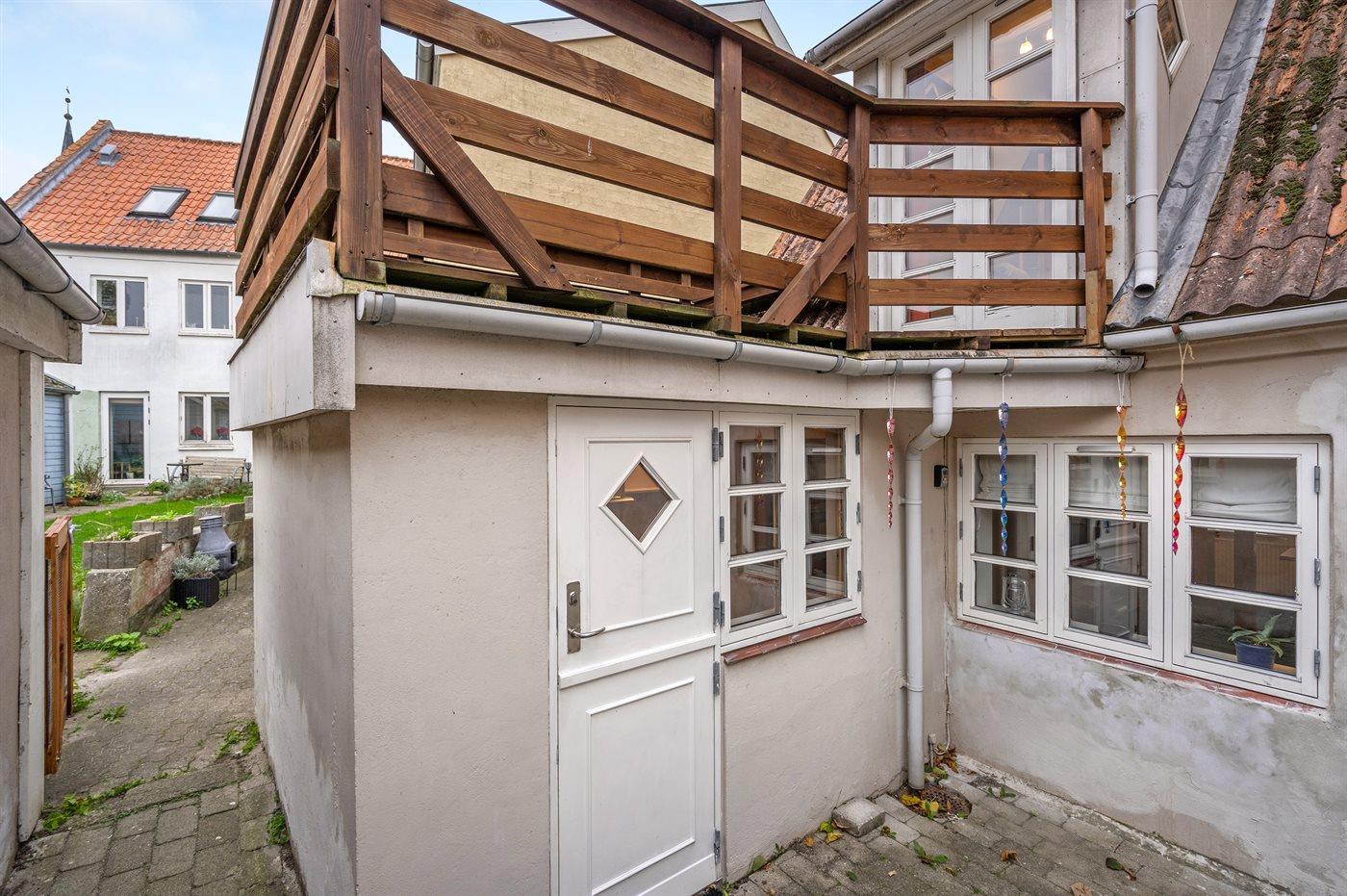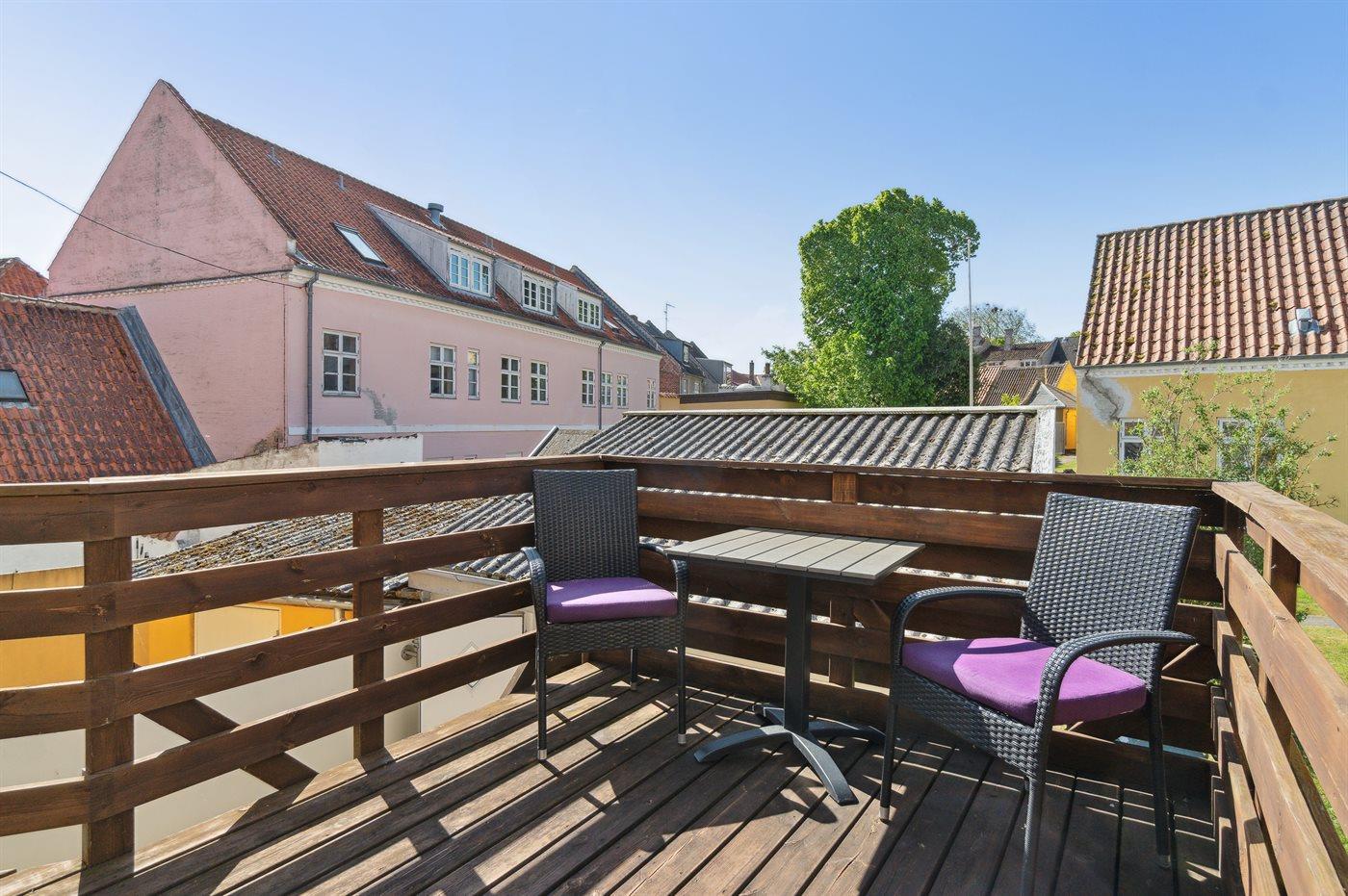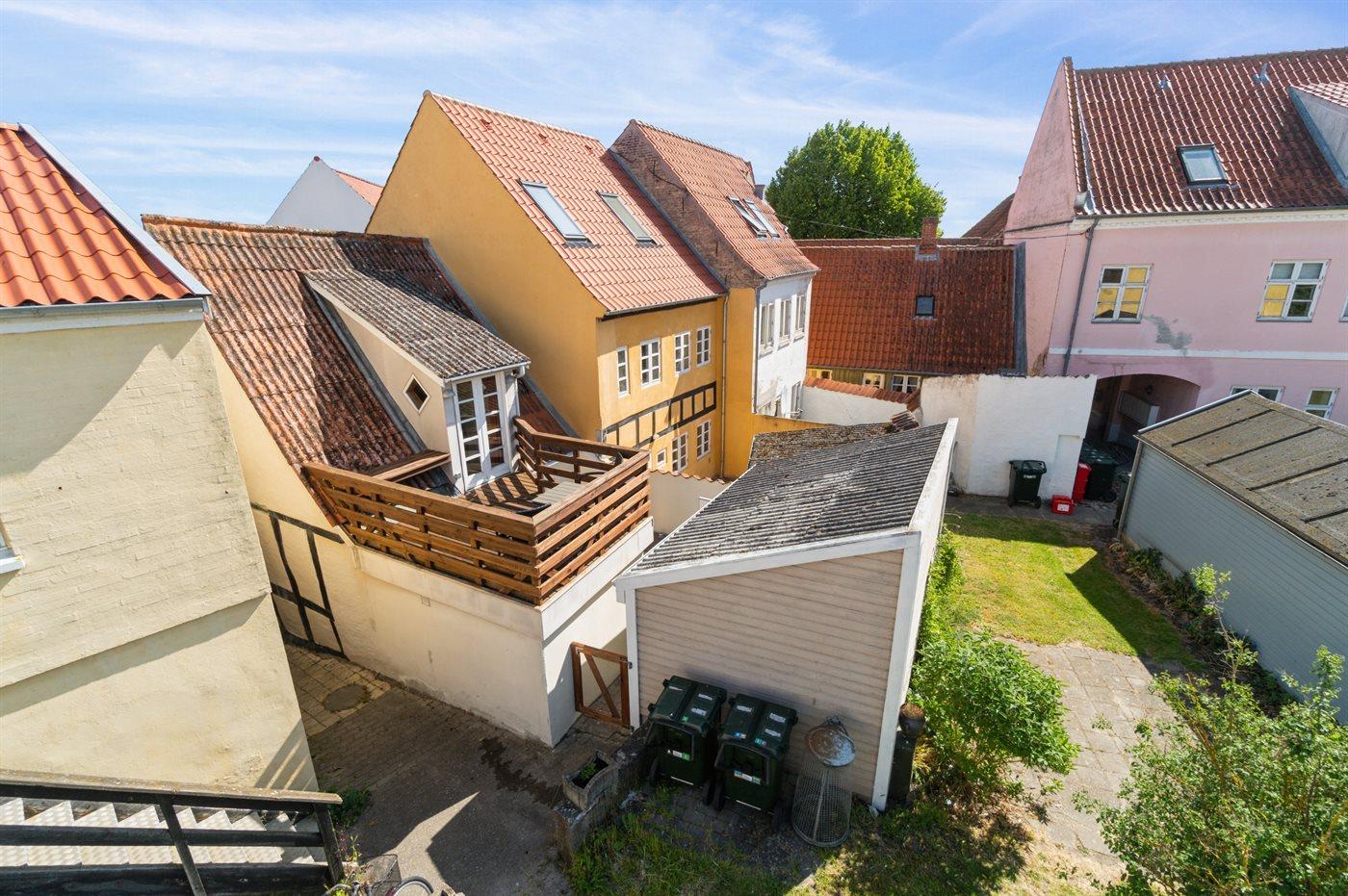 Charmerende byhus i Rudkøbing med tagterrasse, lukket gårdhave og kort afstand til strand og by.