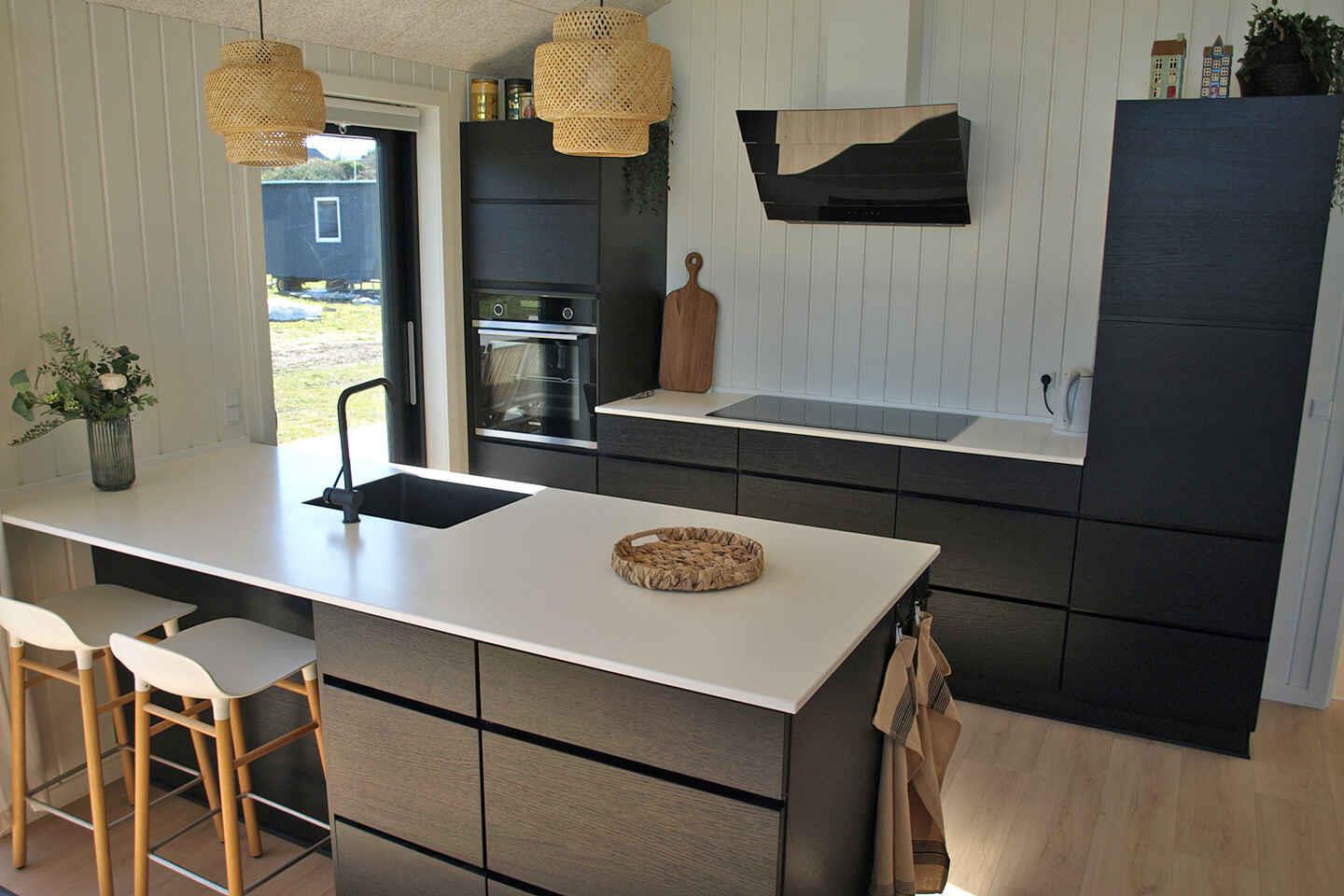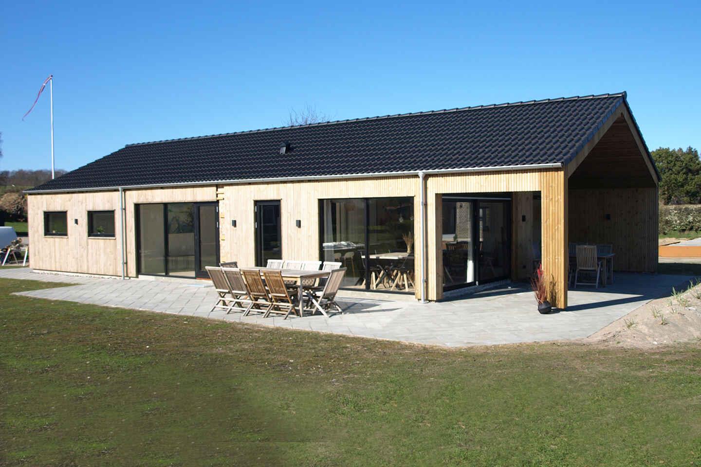Eksklusivt feriehus i 1. række med havudsigt på Langeland, nybygget i 2023 med plads til 10 personer og moderne faciliteter.