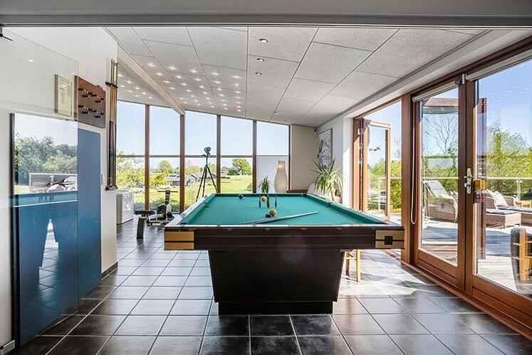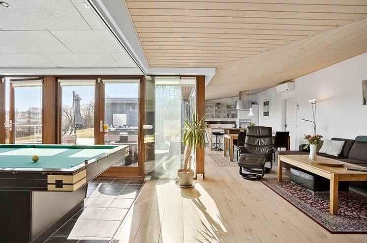 Stort feriehus på 140 m² med spa, sauna og udsigt til Langelandsbæltet. 3 soveværelser, 2 badeværelser, billard og stor afskærmet terrasse med udekøkken. Hunde tilladt. Kun 700 m til vandet.