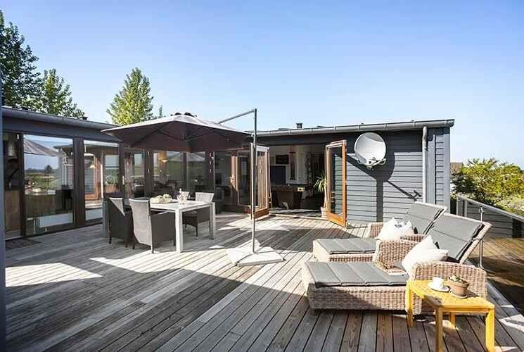 Luksussommerhus på Langeland med spa, sauna, havudsigt og stor terrasse tæt på vandet.